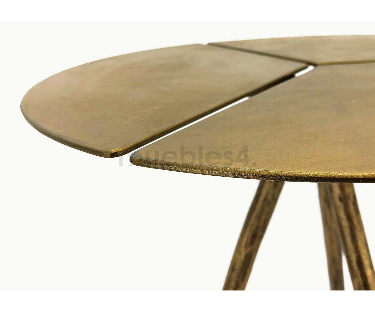 Mesa auxiliar circular Discipline Bridge Gold, inspirada en un diseño de Ichiro Iwasaki. Base tripode tubular en acero con triple lacado color dorado, tapa circular lacado en color oro, con averturas misma dirección que las patas. Réplica exacta con materiales originales de máxima calidad.