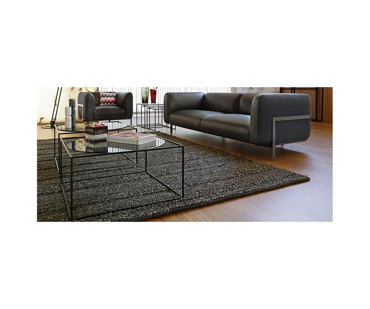 Mesa auxiliar/centro cuadrada, inspirada de un diseño de Johan Lindstén. Estructura de tubo cuadrado en acero con triple lacado color negro, tapa circular en mármol blanco veteado. Réplica exacta con materiales originales de máxima calidad.