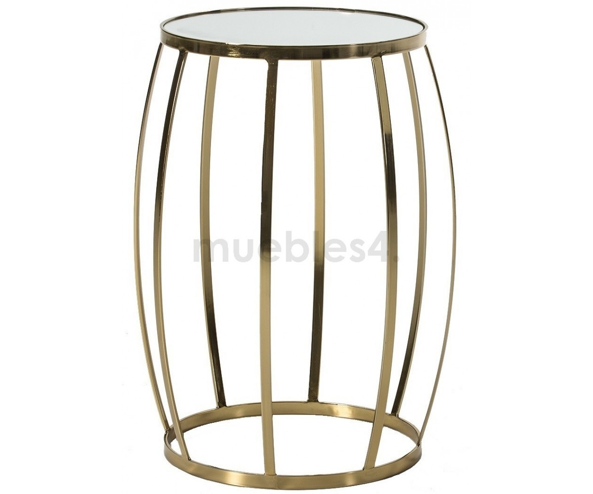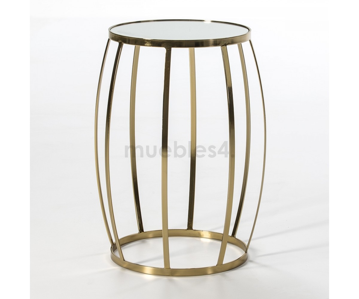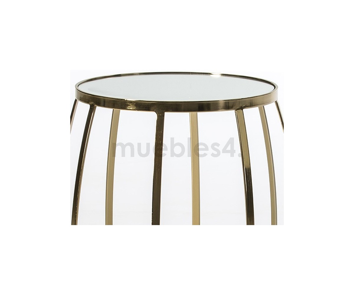 Mesa auxiliar inspirada en un diseño de Antonio Citterio para Maxalto. Estuctura fabricada en pletina de acero curvado con triple lacado color dorado, tapa de espejo circular. Réplica exacta con materiales originales de máxima calidad.