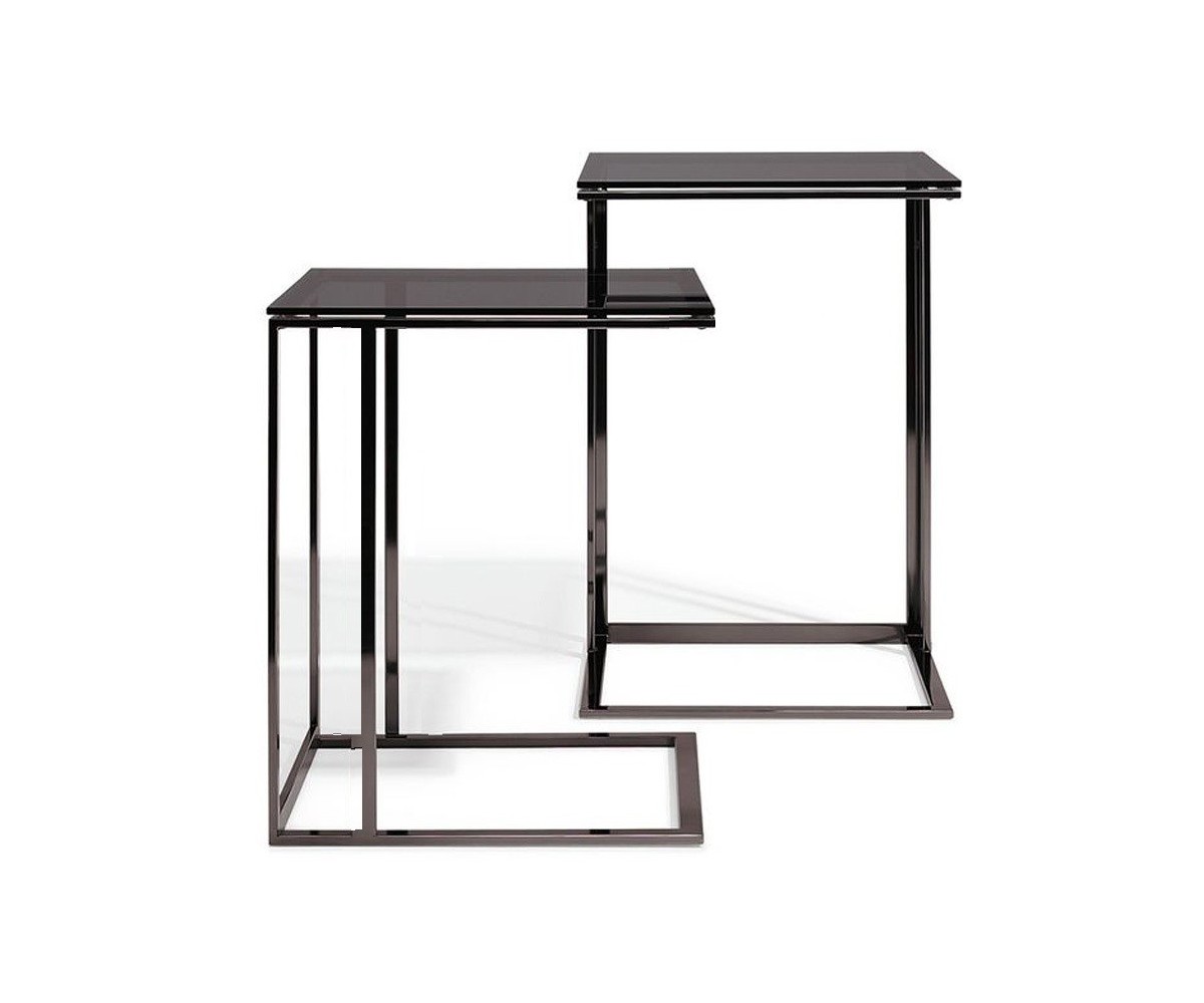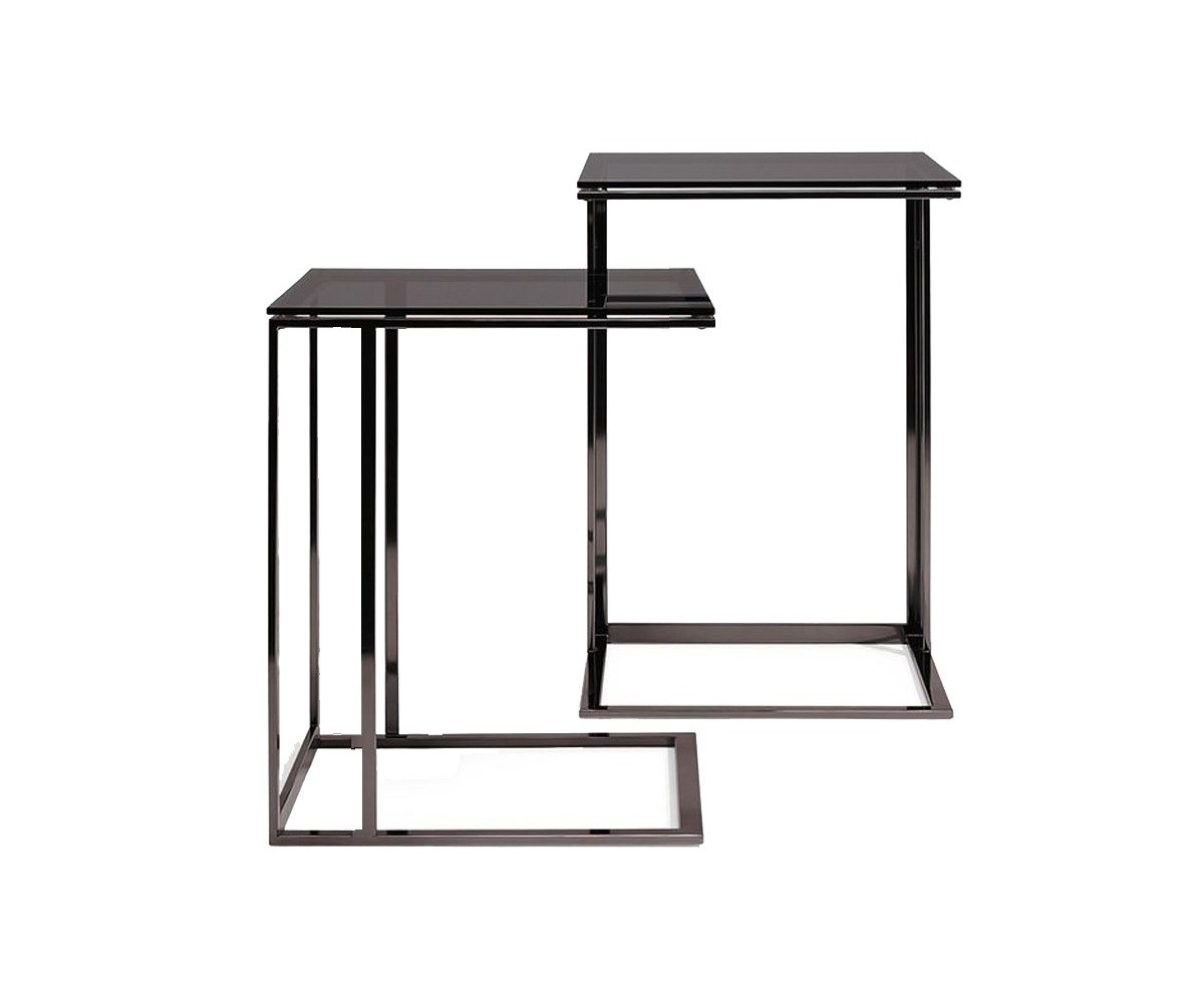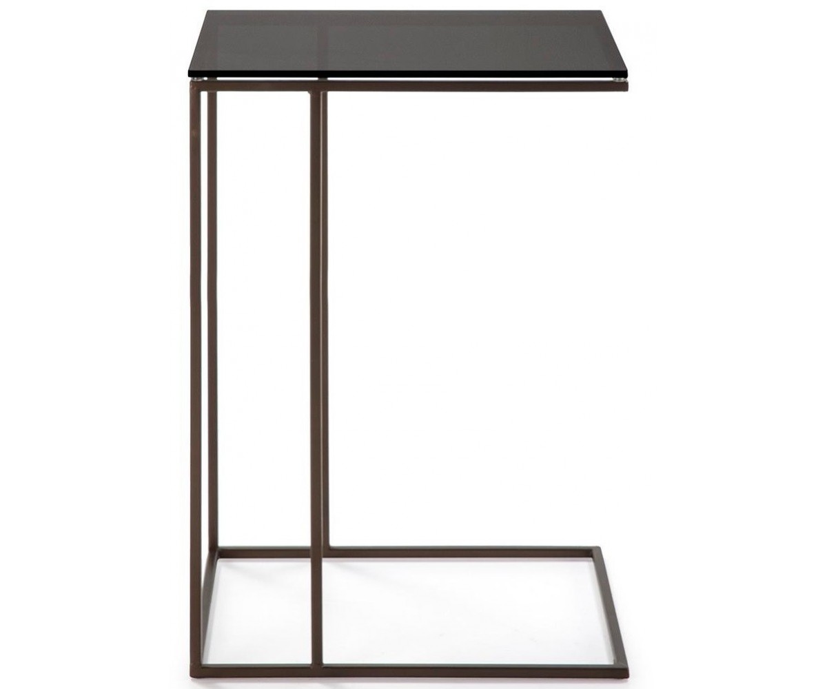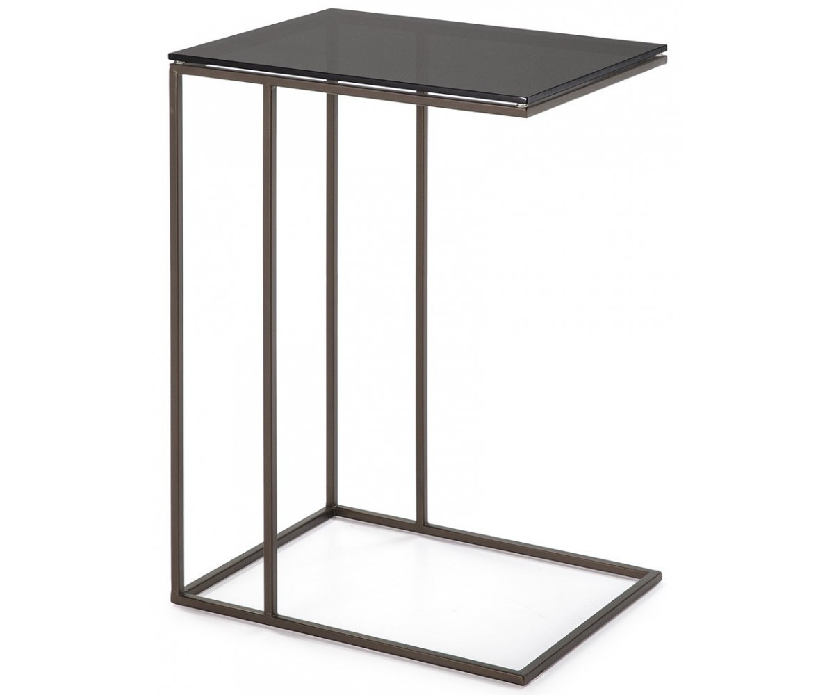 Mesa auxiliar inspirada en un diseño de Dietmar Joester para Draenert. Estructura fabricada con perfil cuadrado con triple lacado en dorado envejecido, base de cristal templado ahumado. Réplica exacta con materiales originales de máxima calidad.