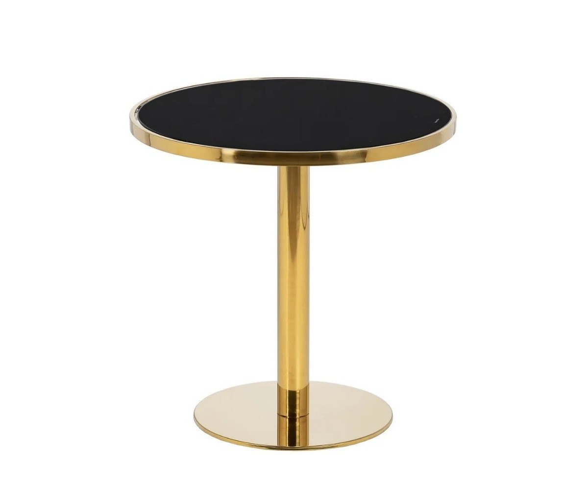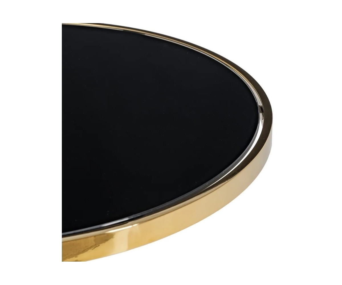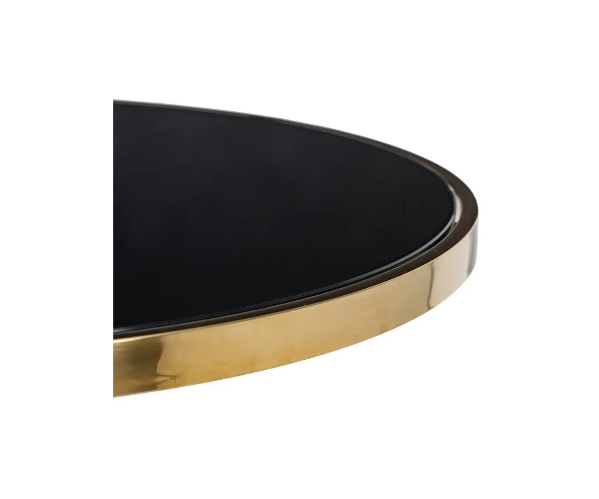 Lámpara auxiliar circular, inspirada en un diseño de Tom Dixon. Cuerpo fabricado en acero y latón terminación dorado. Tapa circular en cristal negro. También disponible con la tapa cuadrada. Réplica con materiales originales de máxima calidad.
