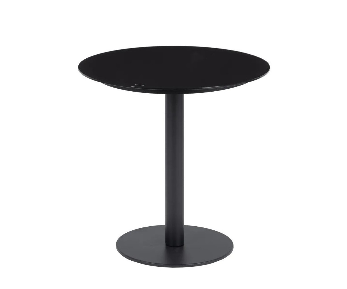 Lámpara auxiliar circular, inspirada en un diseño de Sami Kallio. Cuerpo fabricado en acero lacado al horno color negro. Tapa circular en cristal negro. Réplica con materiales originales de máxima calidad.
