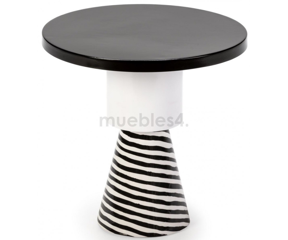 Mesa auxiliar inspirada en un diseño de Eric Willemart para Casalto. Su geometría perfecta y sus rayas rítmicas lo convierten en un objeto imprescindible. Se puede utilizar como extensión al costado del sofá o como mesita de noche. La mesa auxiliar se puede utilizar de forma individual o agrupada.
