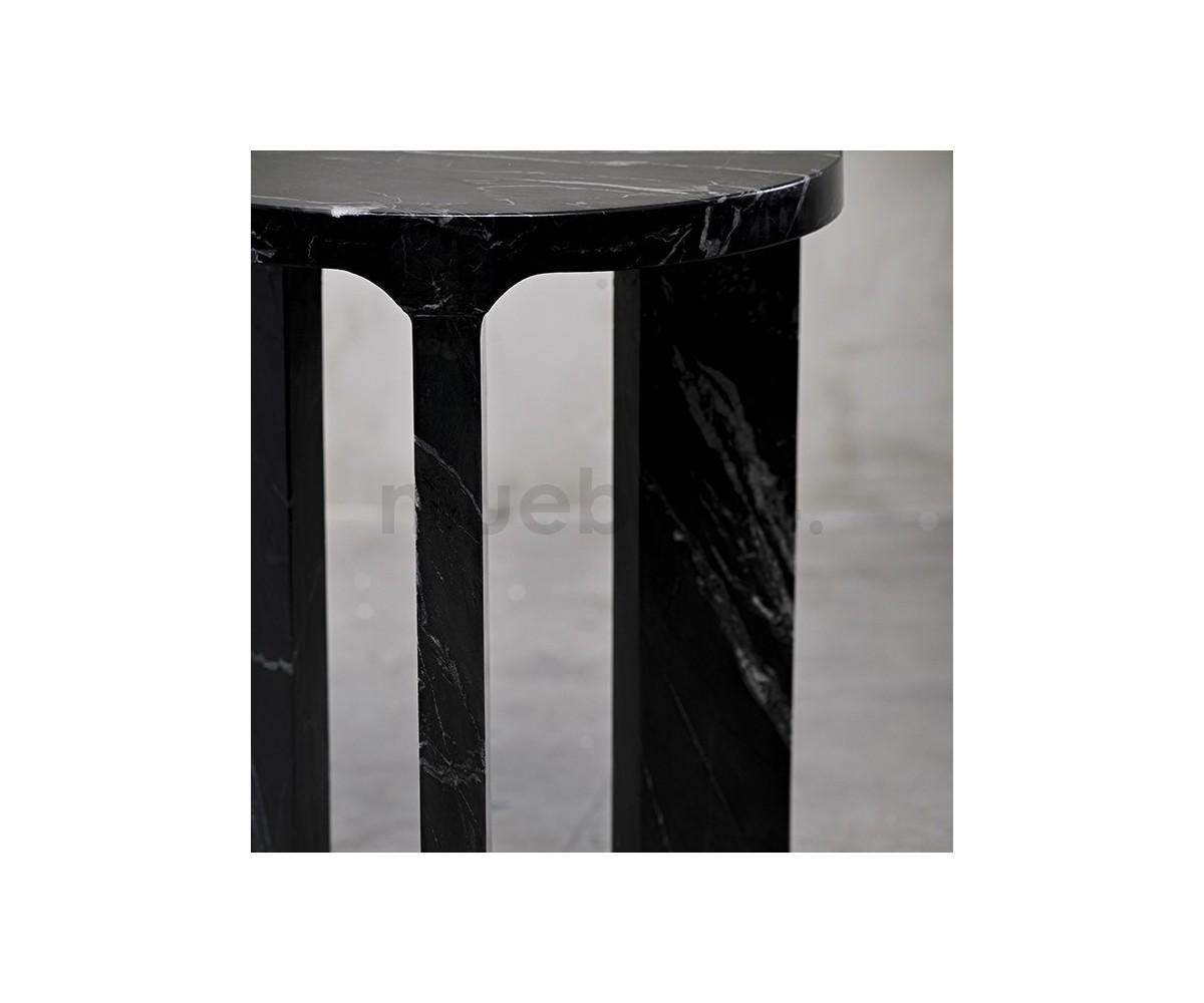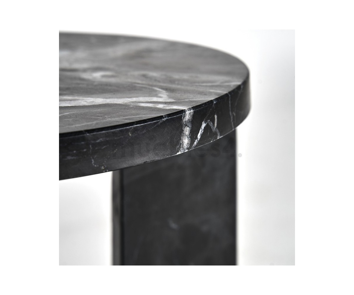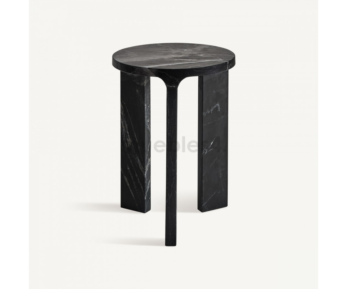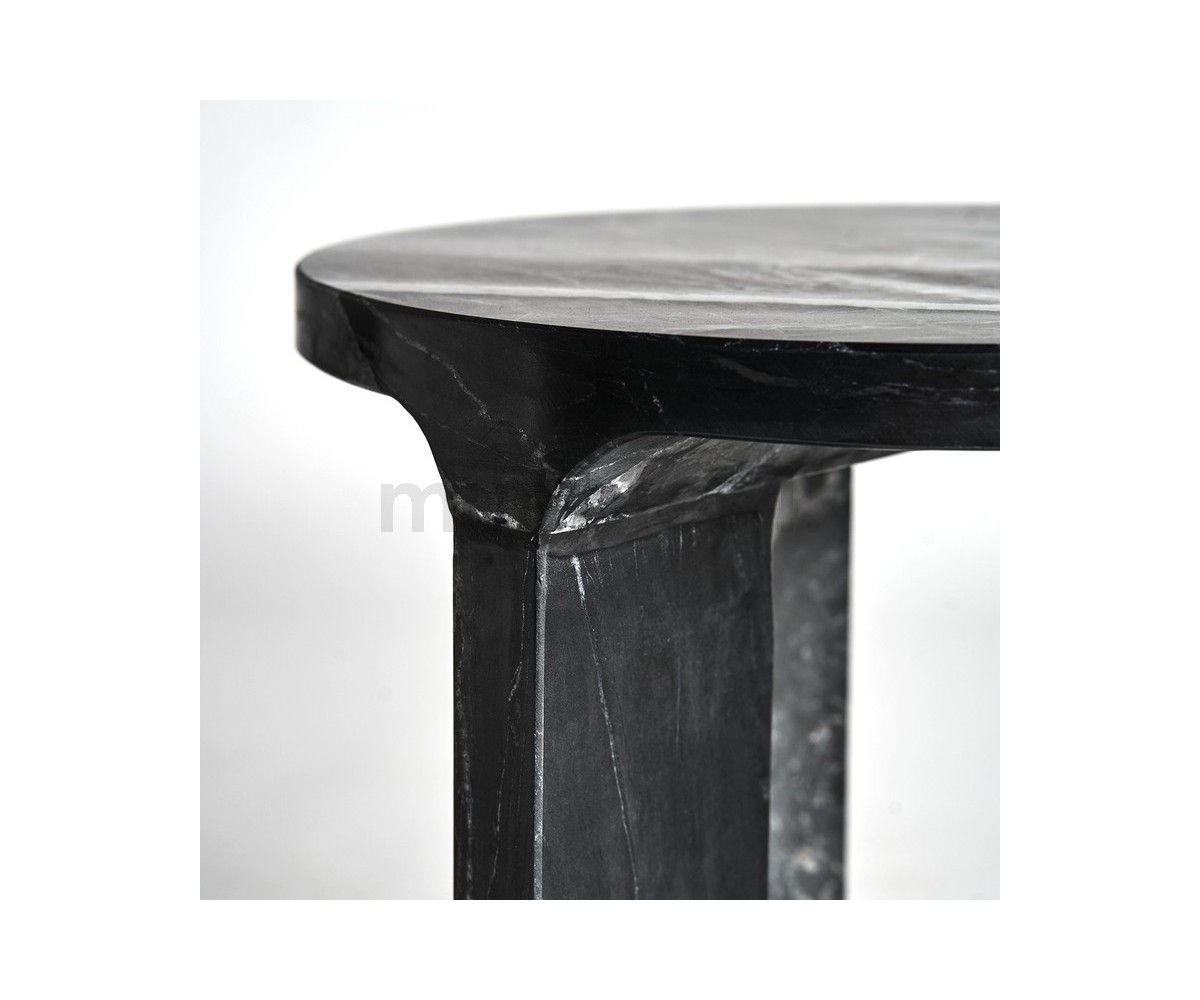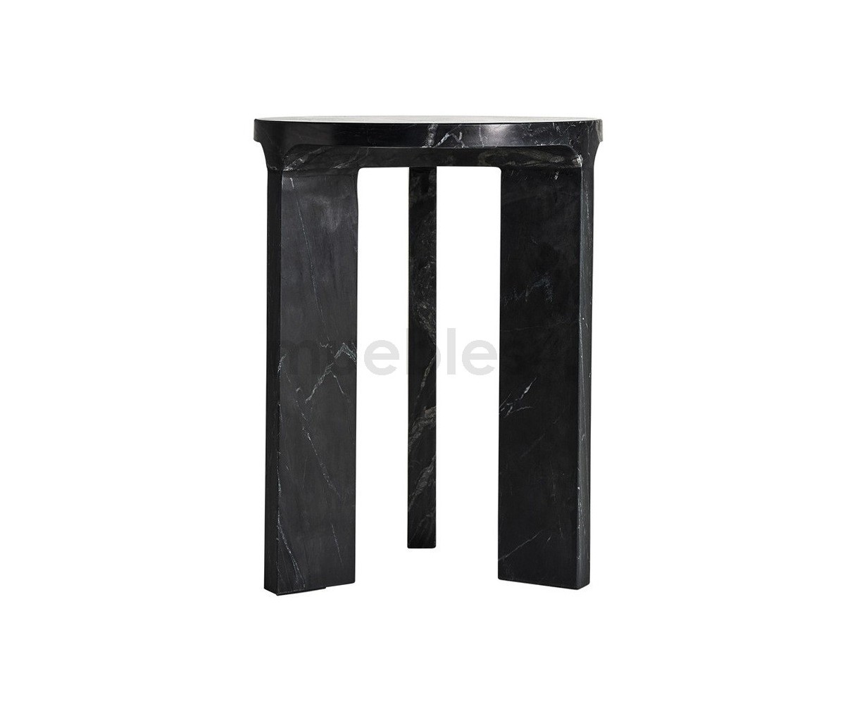 Mesa auxiliar inspirado en un diseño de Lorenzo Bini. Elaborada en mármol negro intenso, presenta una llamativa silueta circular con tres patas en forma de losa, cada una conectada por detalles únicos. Este diseño robusto y elegante ofrece una presencia imponente, combinando materialidad lujosa con un llamativo juego de formas.