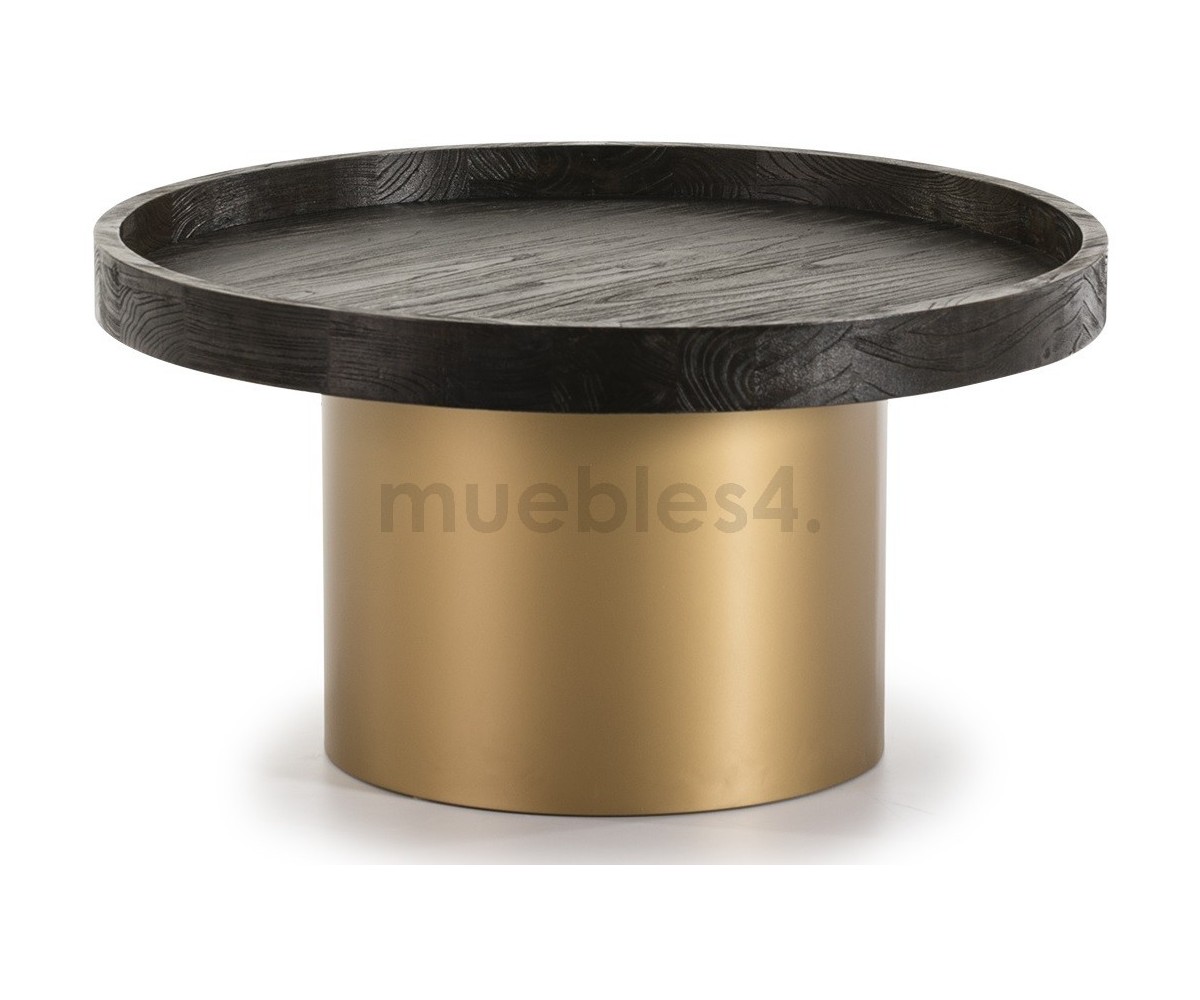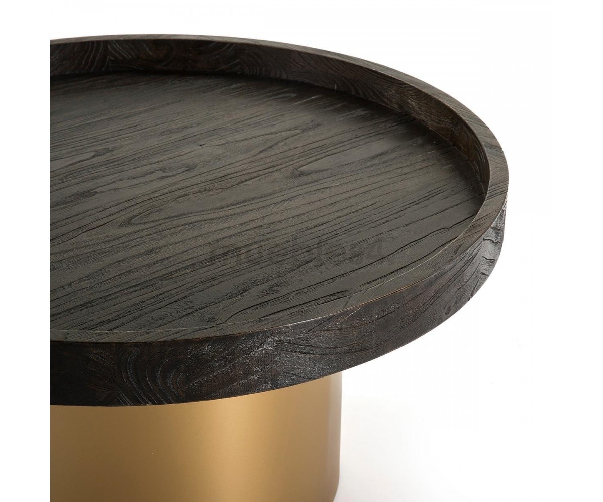 Mesa de centro inspirada en un diseño de Philipp Mainzer. Base tubular en acero con triple lacado dorado, sobre en madera marrón oscuro tropical. También disponible en mesa auxiliar. Réplica exacta con materiales originales de máxima calidad