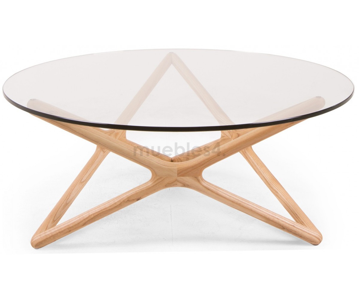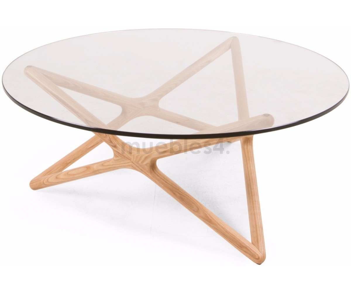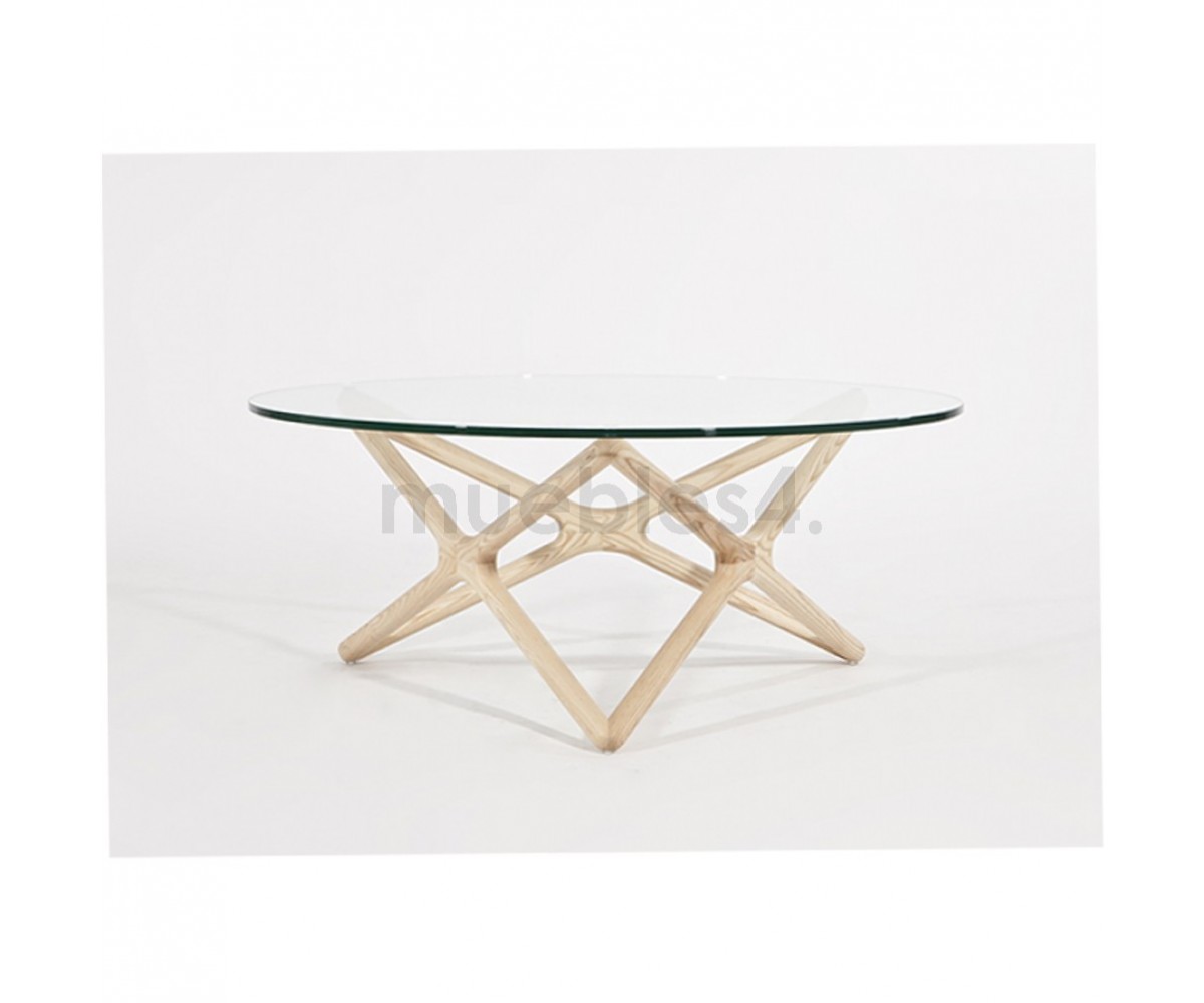 Mesa de centro circular inspirado en un diseño de Sean Dix. Fabricada en madera maciza de arce americano natual, sobre de cristal transparente tempaldo de 12mm de espesor. Réplica exacta con materiales originales de máxima calidad.