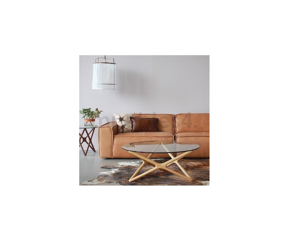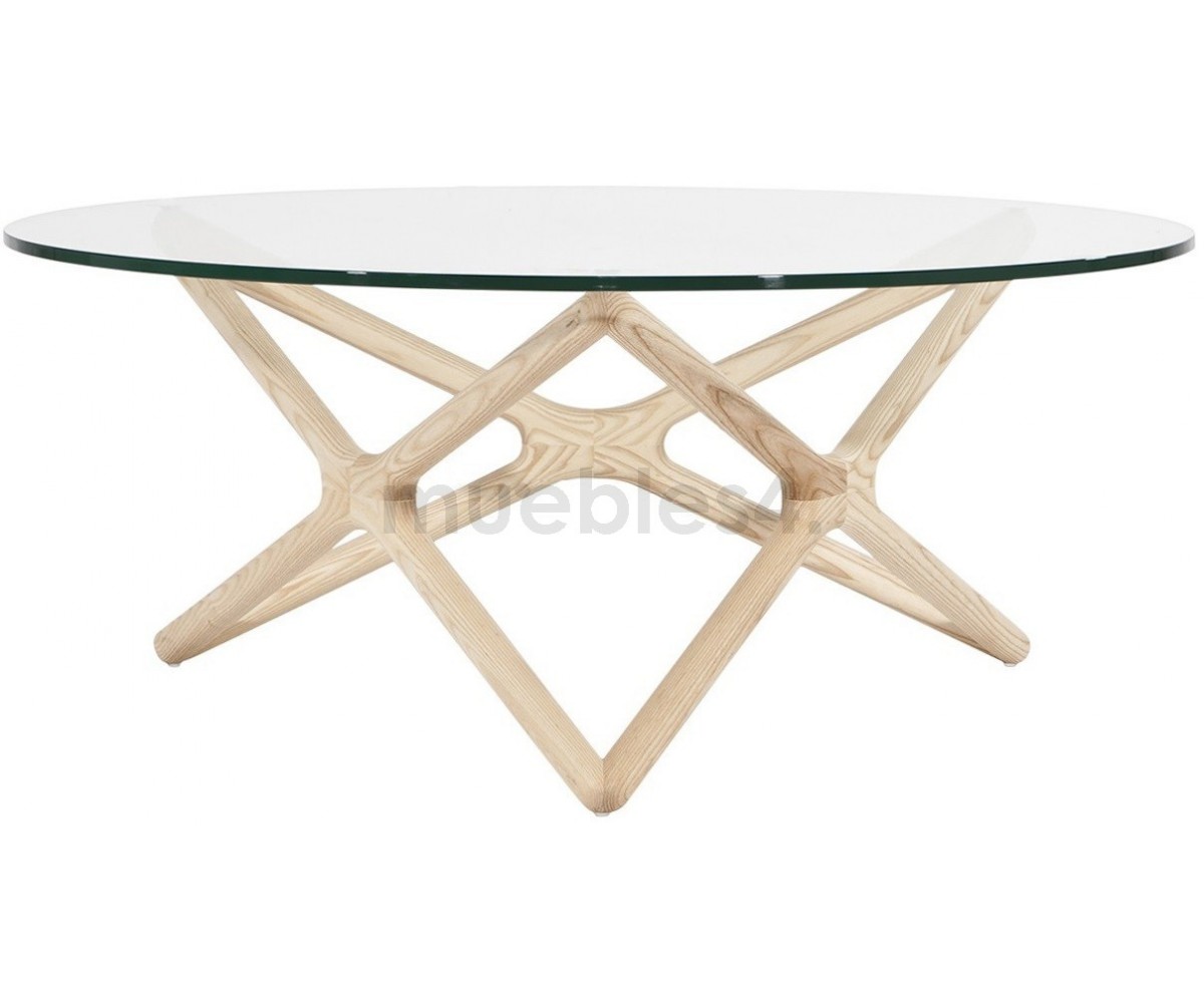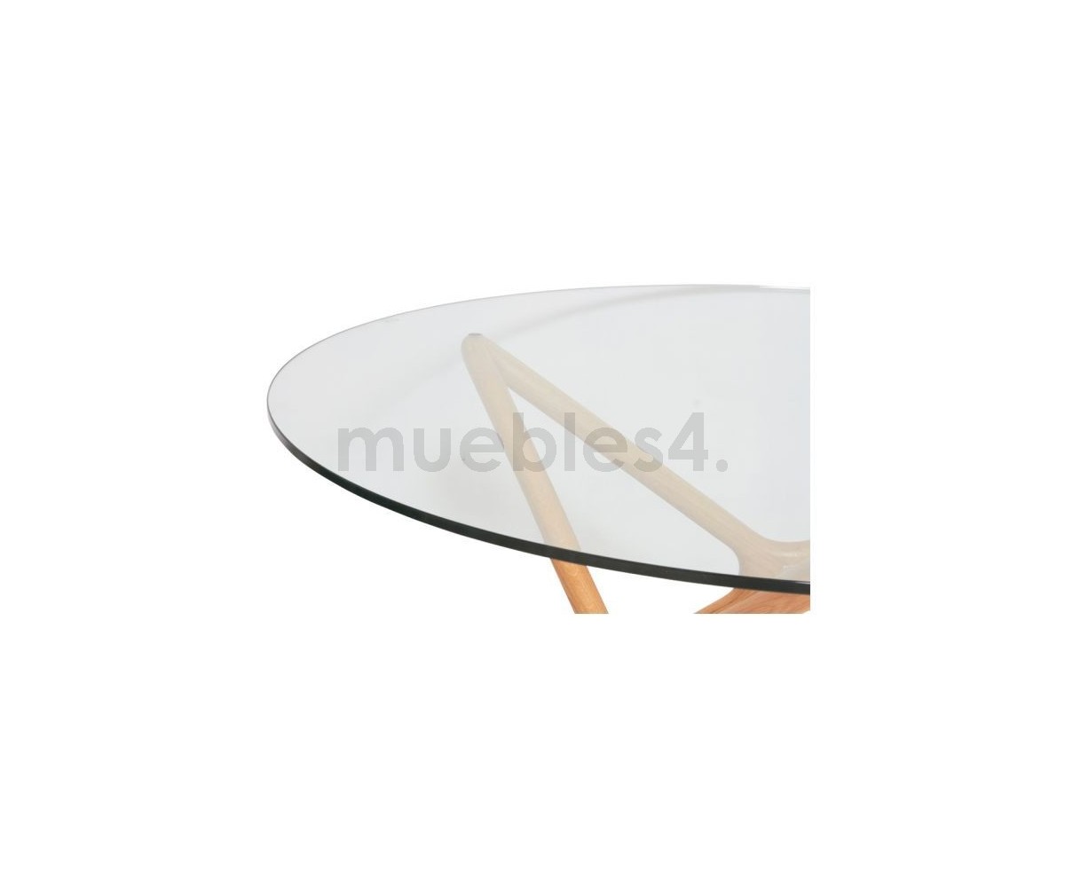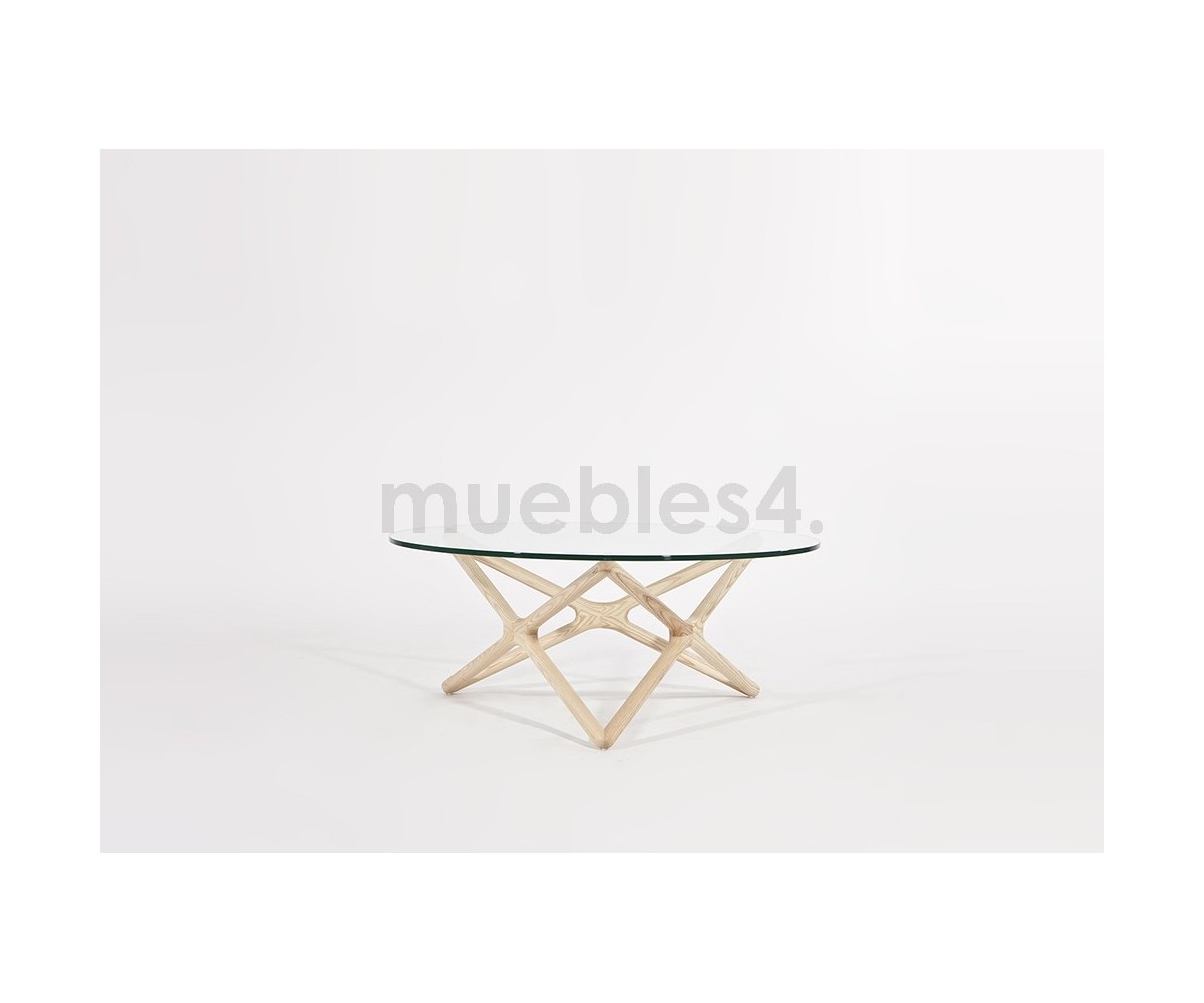 Mesa de centro circular inspirado en un diseño de Sean Dix. Fabricada en madera maciza de arce americano natual, sobre de cristal transparente tempaldo de 12mm de espesor. Réplica exacta con materiales originales de máxima calidad.