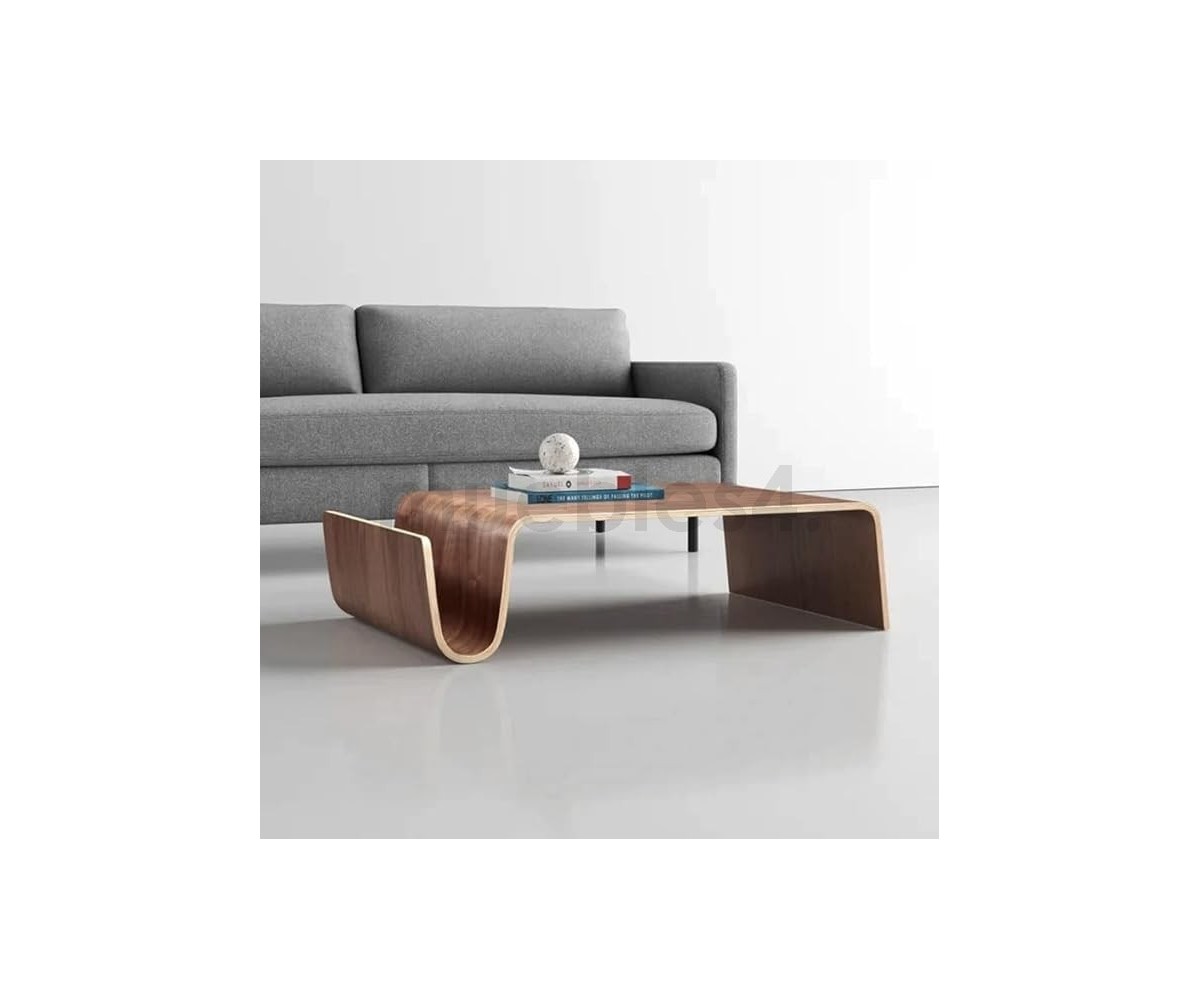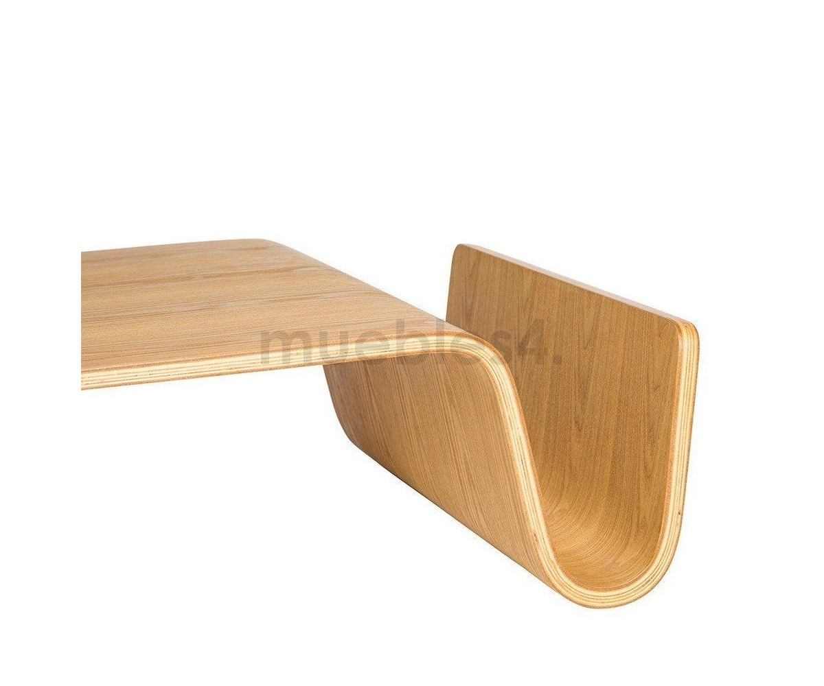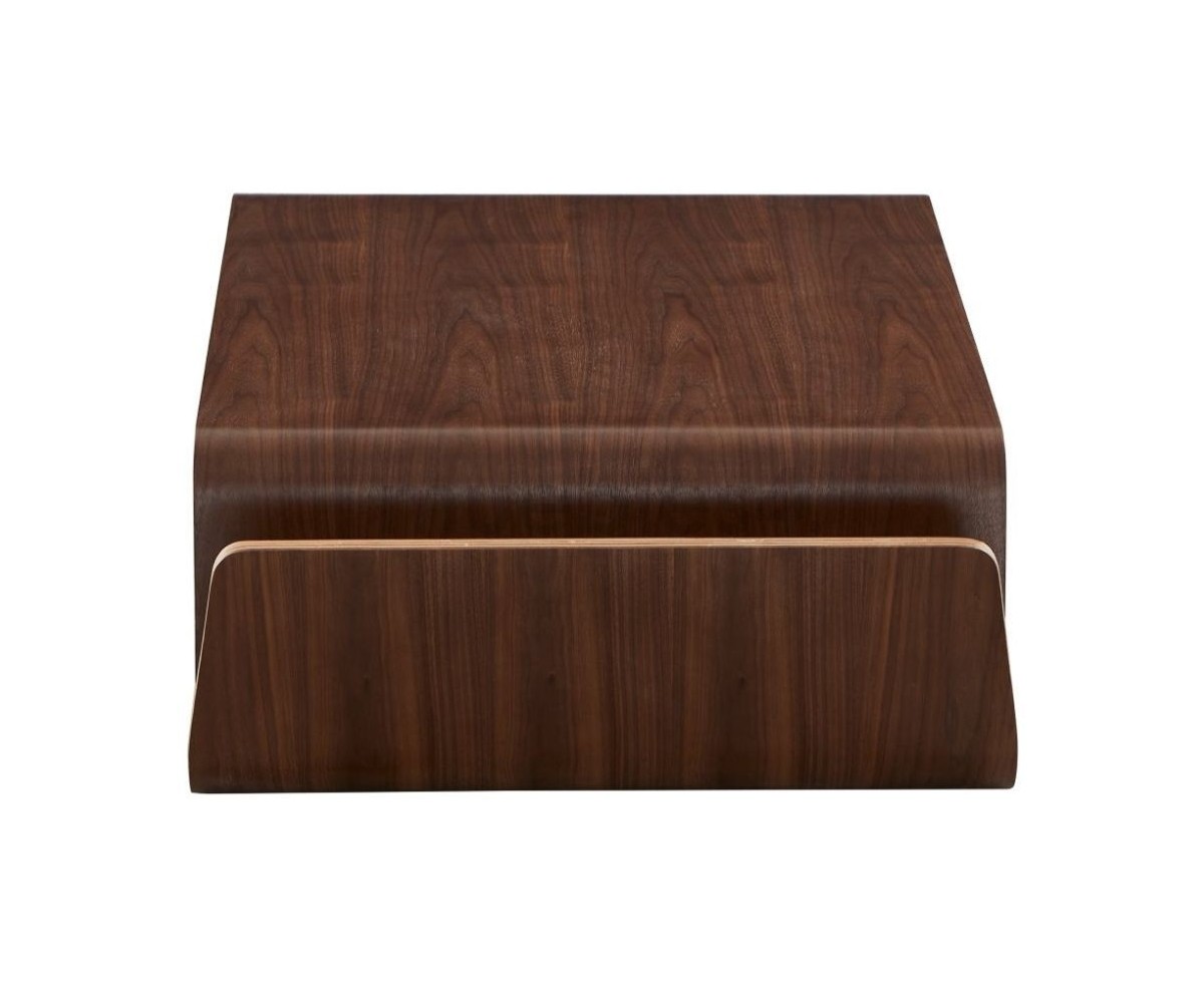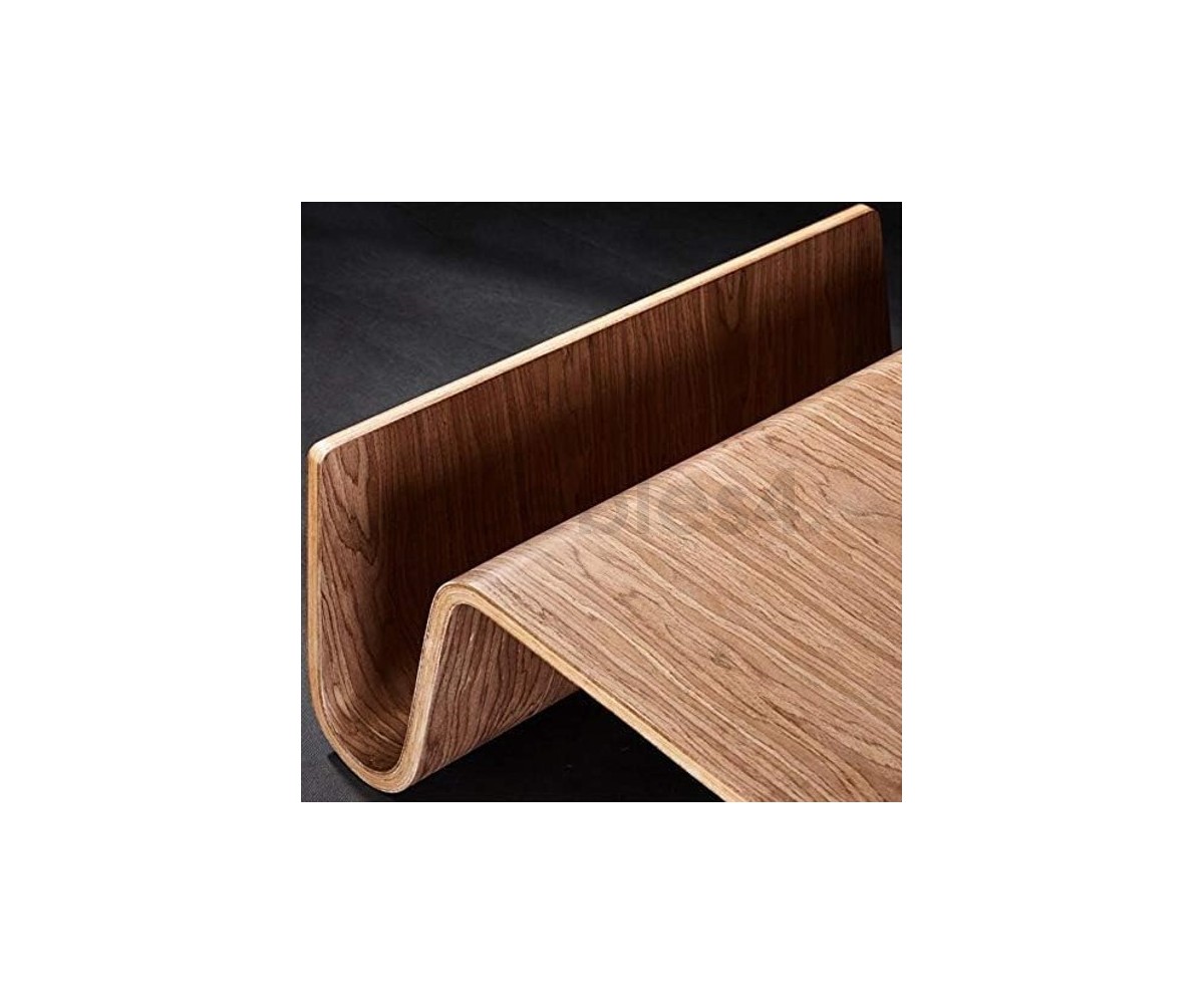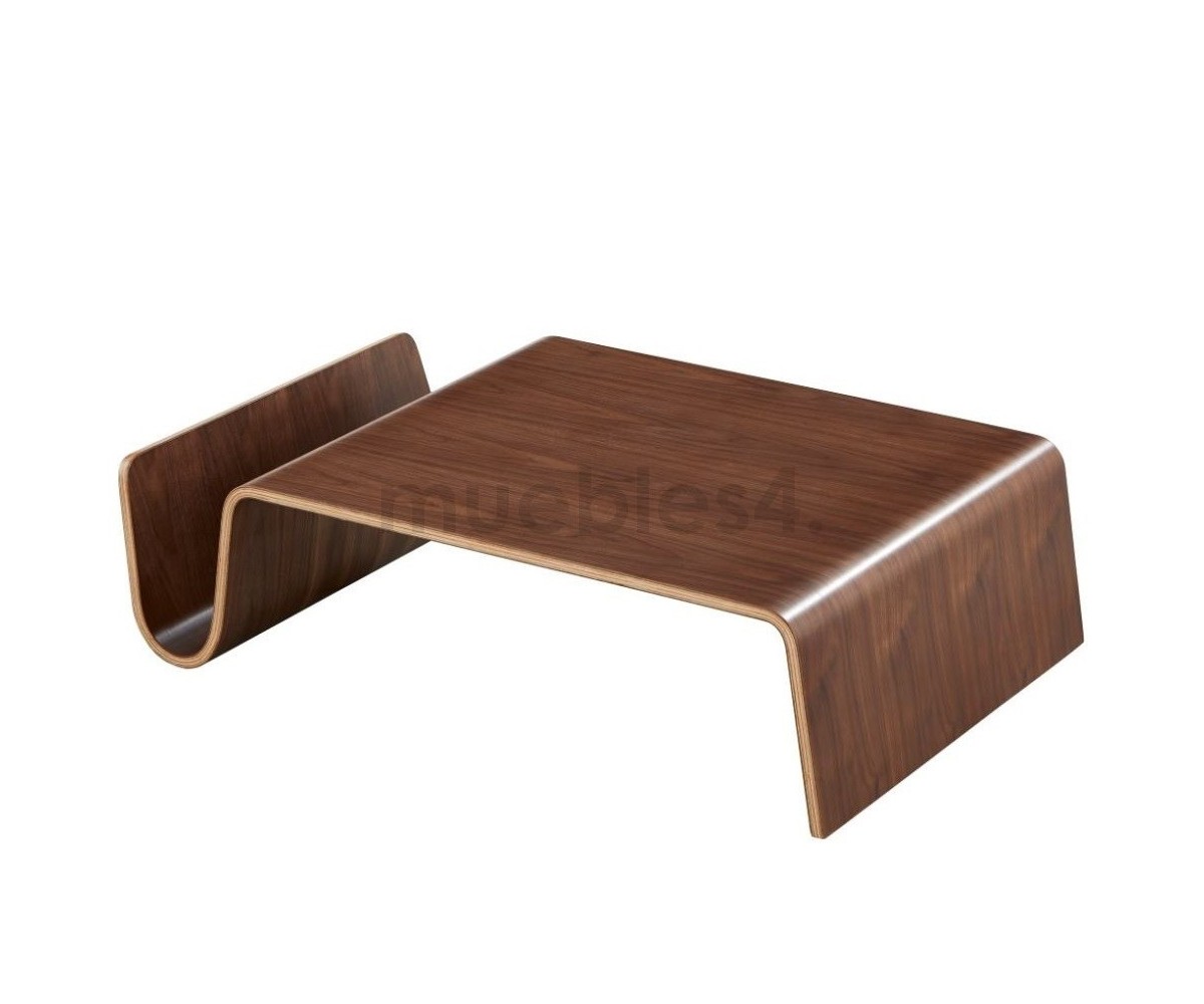 Mesa de centro rectangular con revistero inspirado en un diseño de Eric Pfeiffer. Esta mesa es una pieza contemporánea que demuestra el profundo conocimiento de Pfeiffer sobre la construcción y los materiales de los muebles. Líneas curvas de madera de alta calidad.
