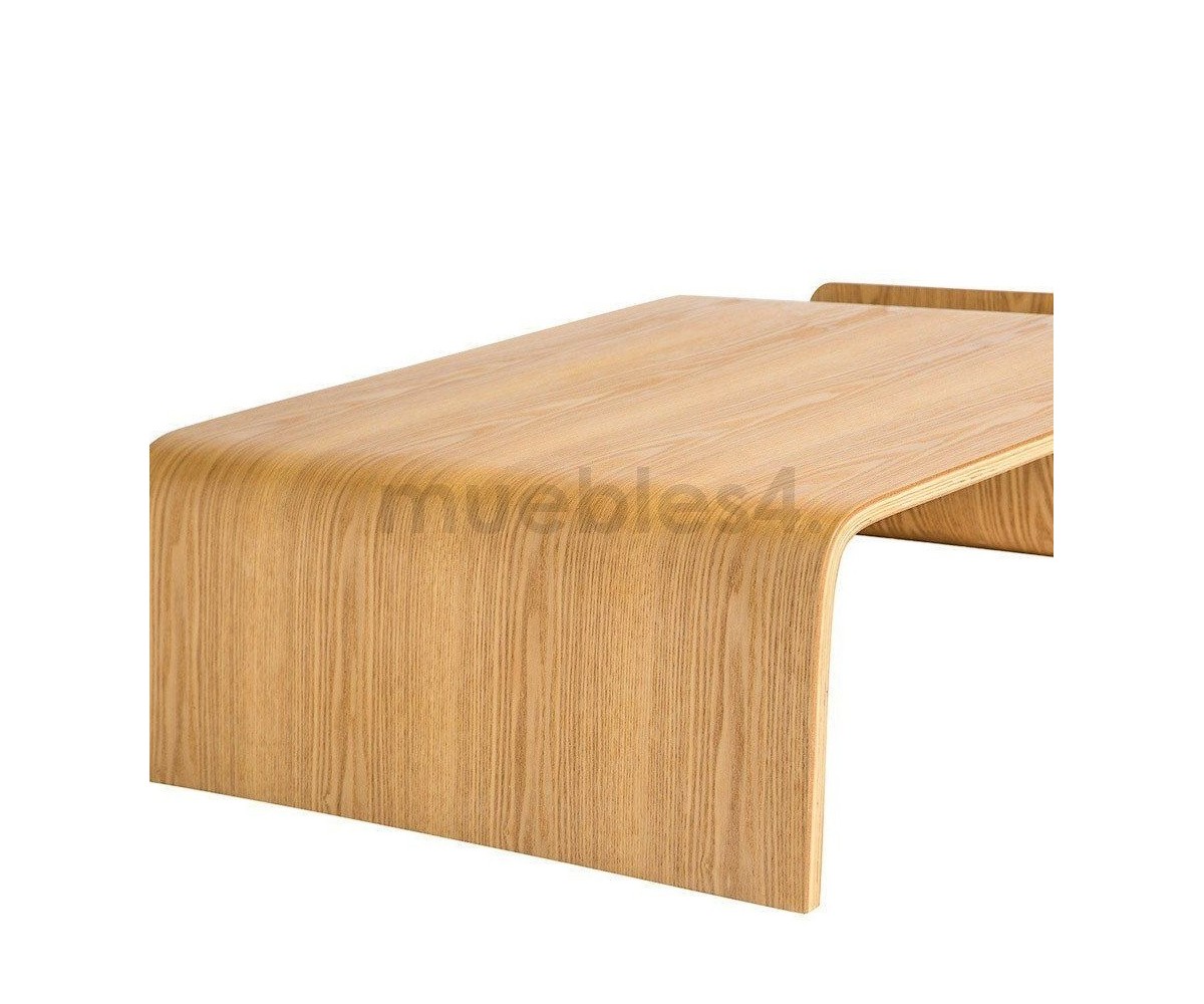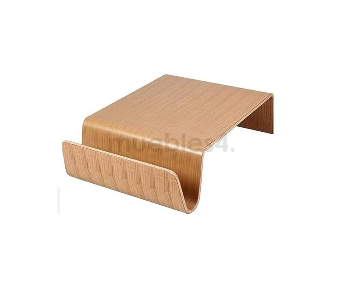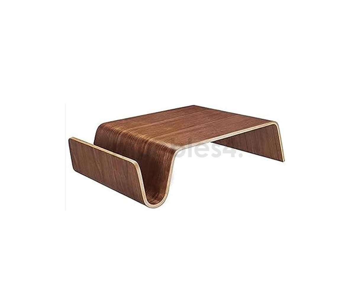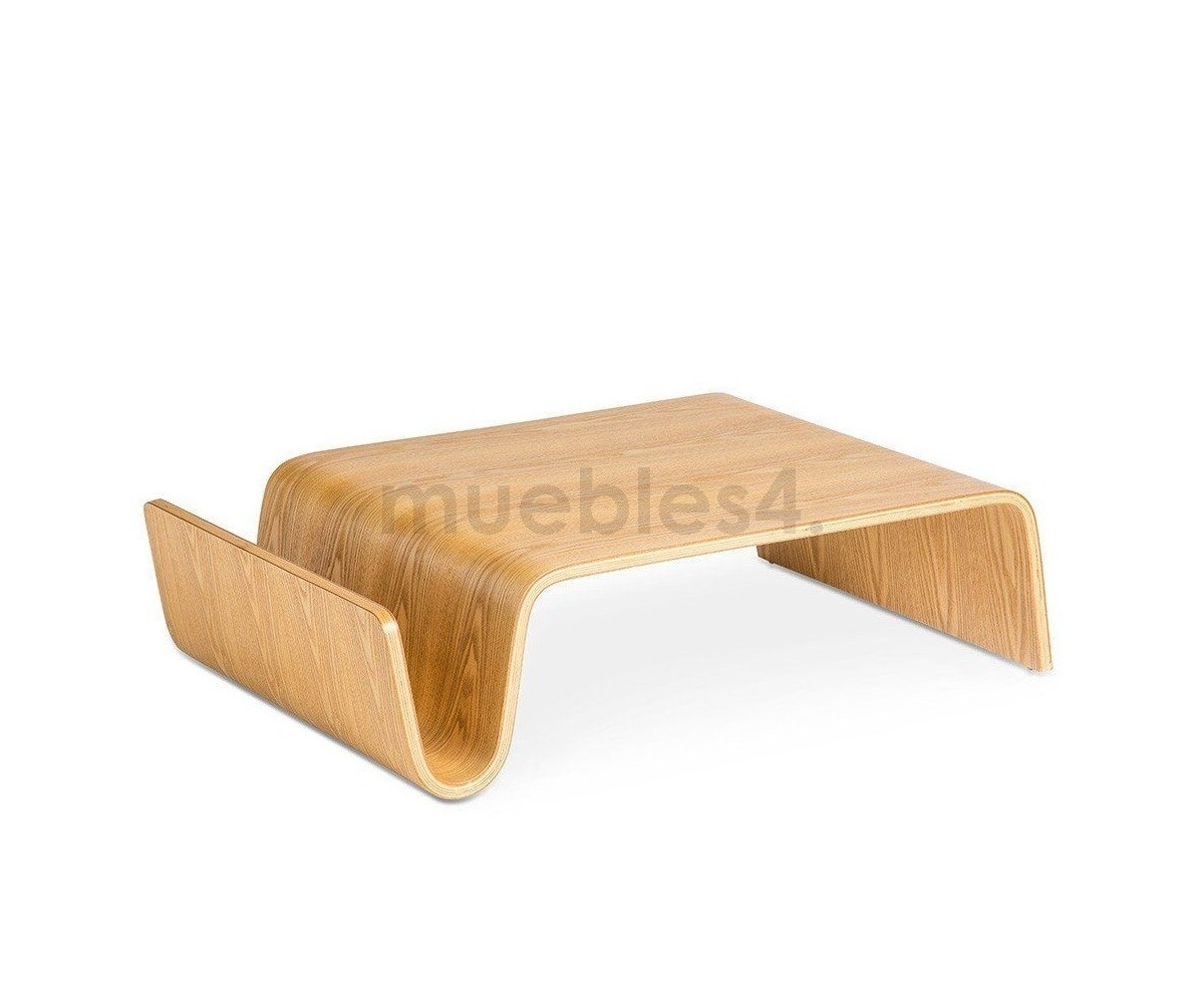 Mesa de centro rectangular con revistero inspirado en un diseño de Eric Pfeiffer. Esta mesa es una pieza contemporánea que demuestra el profundo conocimiento de Pfeiffer sobre la construcción y los materiales de los muebles. Líneas curvas de madera de alta calidad.
