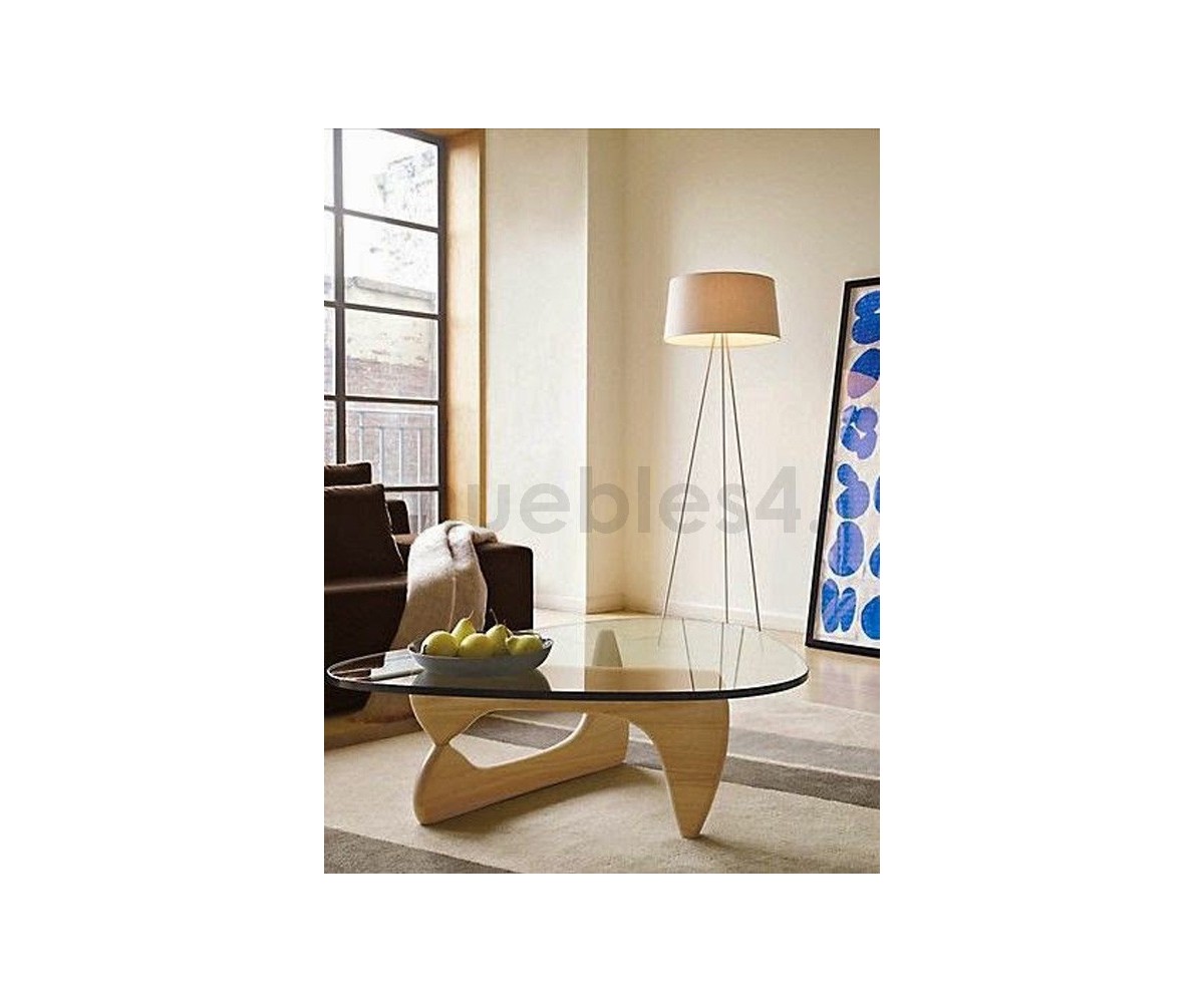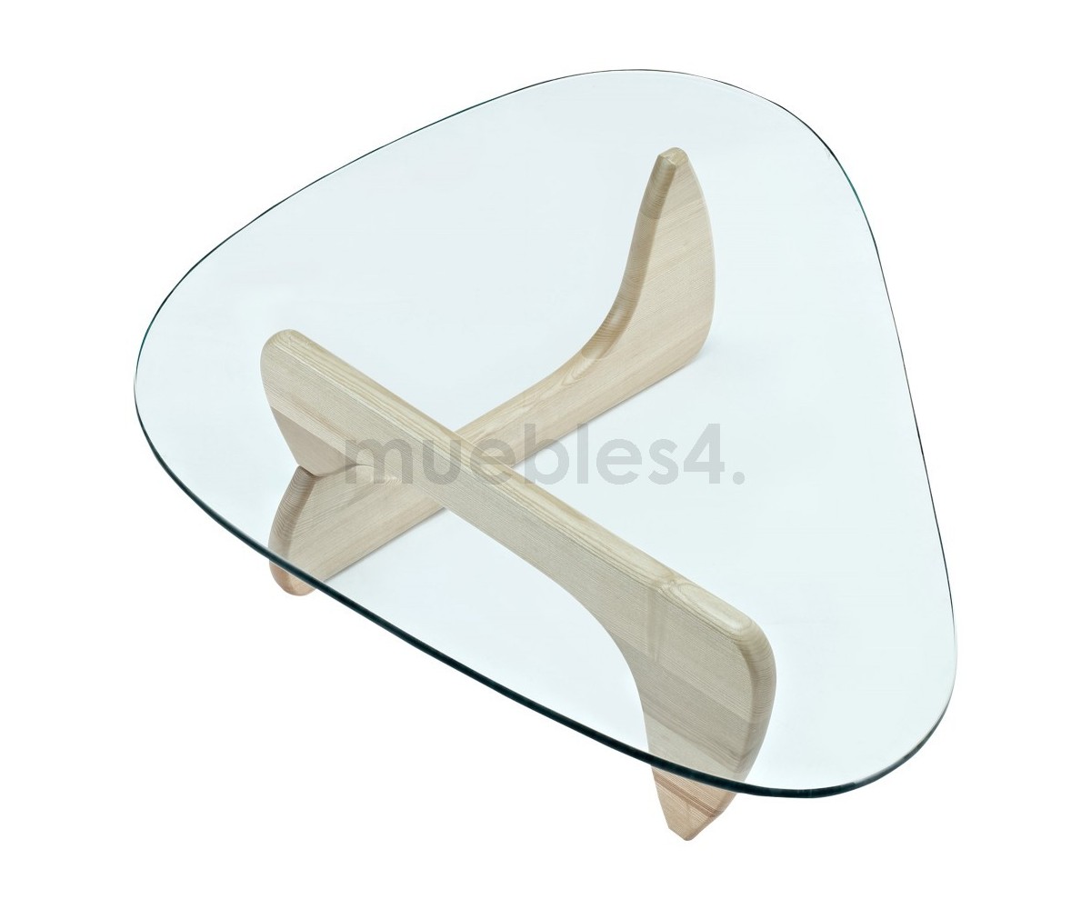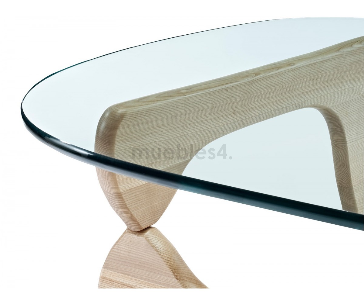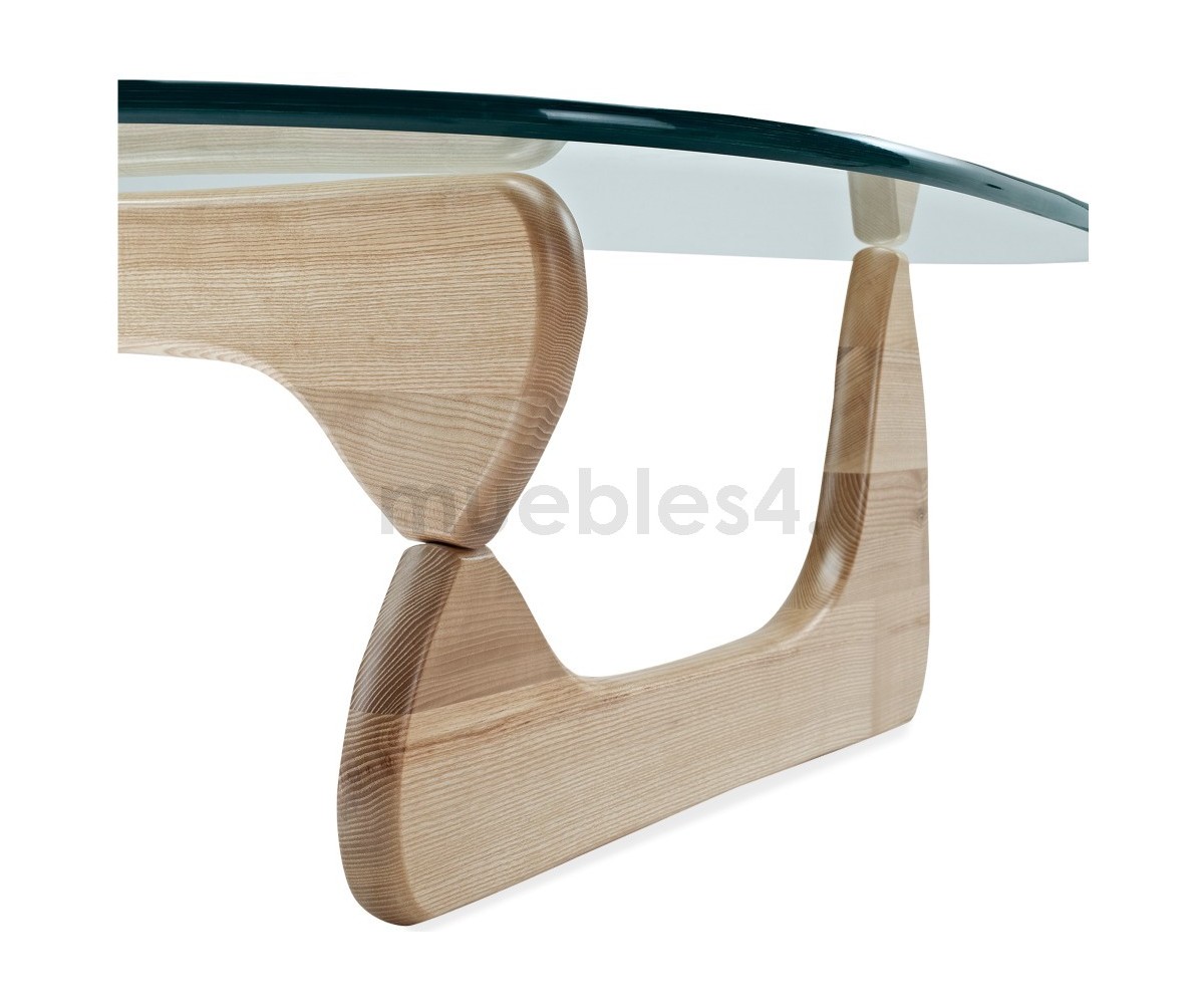Mesa de centro inspirada en un diseño de Isamu Noguchi. Mueble escultórico, sobre dos elementos idénticos de madera en ángulo recto, sobre el que descansa un pesado tablero de cristal. Calificado como uno de los mejores diseño del Siglo XX, convirtiéndose en uno de los modelos favoritos de su creador.