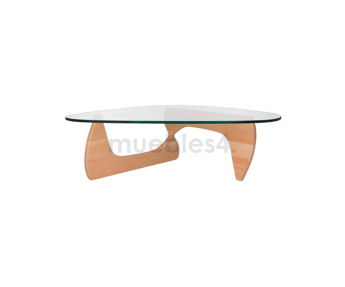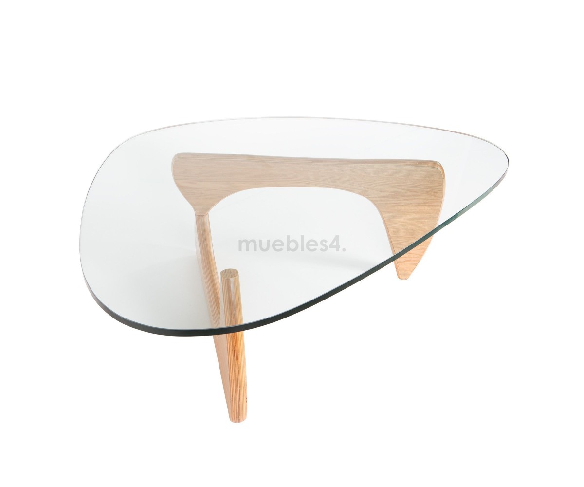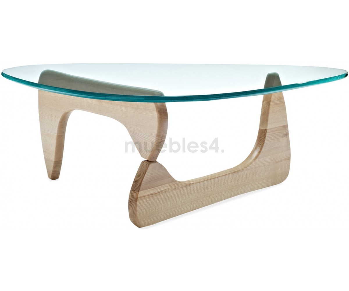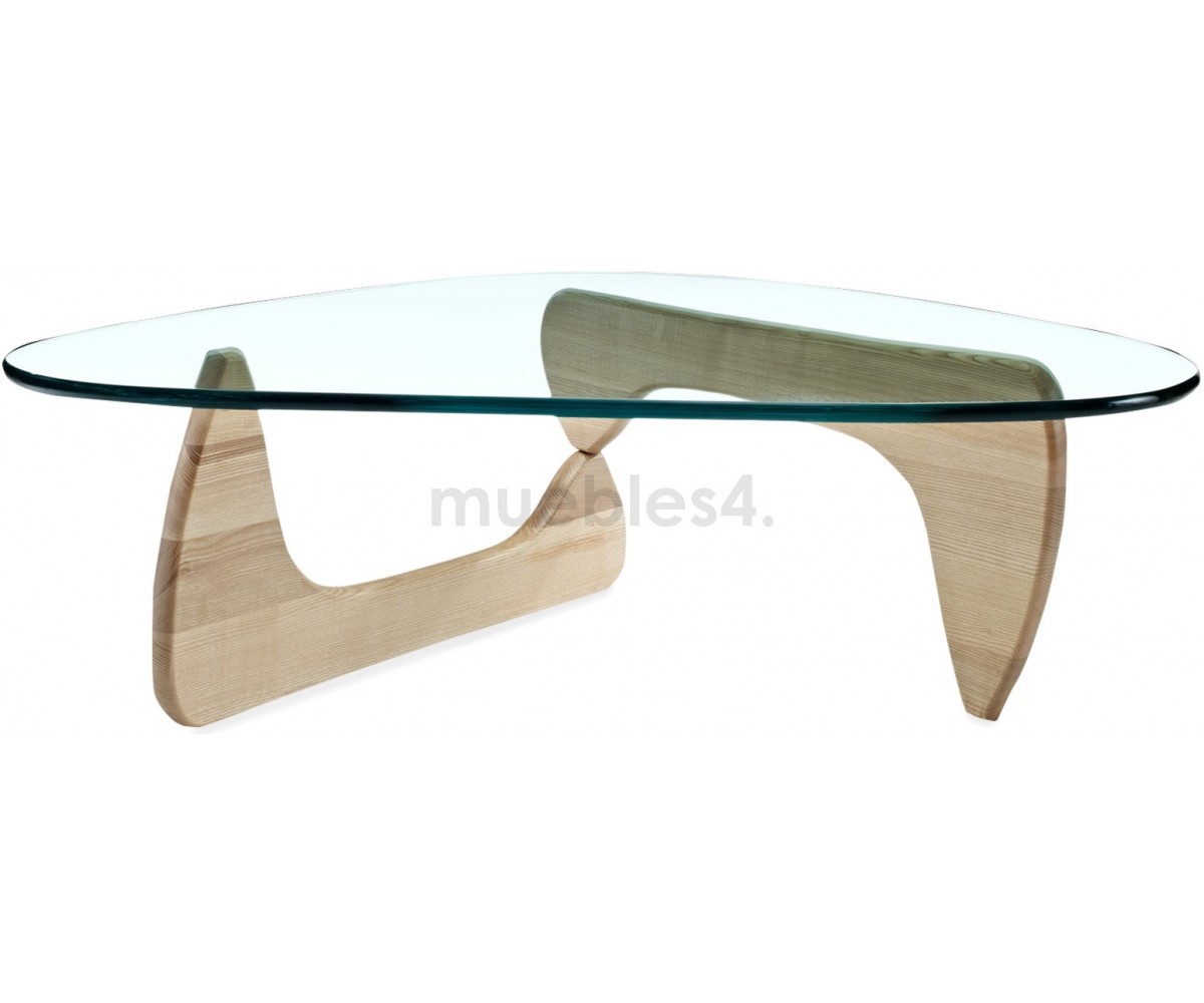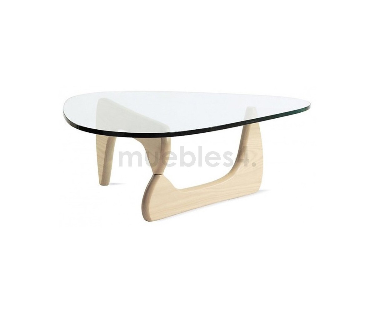 Mesa de centro inspirada en un diseño de Isamu Noguchi. Mueble escultórico, sobre dos elementos idénticos de madera en ángulo recto, sobre el que descansa un pesado tablero de cristal. Calificado como uno de los mejores diseño del Siglo XX, convirtiéndose en uno de los modelos favoritos de su creador.