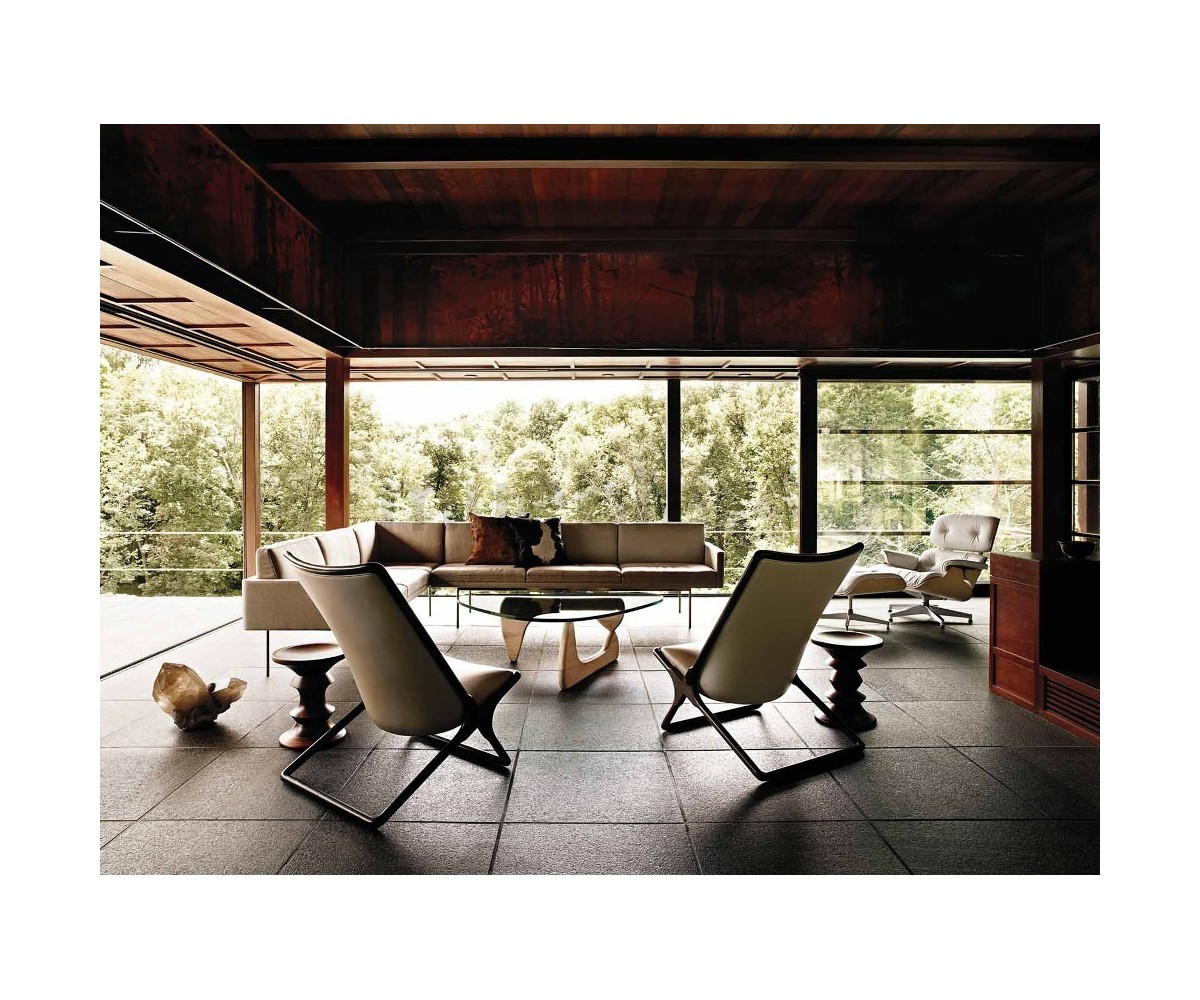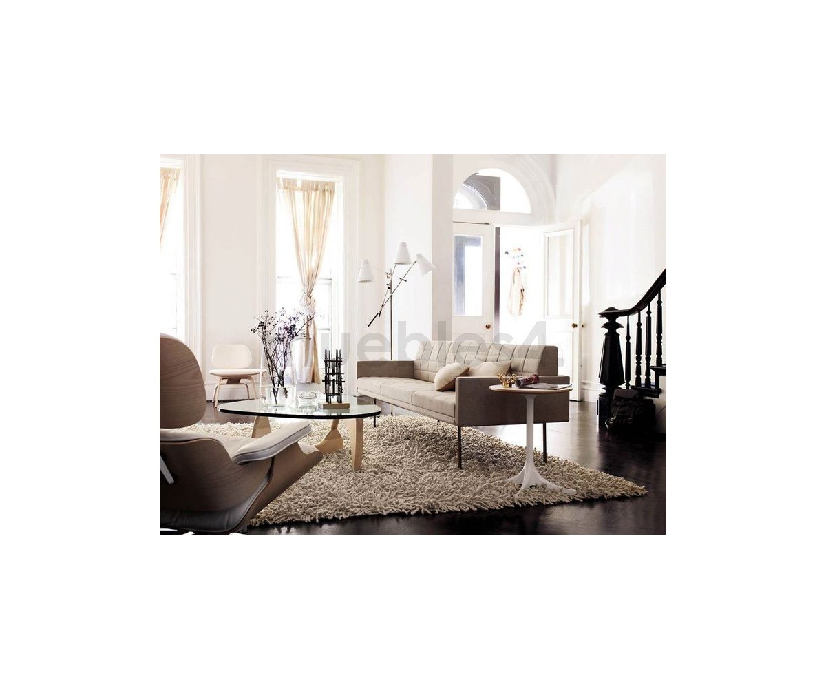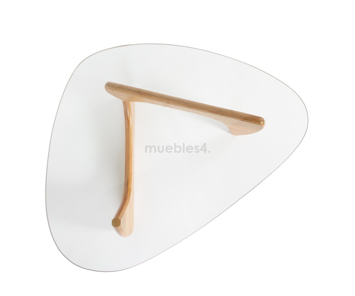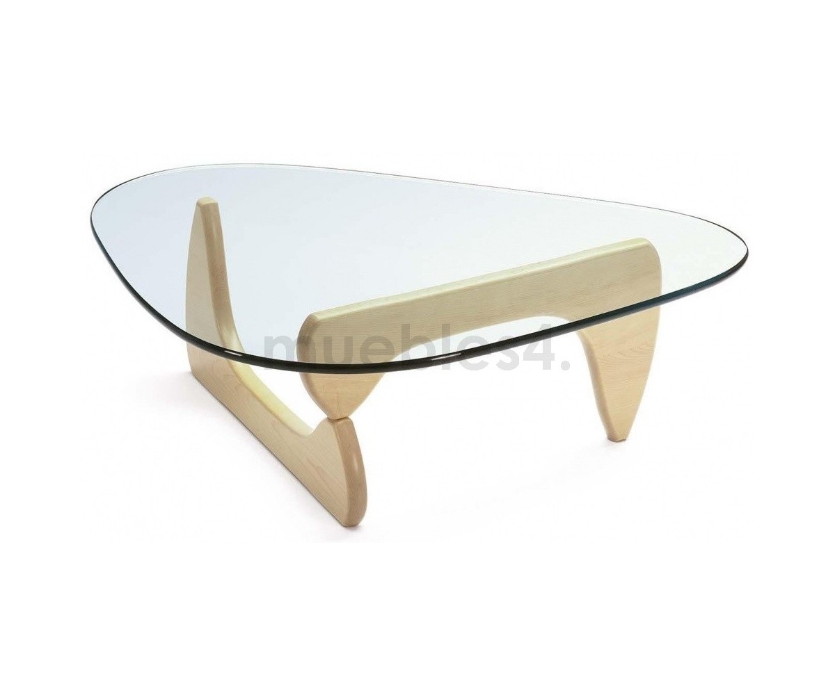 Mesa de centro inspirada en un diseño de Isamu Noguchi. Mueble escultórico, sobre dos elementos idénticos de madera en ángulo recto, sobre el que descansa un pesado tablero de cristal. Calificado como uno de los mejores diseño del Siglo XX, convirtiéndose en uno de los modelos favoritos de su creador.