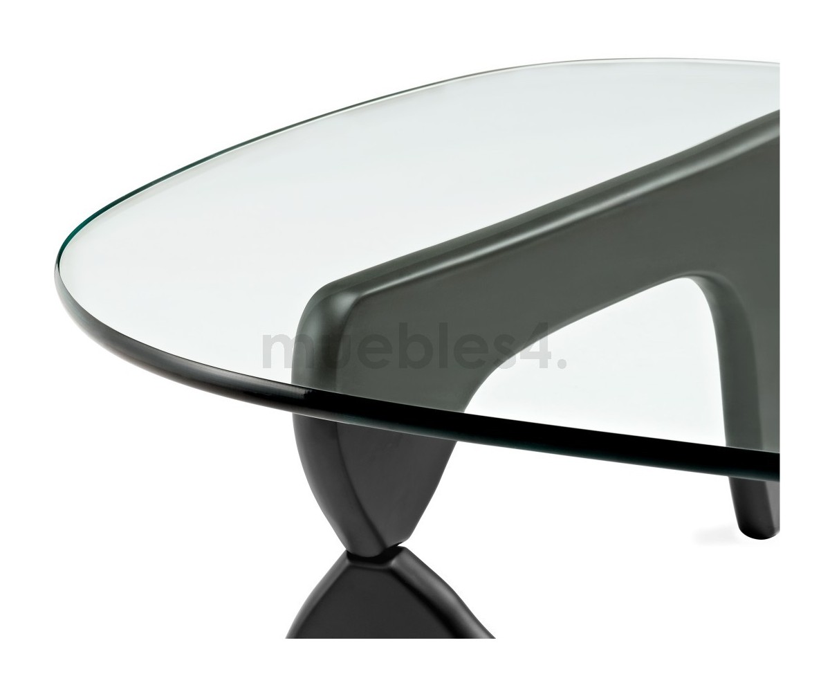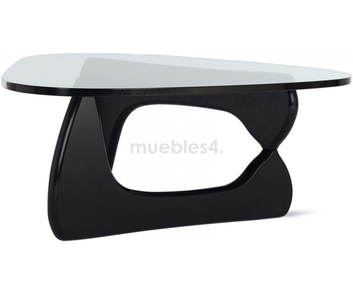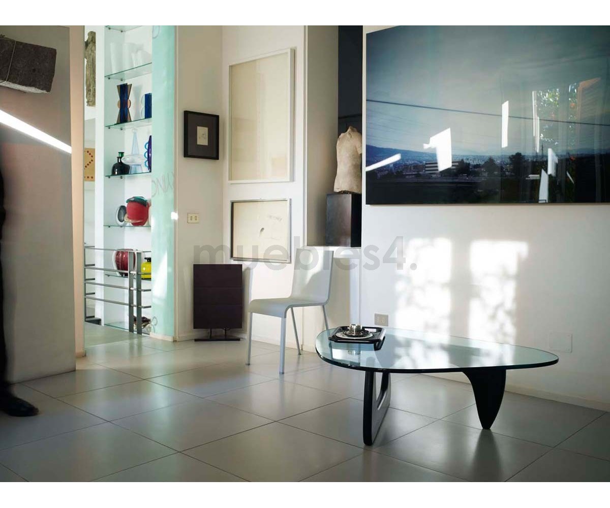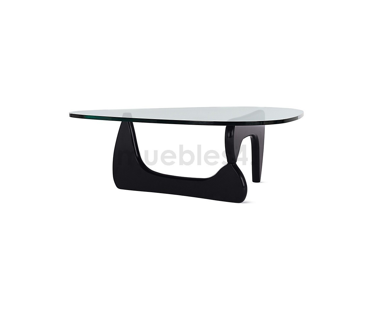 Mesa de centro inspirada en un diseño de Isamu Noguchi. Mueble escultórico, sobre dos elementos idénticos de madera en ángulo recto, sobre el que descansa un pesado tablero de cristal. Calificado como uno de los mejores diseño del Siglo XX, convirtiéndose en uno de los modelos favoritos de su creador.