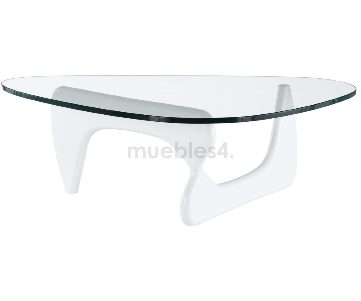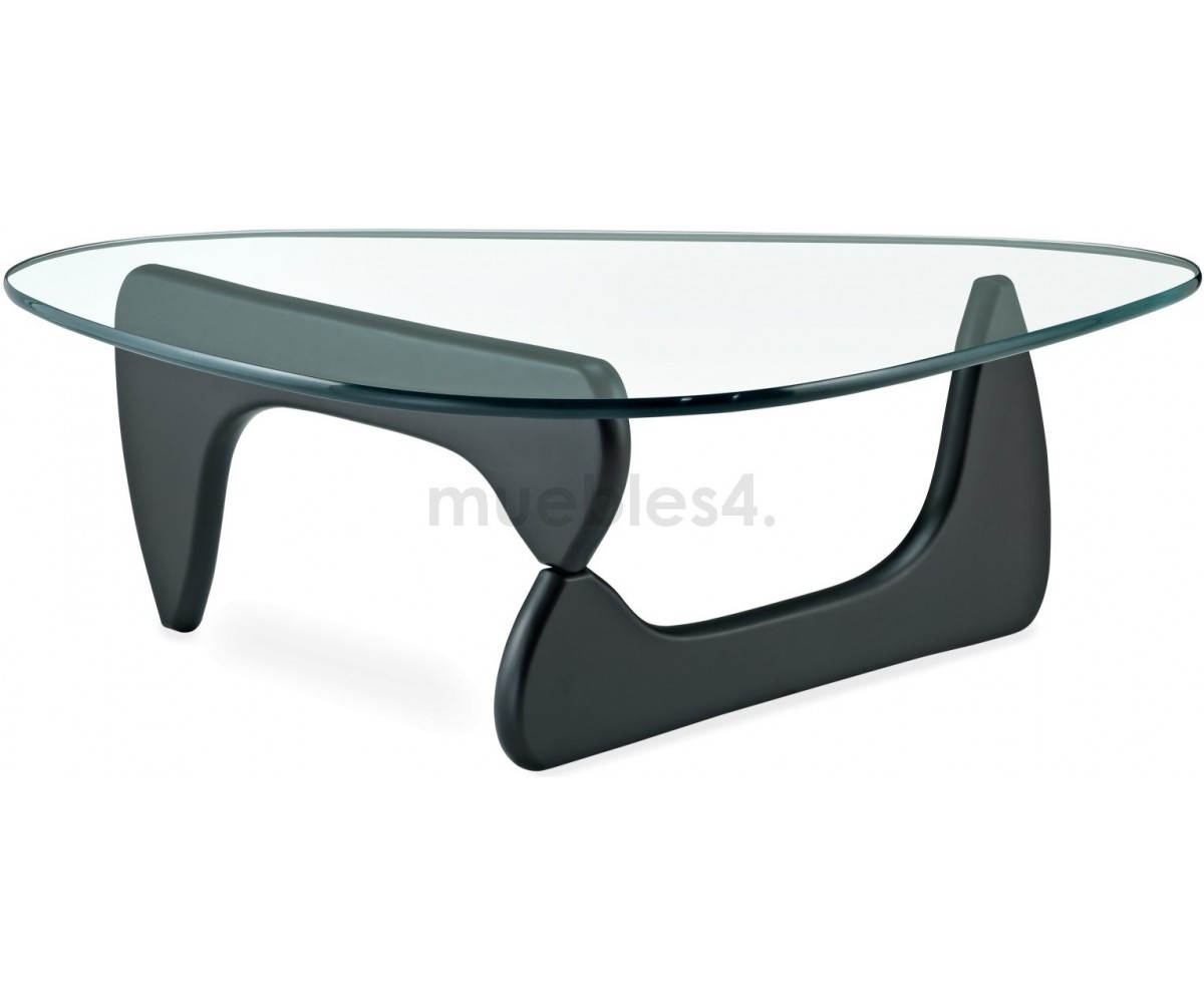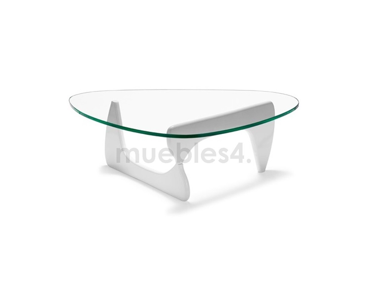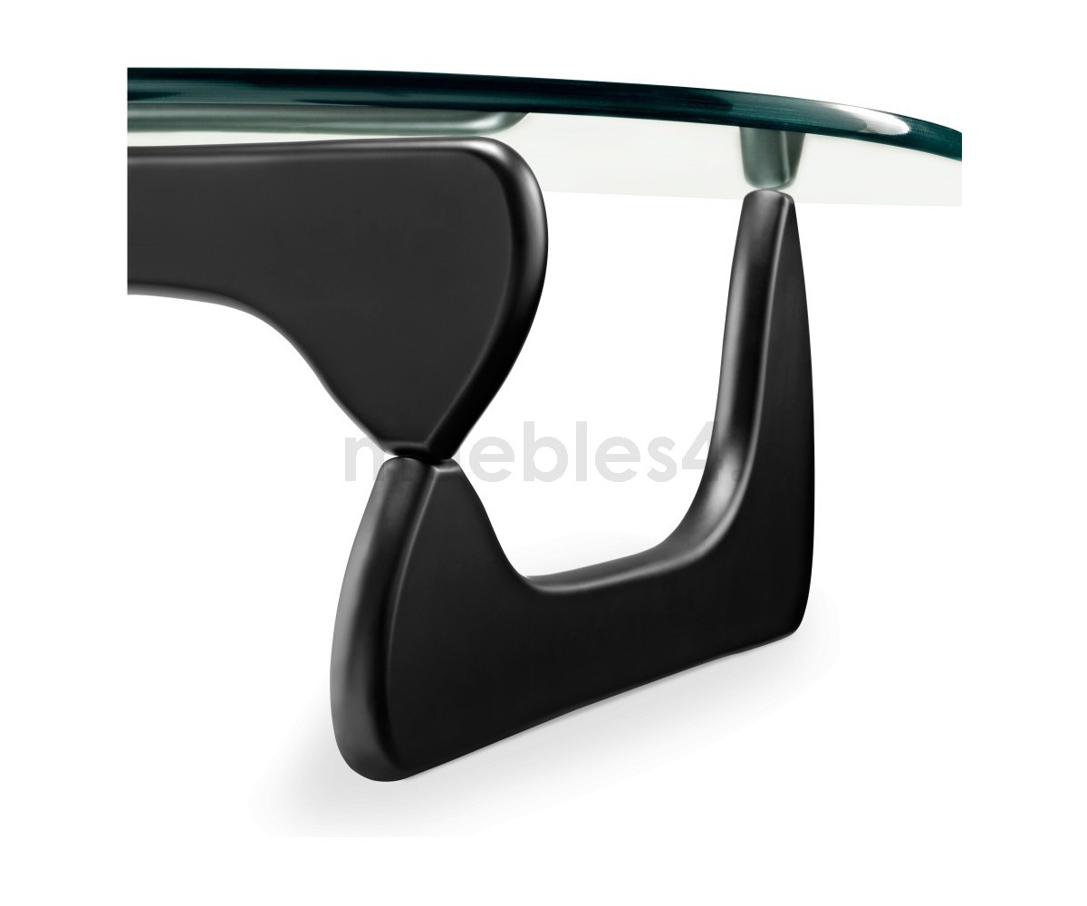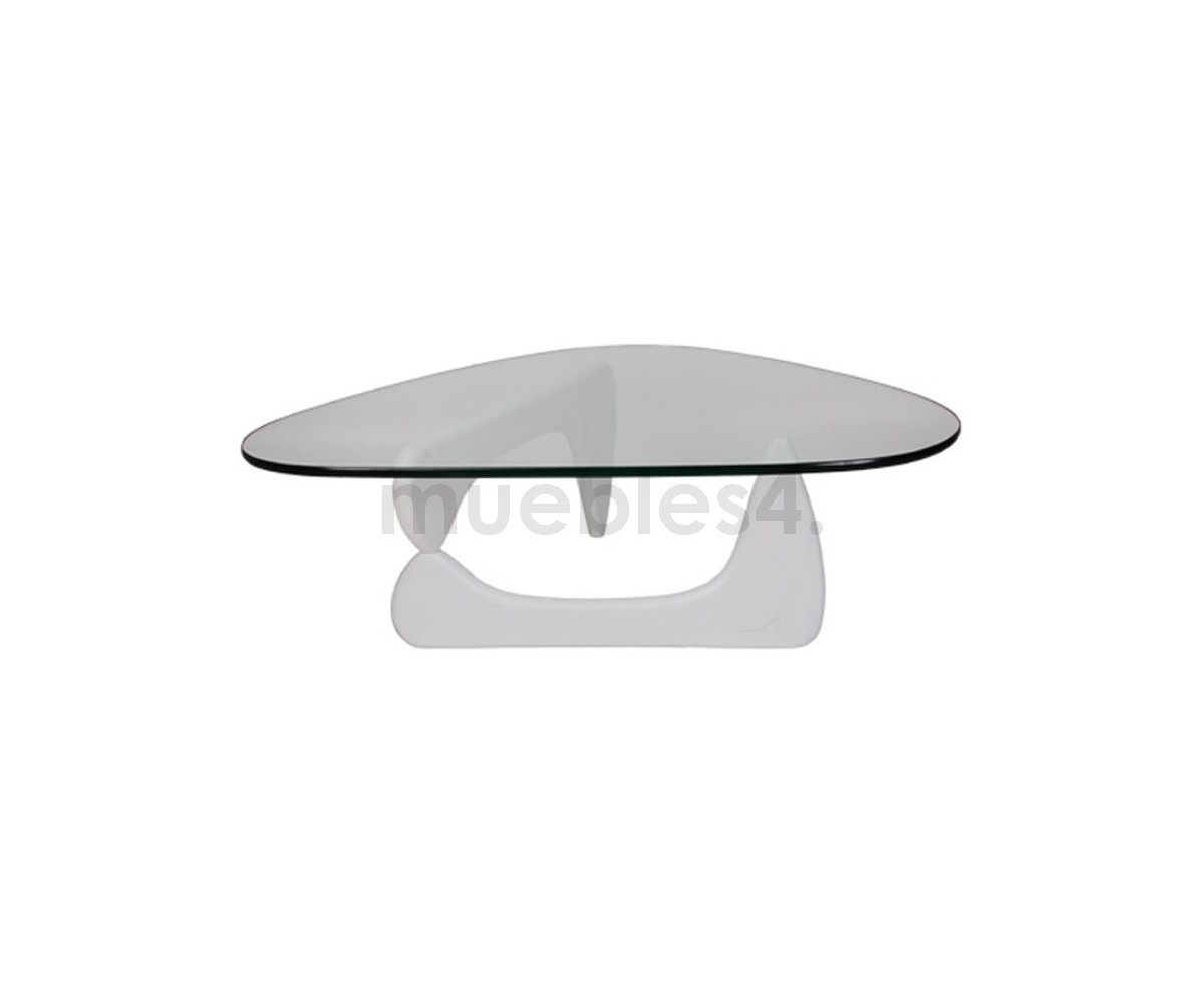 Mesa de centro inspirada en un diseño de Isamu Noguchi. Mueble escultórico, sobre dos elementos idénticos de madera en ángulo recto, sobre el que descansa un pesado tablero de cristal. Calificado como uno de los mejores diseño del Siglo XX, convirtiéndose en uno de los modelos favoritos de su creador.