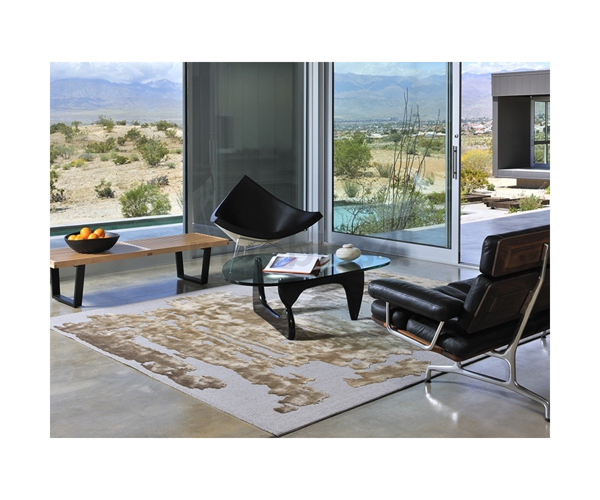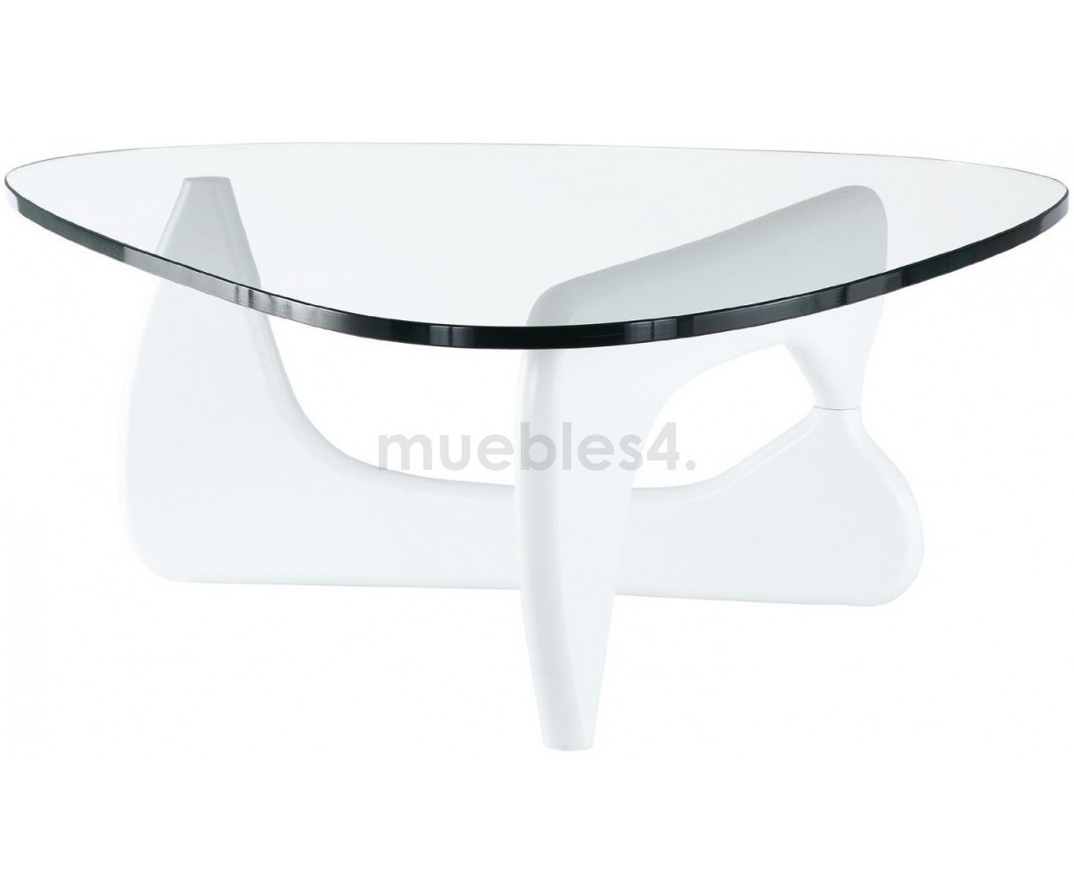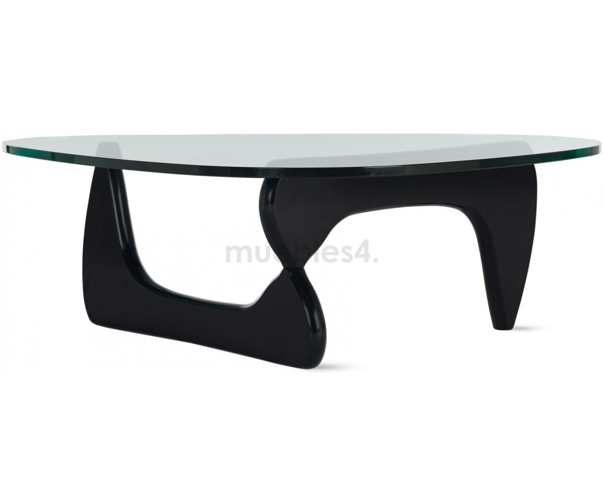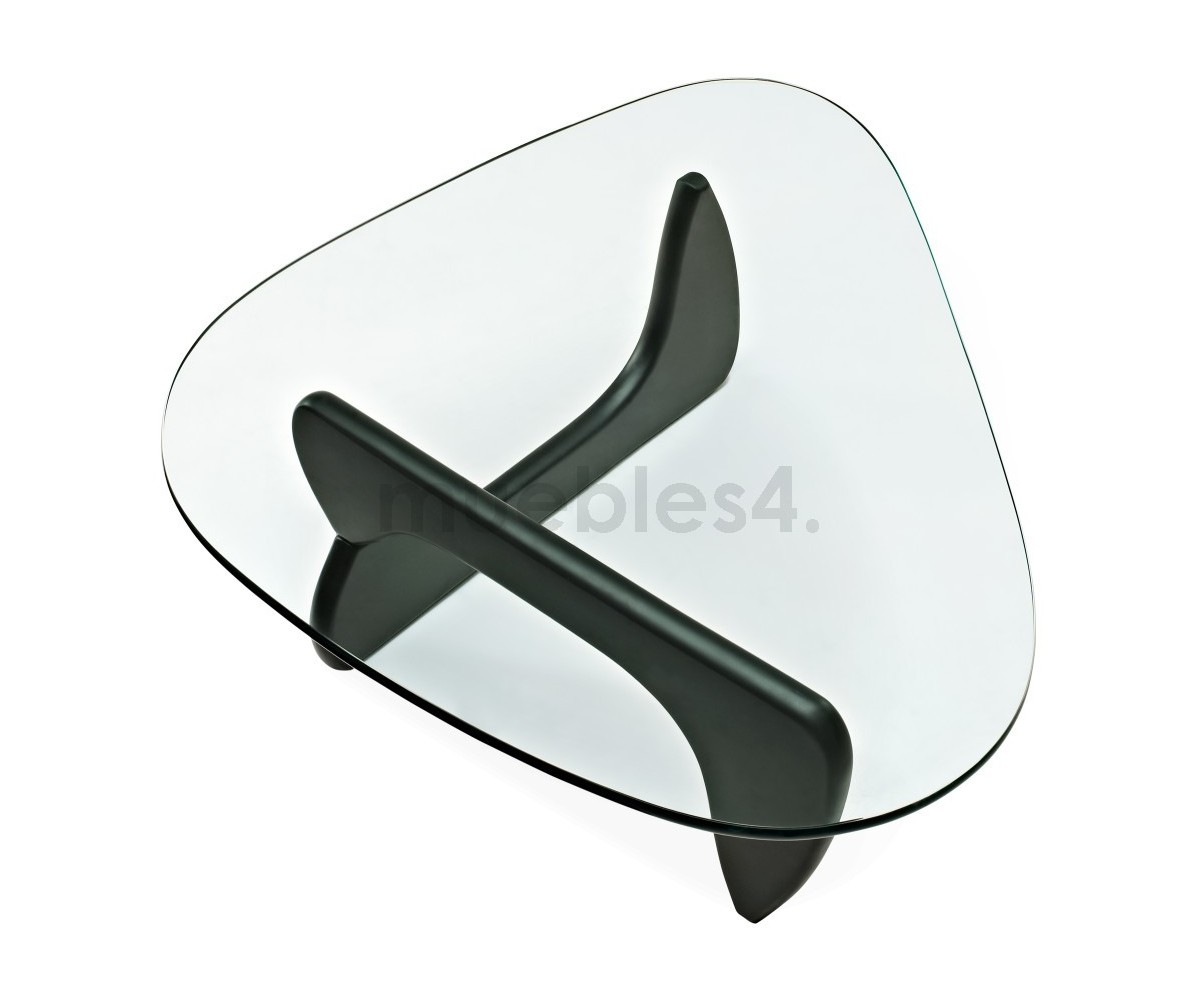 Mesa de centro inspirada en un diseño de Isamu Noguchi. Mueble escultórico, sobre dos elementos idénticos de madera en ángulo recto, sobre el que descansa un pesado tablero de cristal. Calificado como uno de los mejores diseño del Siglo XX, convirtiéndose en uno de los modelos favoritos de su creador.