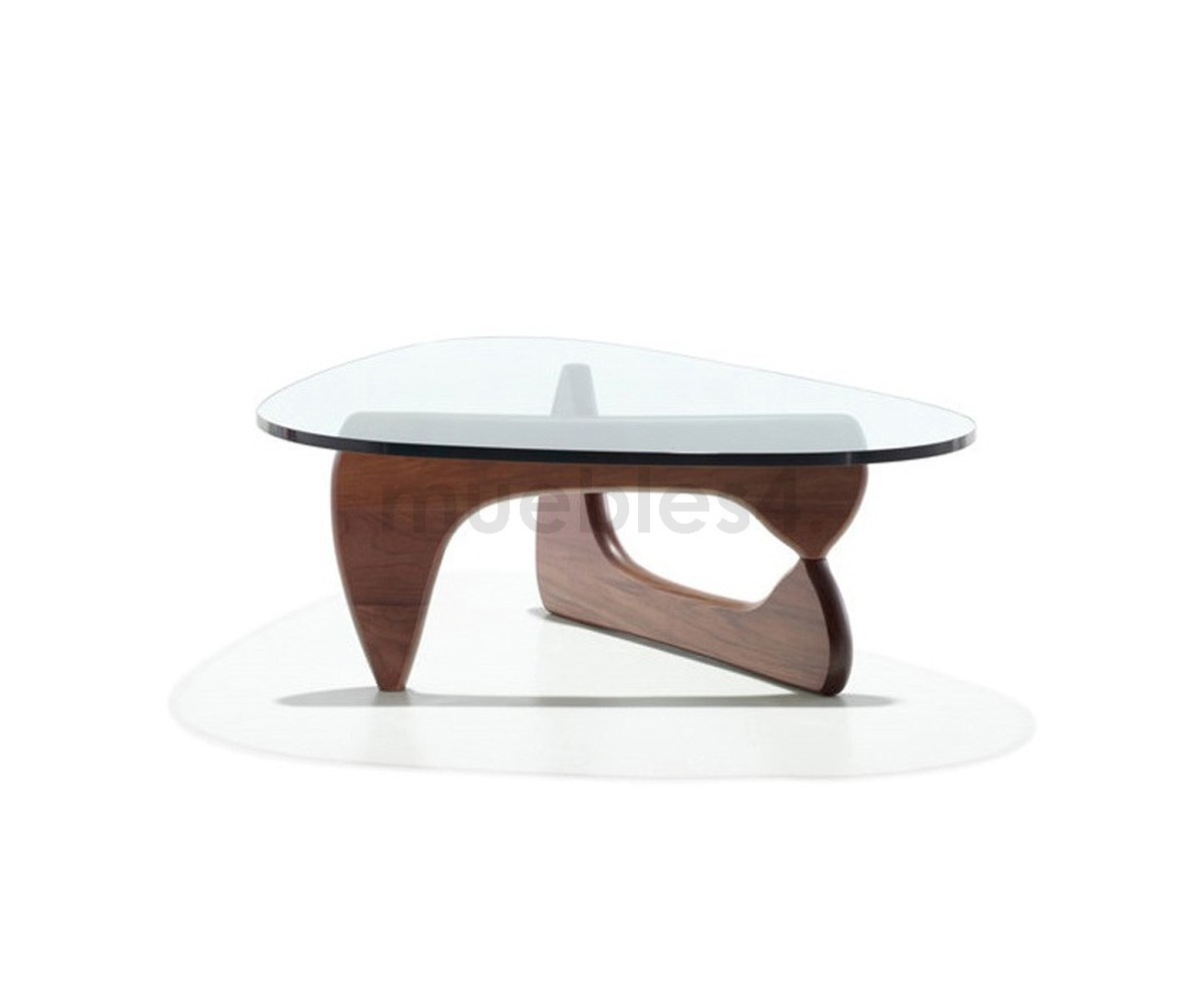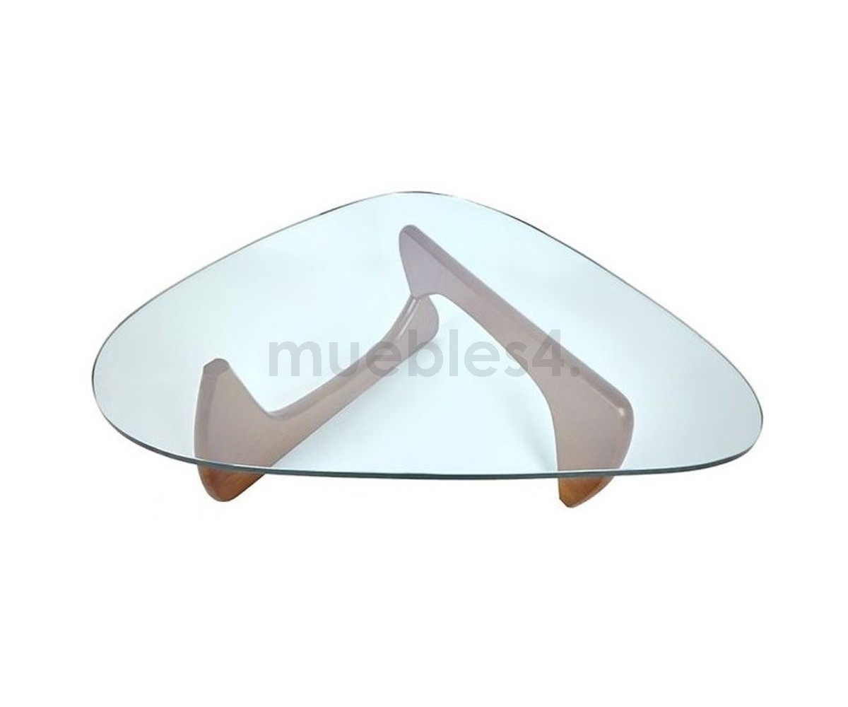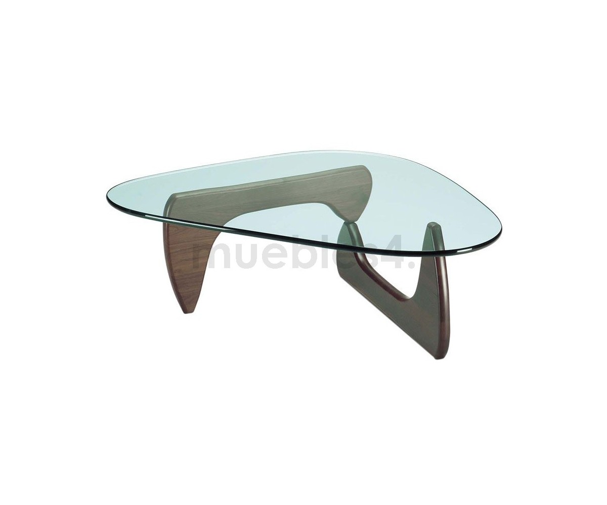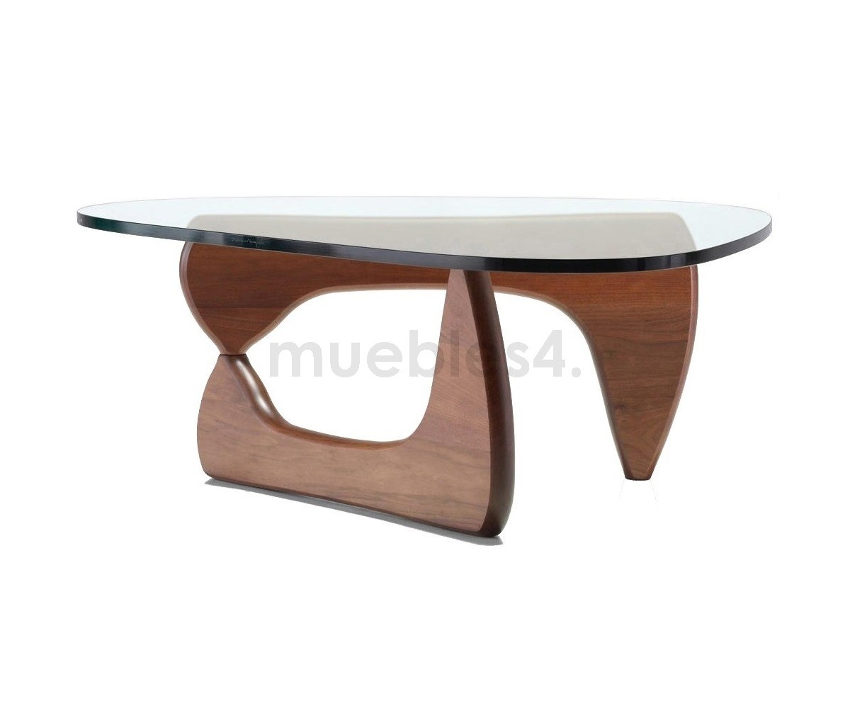 Mesa de centro inspirada en un diseño de Isamu Noguchi. Mueble escultórico, sobre dos elementos idénticos de madera en ángulo recto, sobre el que descansa un pesado tablero de cristal. Calificado como uno de los mejores diseño del Siglo XX, convirtiéndose en uno de los modelos favoritos de su creador.