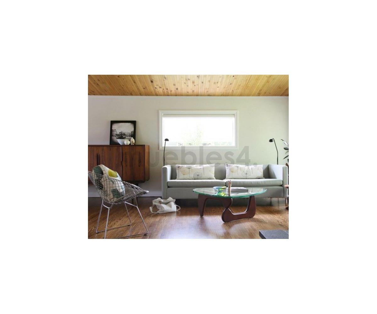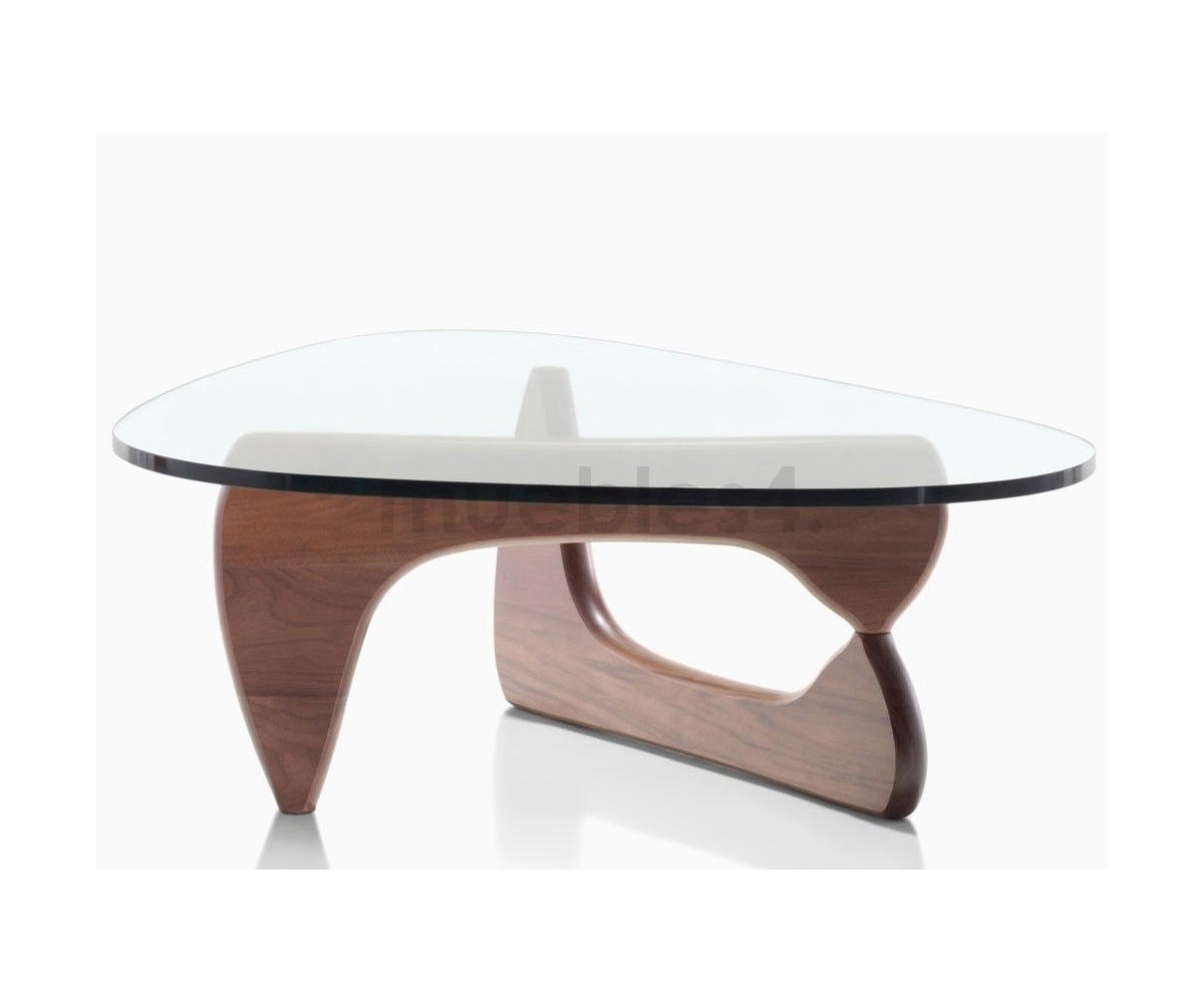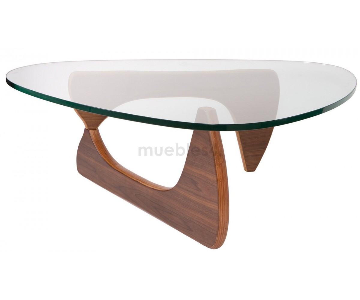 Mesa de centro inspirada en un diseño de Isamu Noguchi. Mueble escultórico, sobre dos elementos idénticos de madera en ángulo recto, sobre el que descansa un pesado tablero de cristal. Calificado como uno de los mejores diseño del Siglo XX, convirtiéndose en uno de los modelos favoritos de su creador.