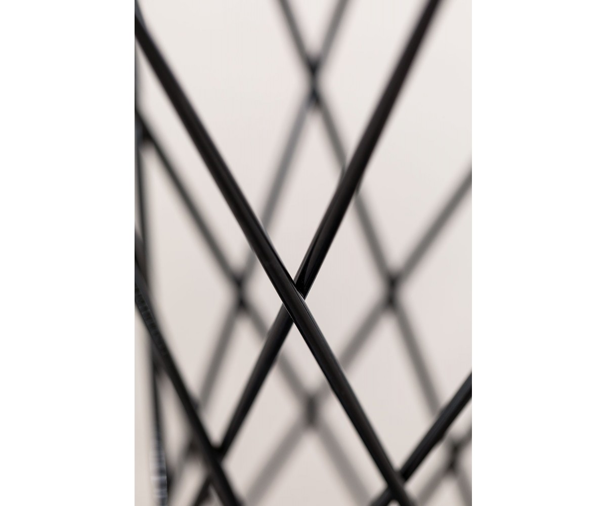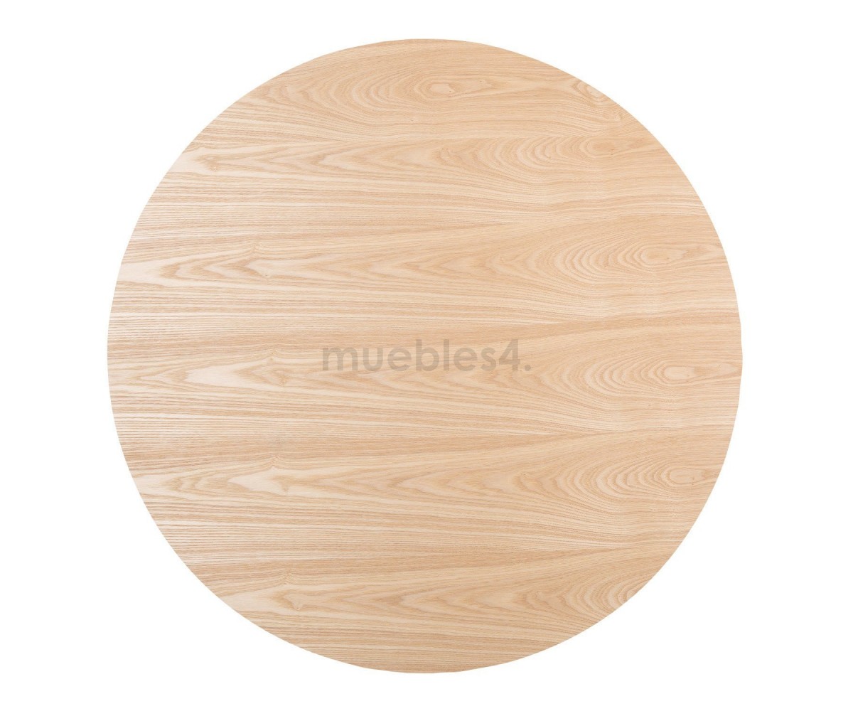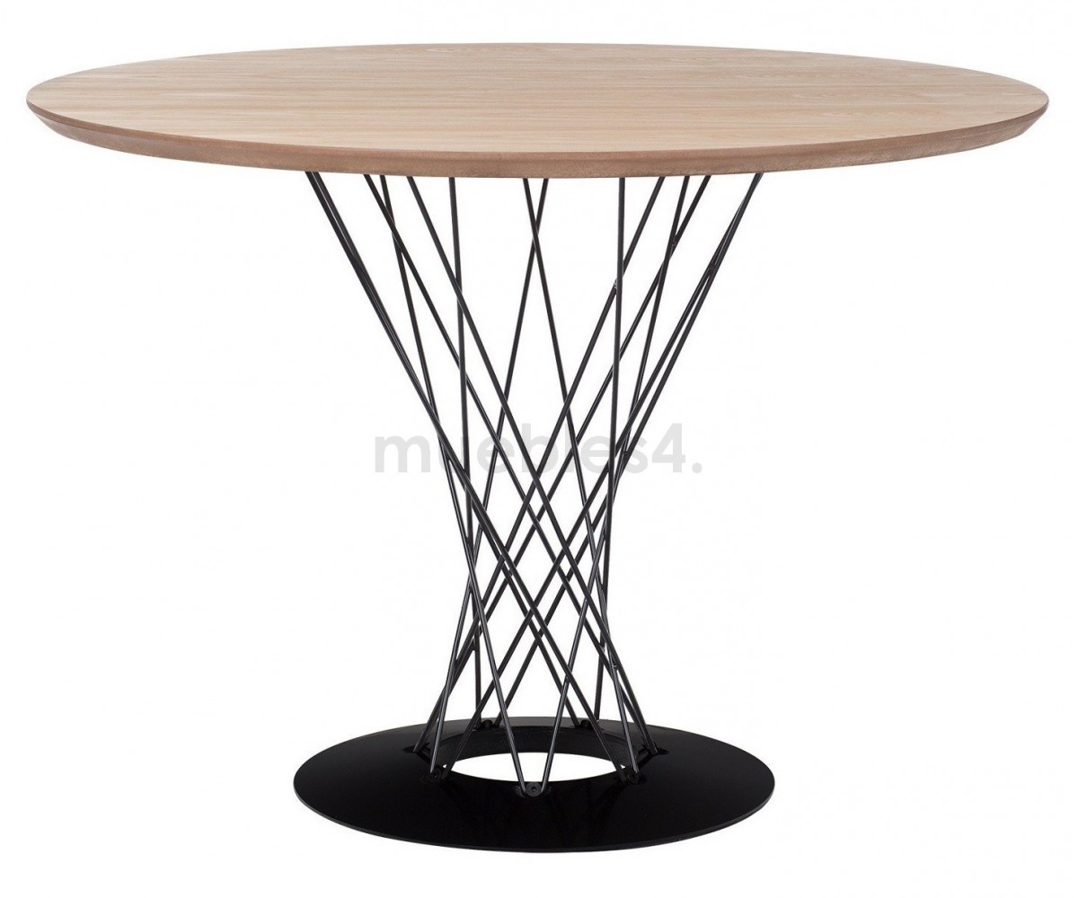 Mesa circular de comedor inspirada en un diseño Isamu Noguchi. Estructura mediante barillas en acero cromado termianción negro brillo, base circular en acero lacado al horno color negro, sobre circular en madera de mdf roble. Réplica exacta con materiales originales de máxima calidad.