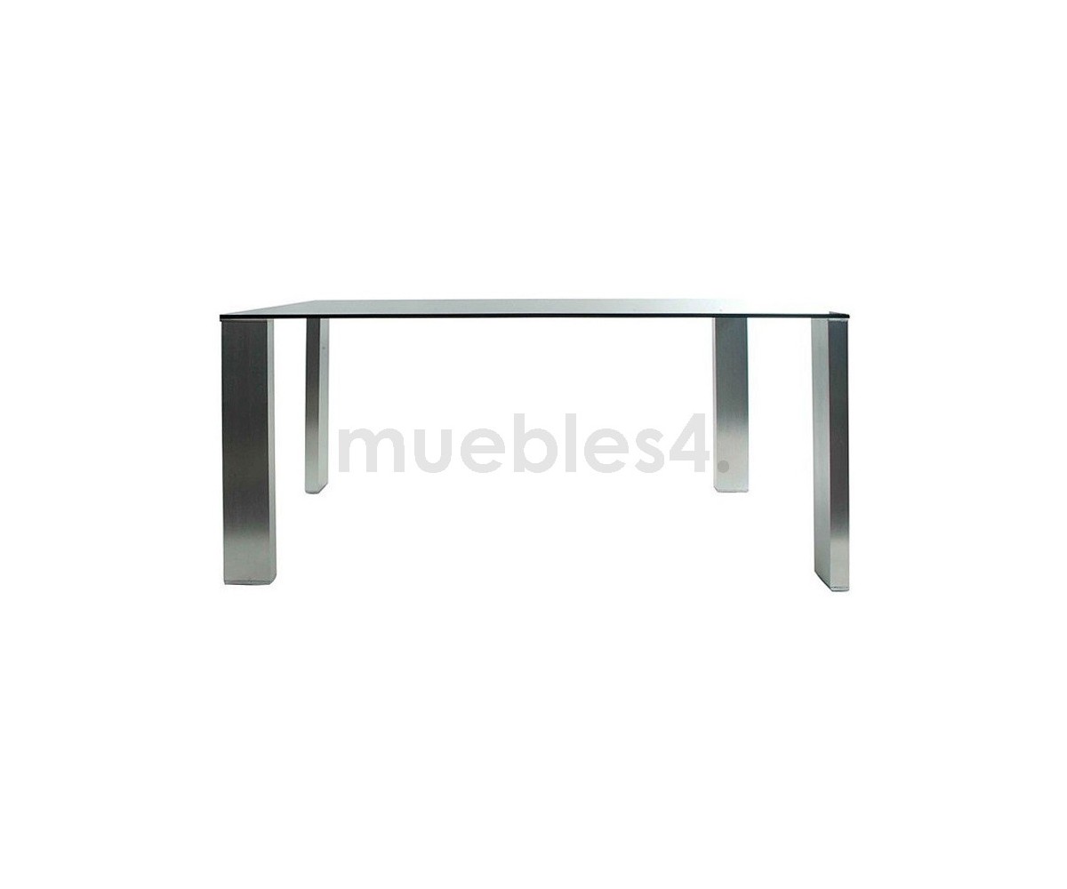 Mesa de comedor rectangular inspirada en un diseño de Georg Appeltshauser. Patas en alumnio terminación plata brillo pulido, tapa en cristal templado terminación transparente. Réplica exacta con materiales originales de máxima calidad.