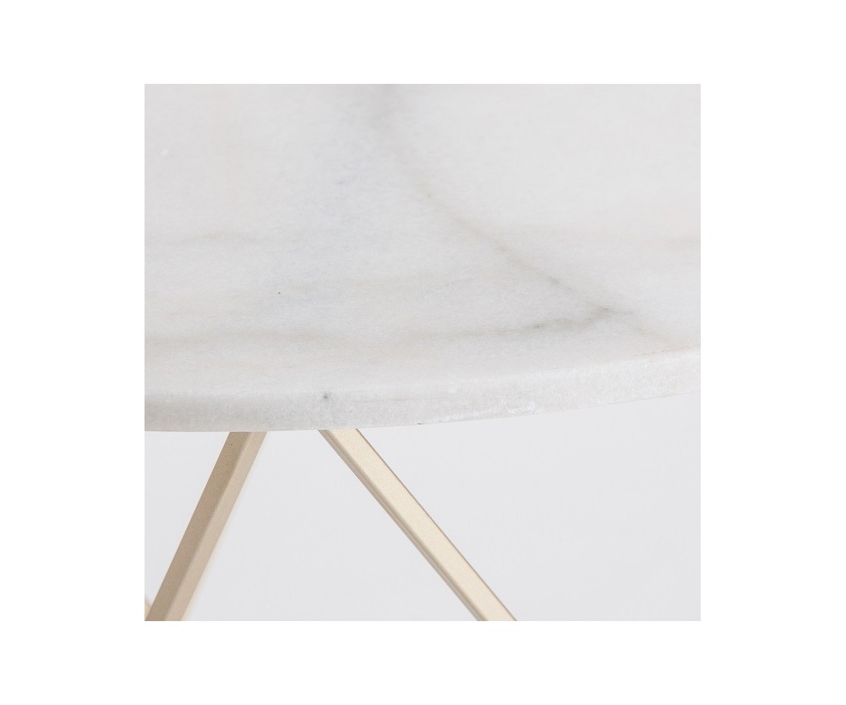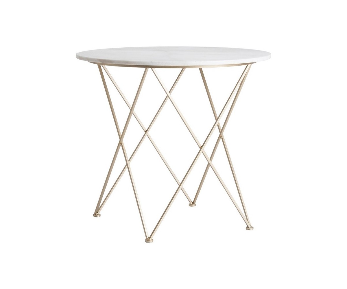 Mesa de comedor inspirada en un diseño de Dennis Marquart para OXDENMARQ. Estructura fabricada en acero rectangular con triple lacado dorado, tapa redonda en mármol de carrara color blanco veteado. Réplica exacta con materiales originales de máxima calidad.