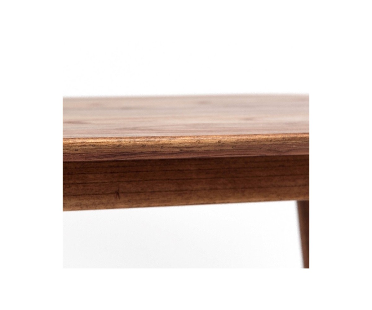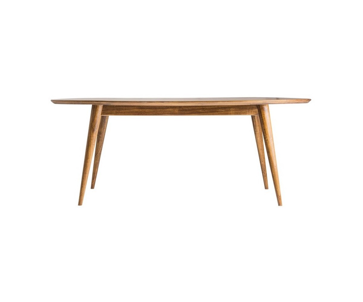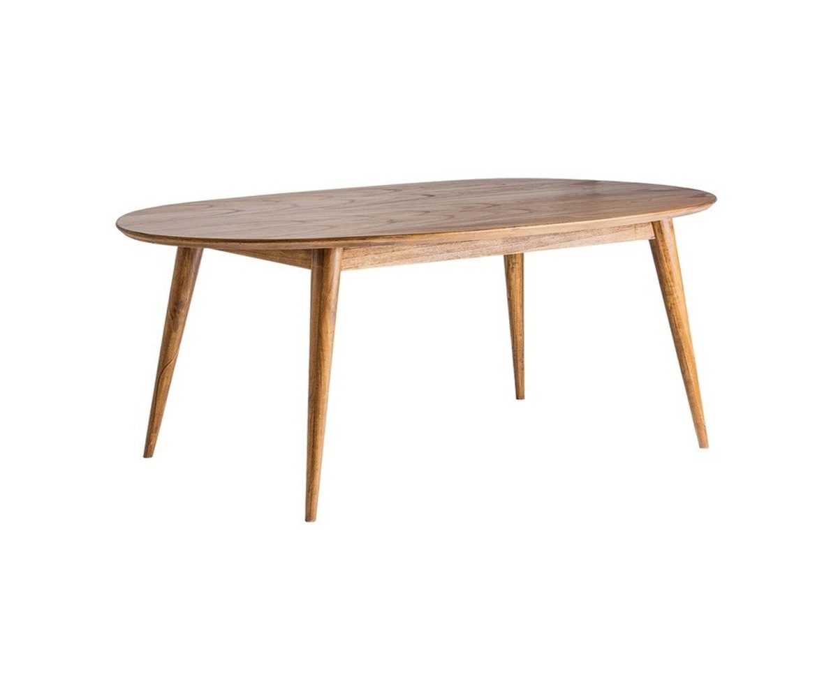 Mesa nórdica ovalada inspirada en un diseño de Hugues Revuelta. Fabricada en madera de mindi terminación natural, dicha madera se utiliza para fabricar muebles de calidad, se cultivada en el sudeste asiático y América del Sur y originalmente es de tonalidad clara. Réplica exacta con materiales originales de máxima calidad.