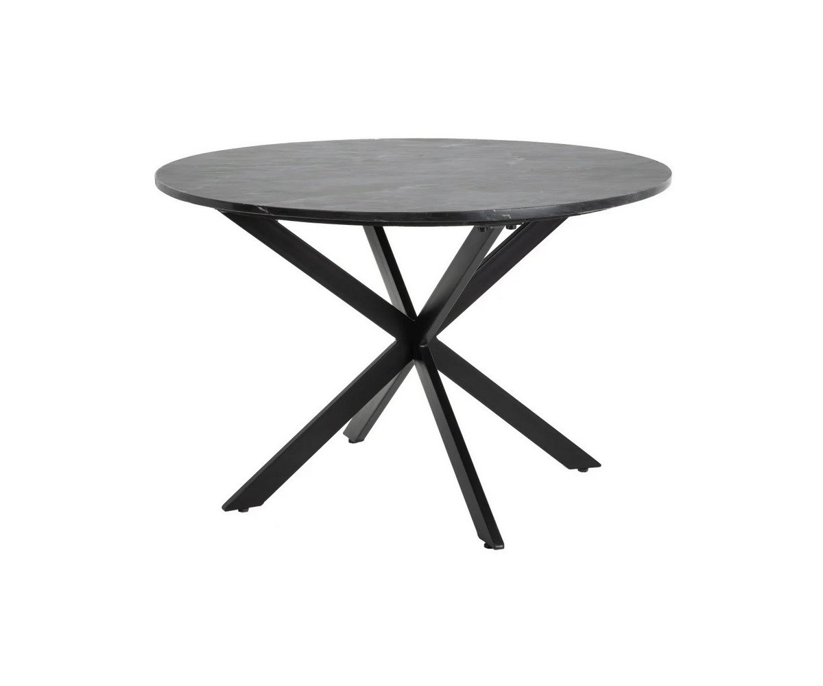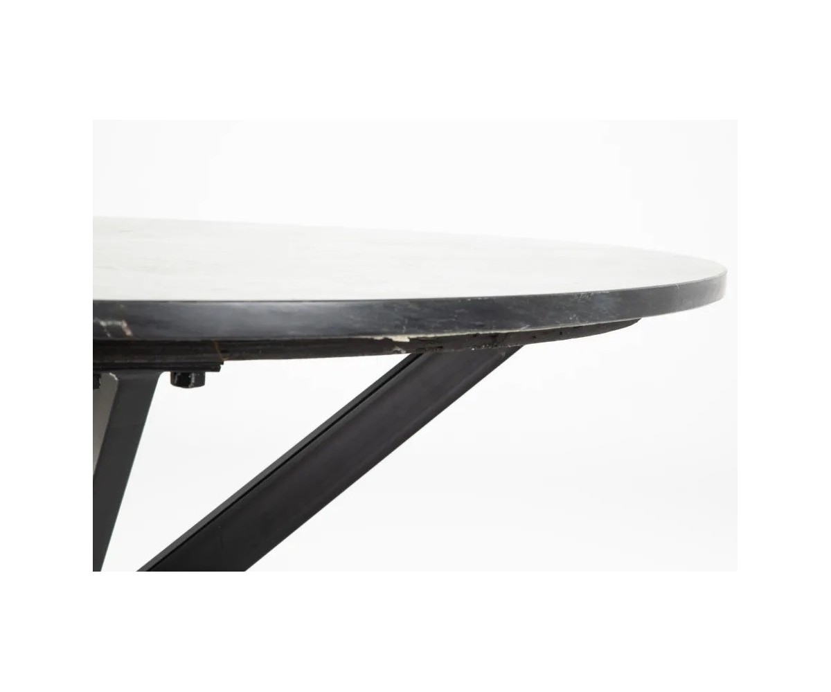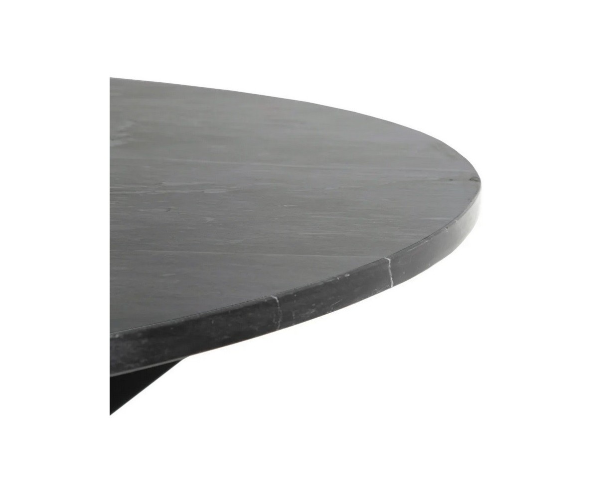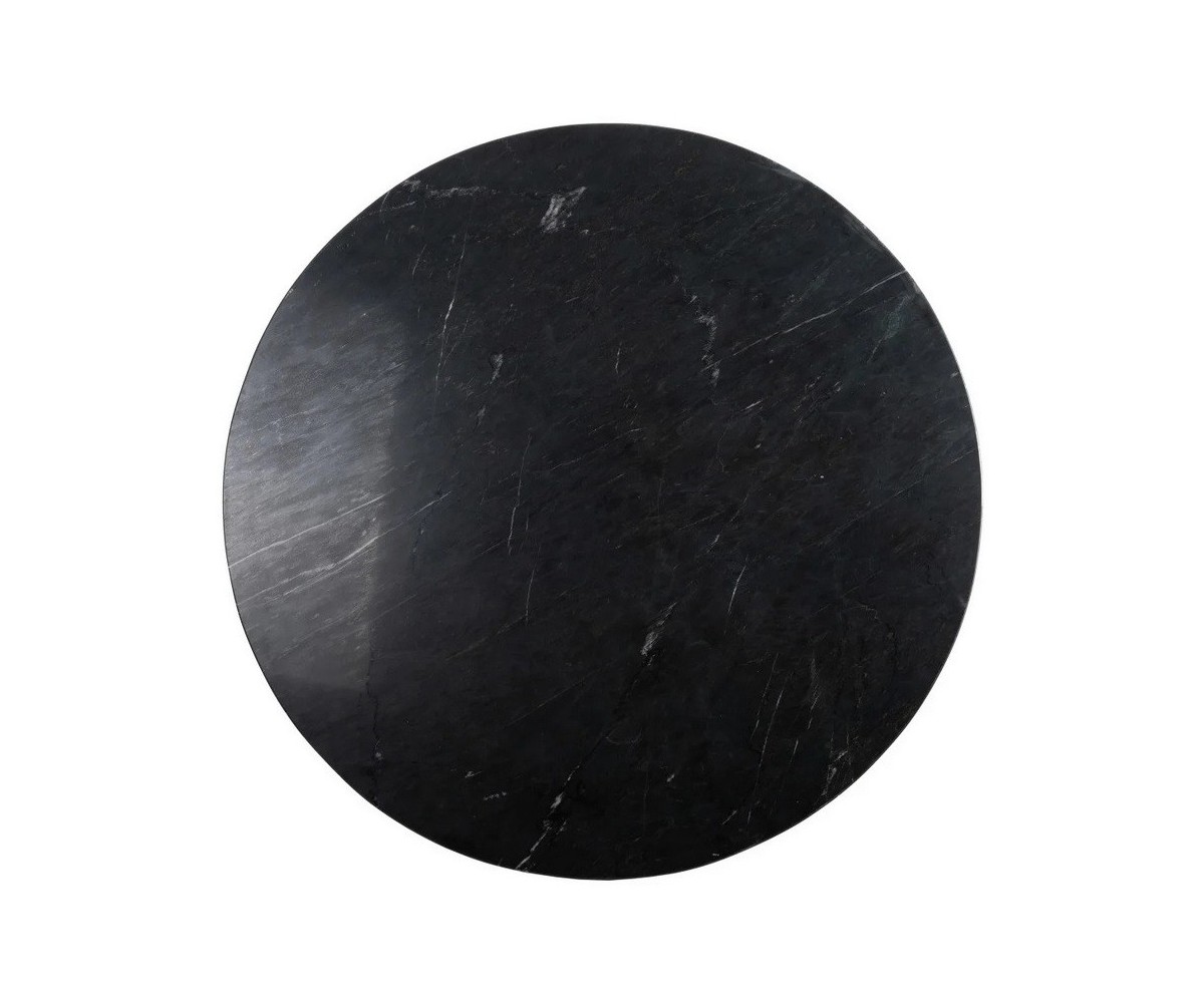 Mesa de comedor circular inspirada en un diseño de Niehoff Design Lab. Estructura fabricada en acero con triple lacado color negro, sobre circular en mármol color negro veteado. Las patas tienen una altura de 74cm. La piedra al ser un material natural, puede verse ligeramente modificado el tono y la veta. Réplica exacta con materiales originales de máxima calidad.