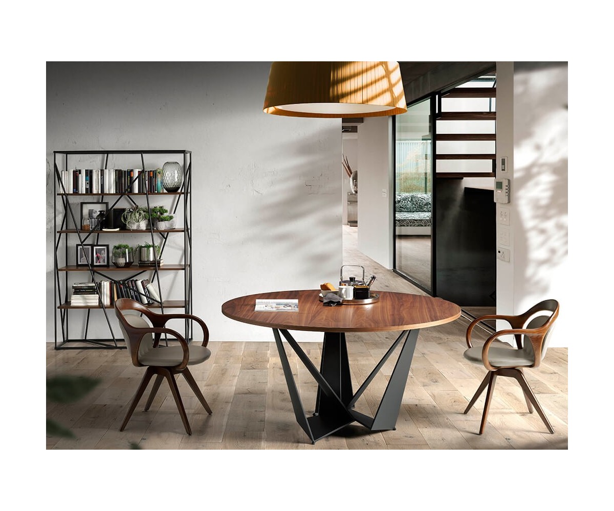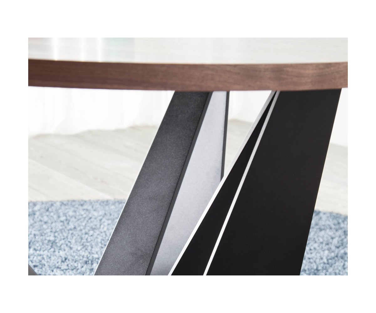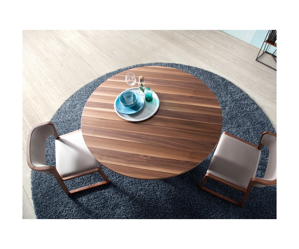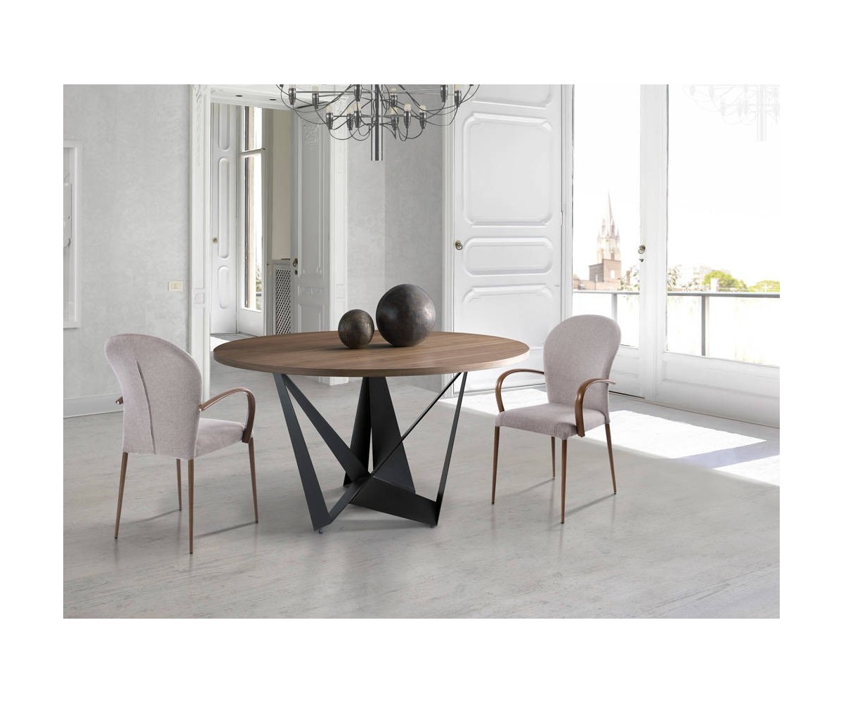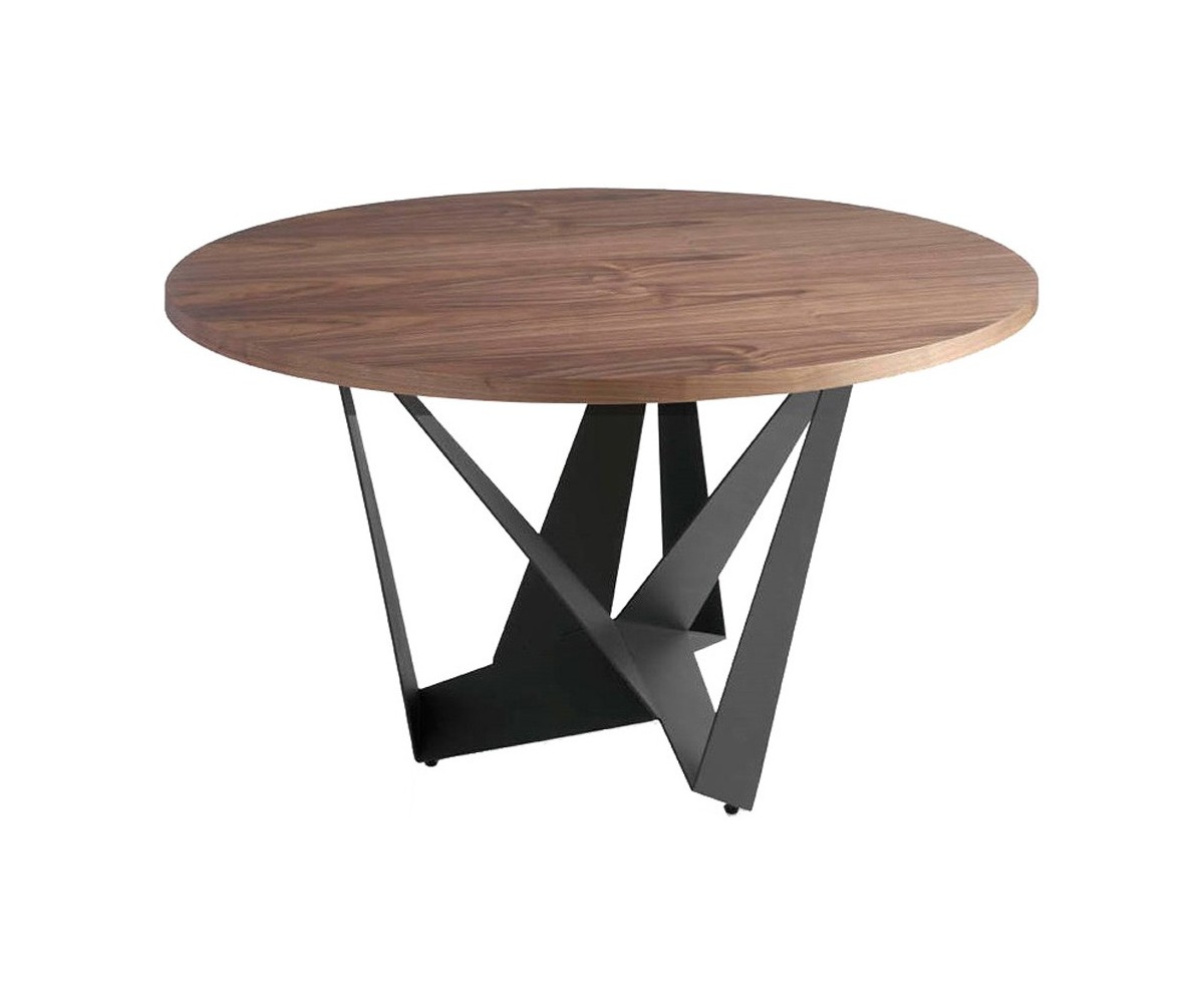 Mesa de comedor circular inspirado en un diseño de Andrea Lucatello. Base en acero pintado en epoxi color negro, tapa circular en madera de nogal. OPCIÓN TAPA EN ROBLE Y BASE EN MÁS COLORES, VER IMAGENES. Réplica exacta con materiales originales de máxima calidad.