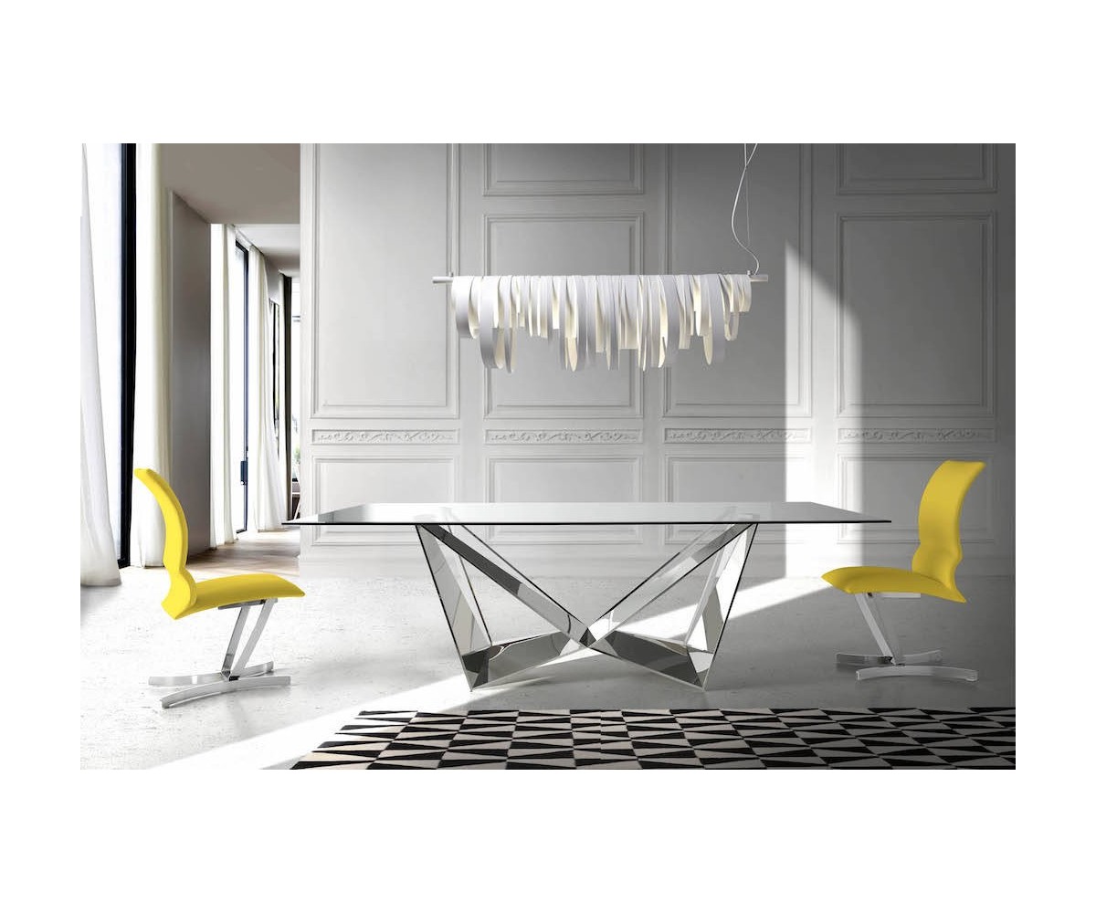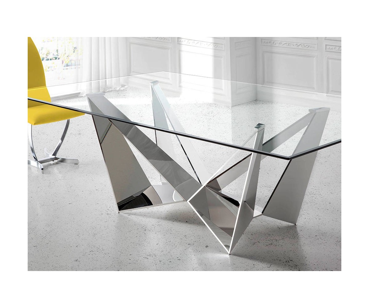Mesa de comedor rectangular inspirado en un diseño de Andrea Lucatello para Cattelan Italia. Base en acero inoxidable de 22 micras, tapa circular fija de cristal templado transparente de 12mm, de grosor. OPCIÓNES TAPA EN MÁRMOL PORCELÁNICO O MADERA, ESTRUCTURA LACADO EN NEGRO Y OTRAS MEDIDAS DE MESA, VER FICHA PRODUCTO Y CONSULTAR. Réplica exacta con materiales originales de máxima calidad.
