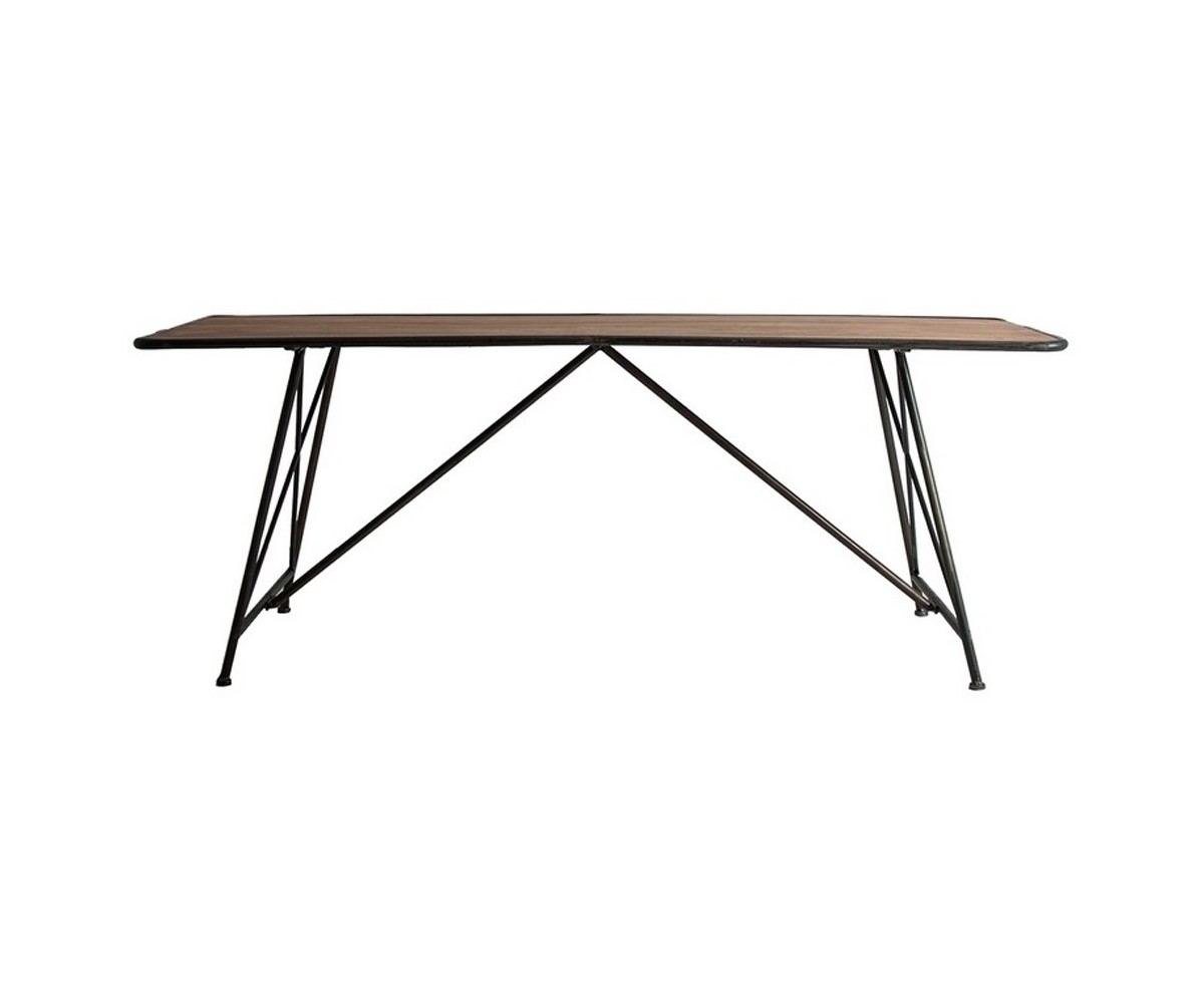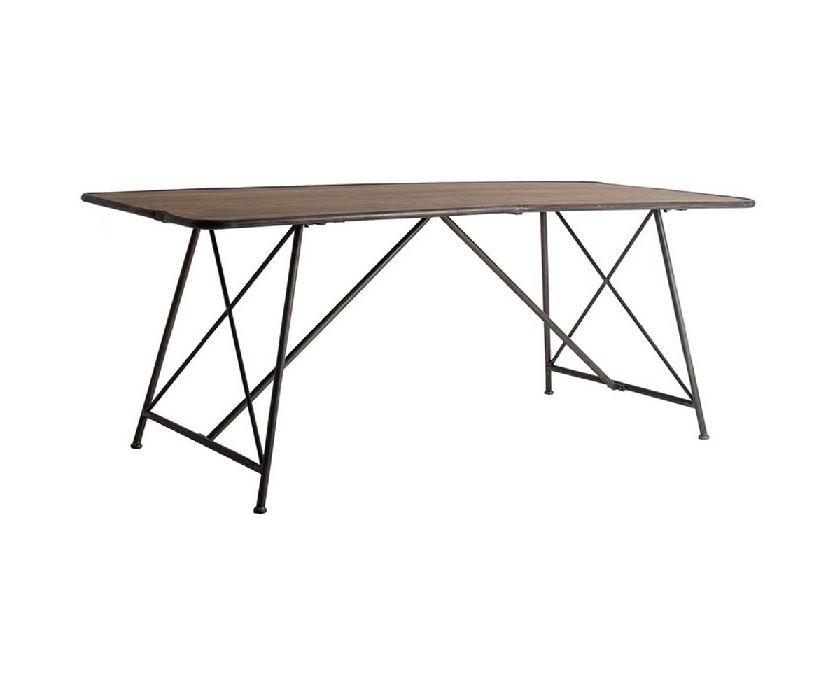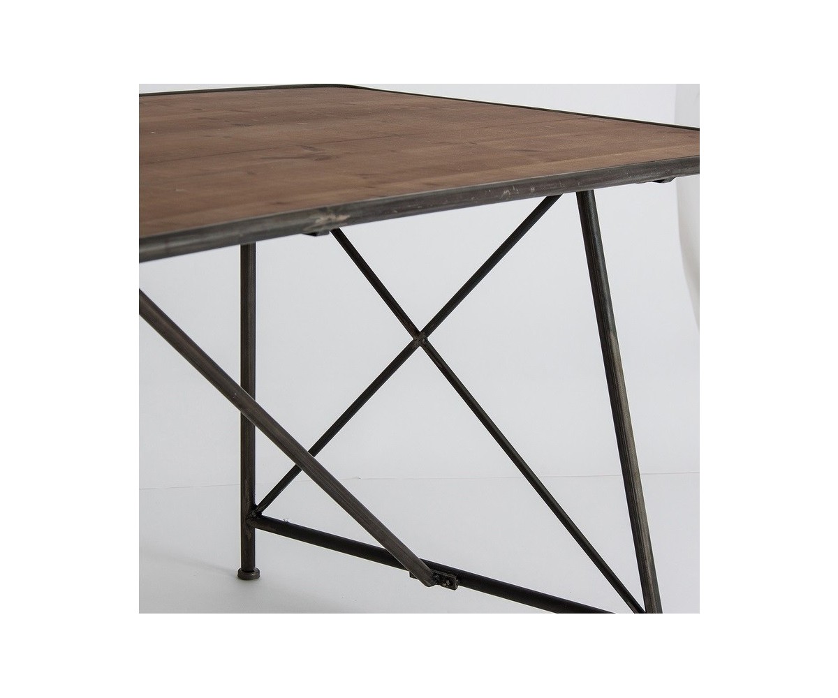 Mesa de comedor rectangular, inspirado en un diseño de EuropeDesign. Estructura fabricada en hierro envejecido de estilo industrial, tapa en madera de olmo. Producto desmontable. Réplica exacta con materiales originales de máxima calidad.