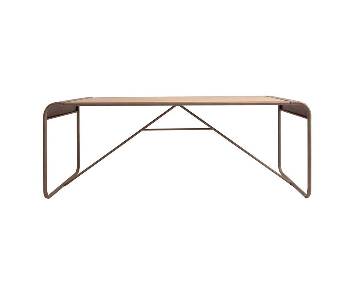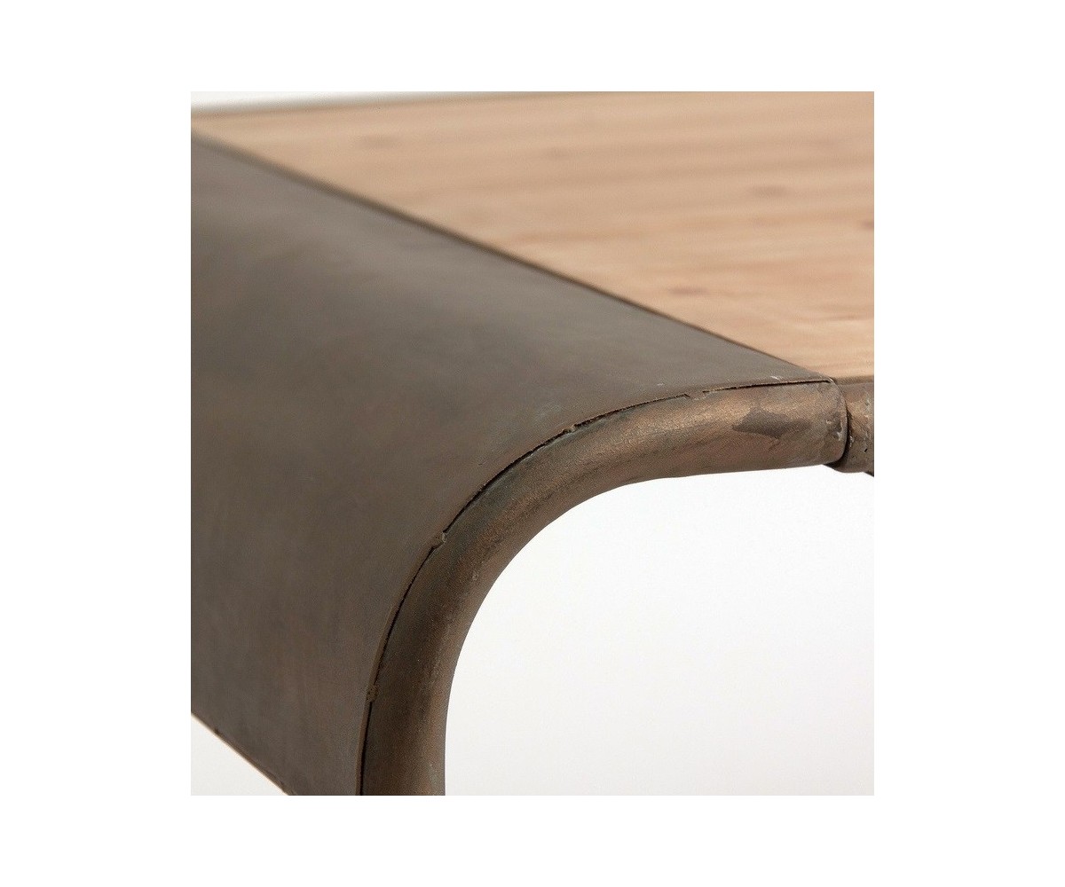 Mesa de comedor rectangular, inspirada en un diseño de EuropeDesign. Estructura fabricada en hierro estilo industrial envejecido lacado negro, tapa madera de olmo patinado. Réplica exacta con materiales originales de máxima calidad.