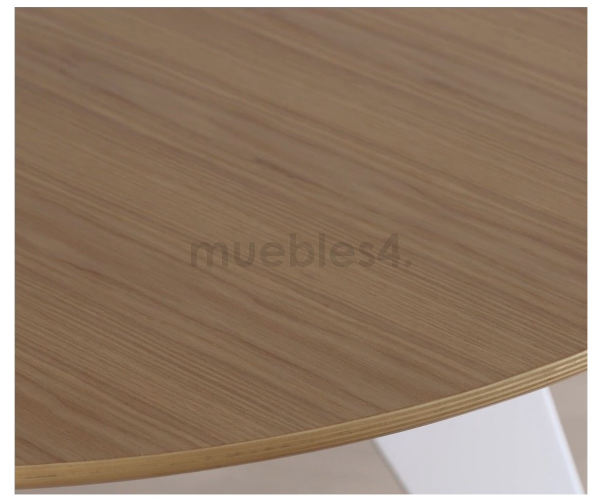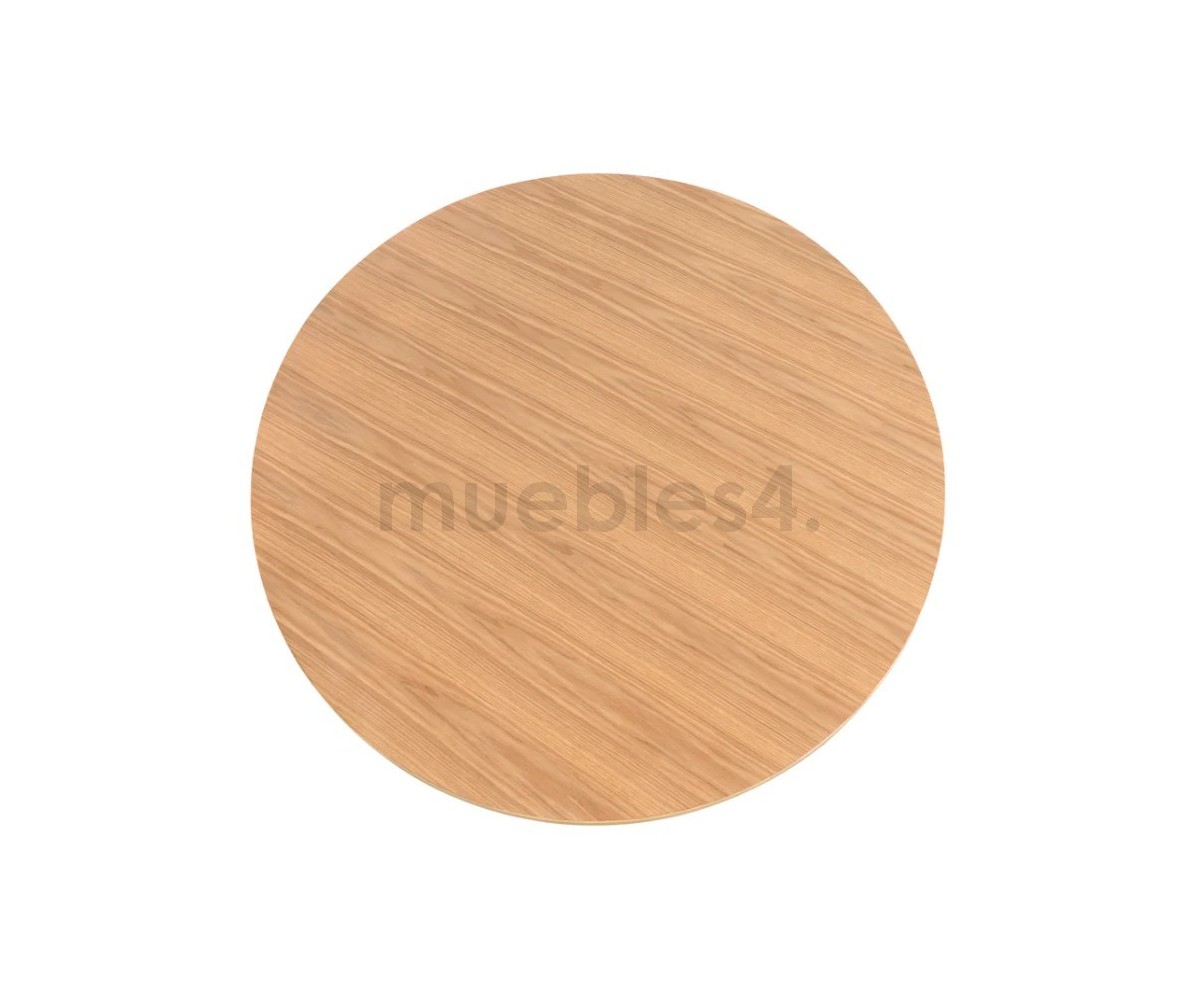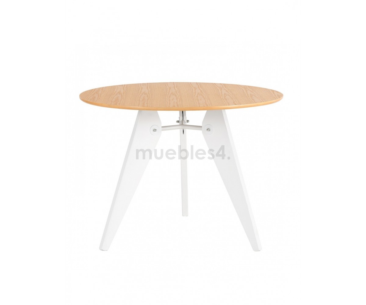 Mesa circular inspirada en un diseño de Jean Prouvé para Vitra. Las mesas modernas no deben ser necesariamente de acero y cristal y supone un cambio en el lenguaje formal de Prouvé, marcadamente arquitectónico, al emplear un material natural.