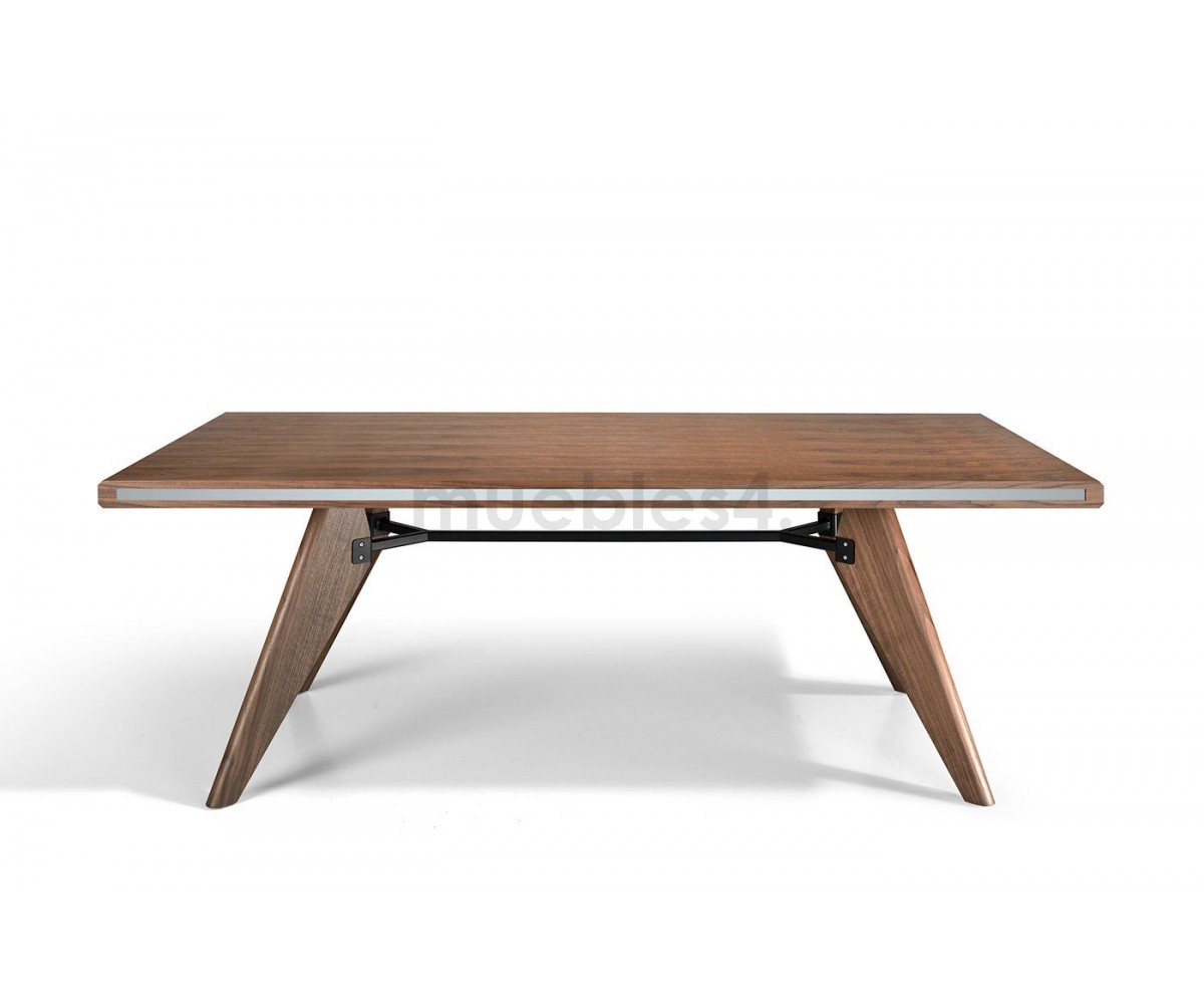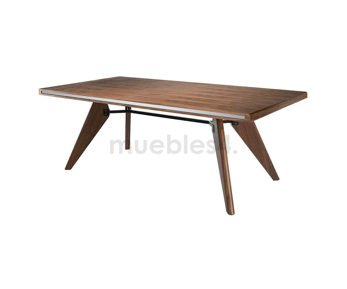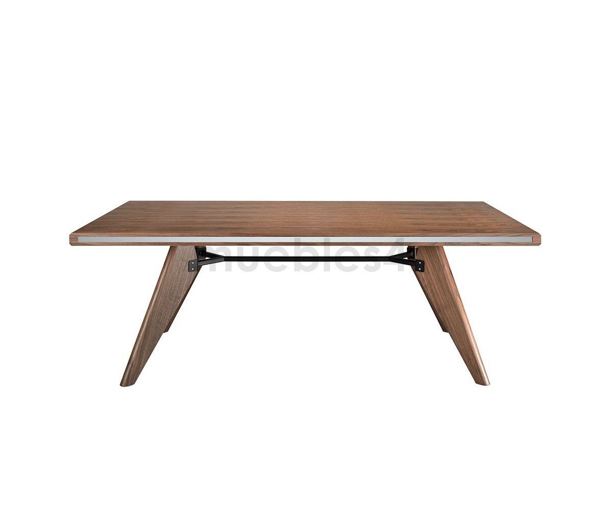 Mesa de comedor rectangular inspirada en un diseño de Jean Prouvé. Expresión del diseño revolucionario del siglo XX, combina experiencia e innovación con la creatividad del diseñador internacional. Gracias a sus líneas simples se puede considerar una mesa que se puede utilizar para crear diferentes estilos de muebles.