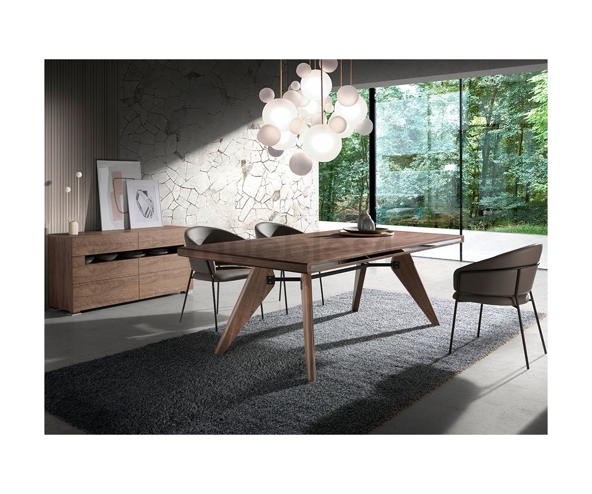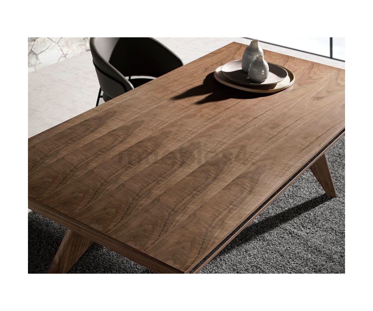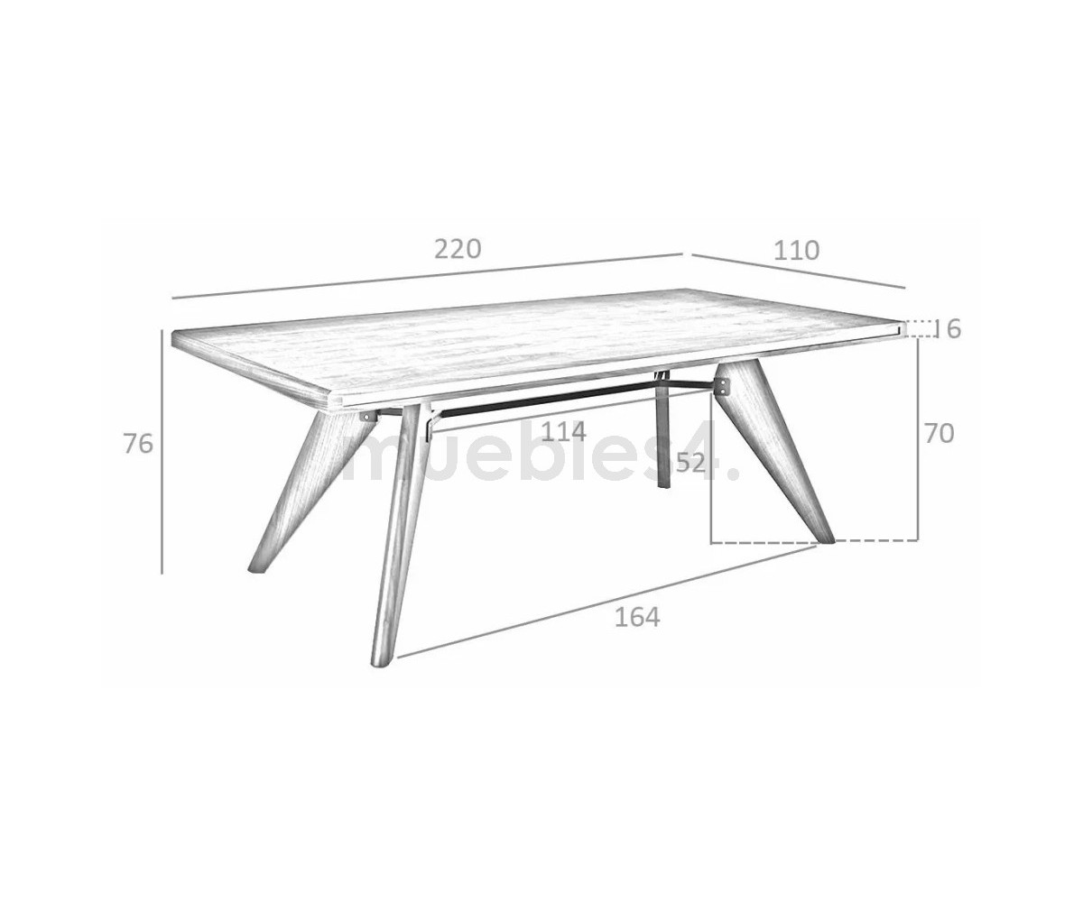 Mesa de comedor rectangular inspirada en un diseño de Jean Prouvé. Expresión del diseño revolucionario del siglo XX, combina experiencia e innovación con la creatividad del diseñador internacional. Gracias a sus líneas simples se puede considerar una mesa que se puede utilizar para crear diferentes estilos de muebles.