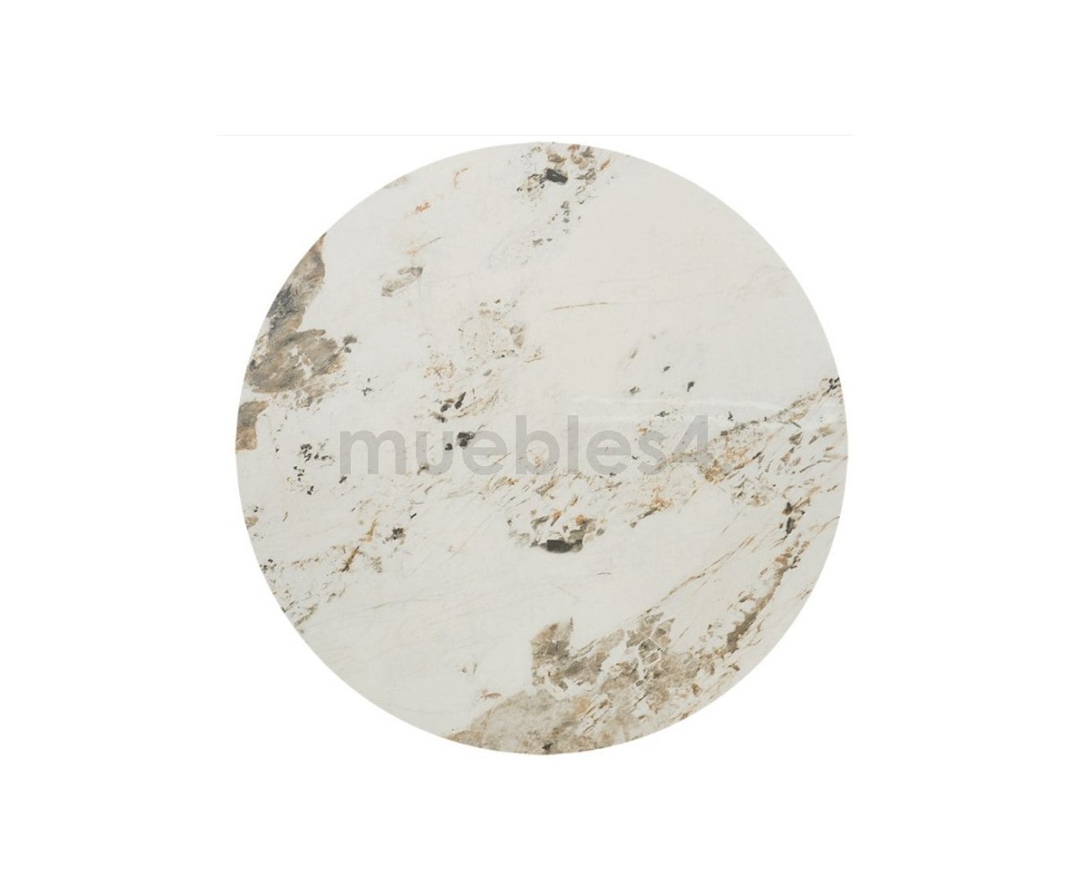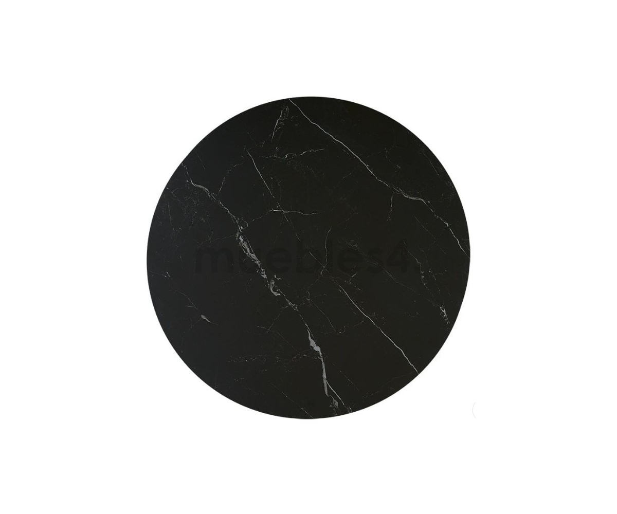 Mesa circular inspirada en Marc Krusin. Dos volúmenes logran un equilibrio perfecto de uno sobre el otro. Dos conos de diferentes formas se encuentran en sus vértices opuestos, desafiando la gravedad en un equilibrio aparentemente inestable.