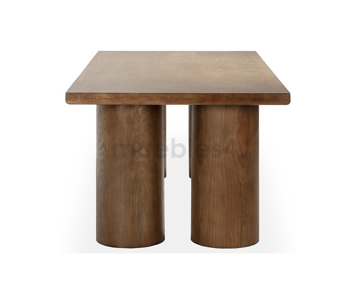 Mesa de comedor inspirada en un diseño de Christian Woo. La serie Column es una colección de muebles monumentales diseñados alrededor de una columna de soporte de madera maciza torneada de gran diámetro y planos elaborados con madera maciza. La serie Column consta de 2 mesas de comedor, rectangular y circular.