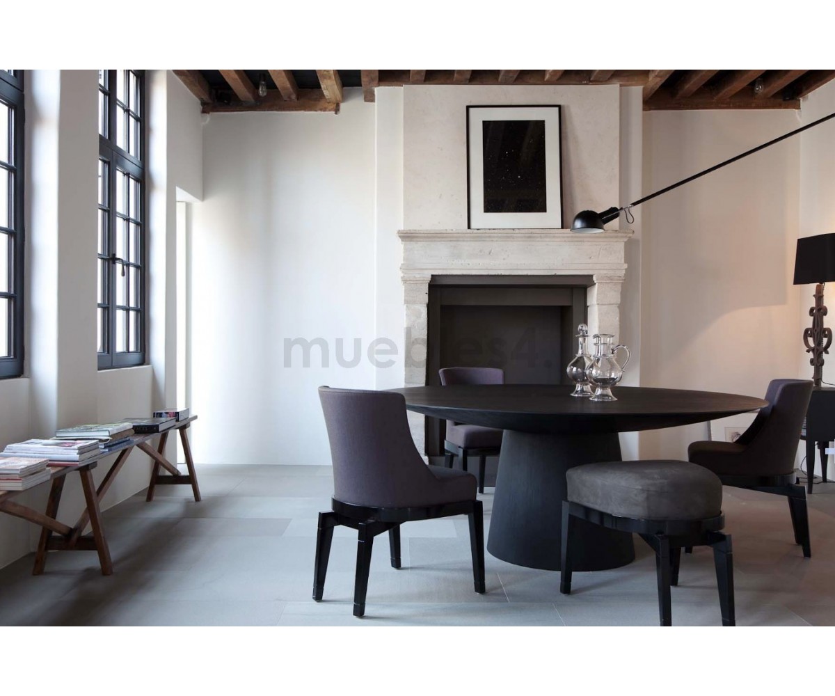 Mesa ovalada inspirada en un diseño de Ferruccio Laviani para Emmemobili. Mesa de comedor fija Emmemobili Ufo con Lazy Susan incrustada de Ferruccio Laviani, años 2000.