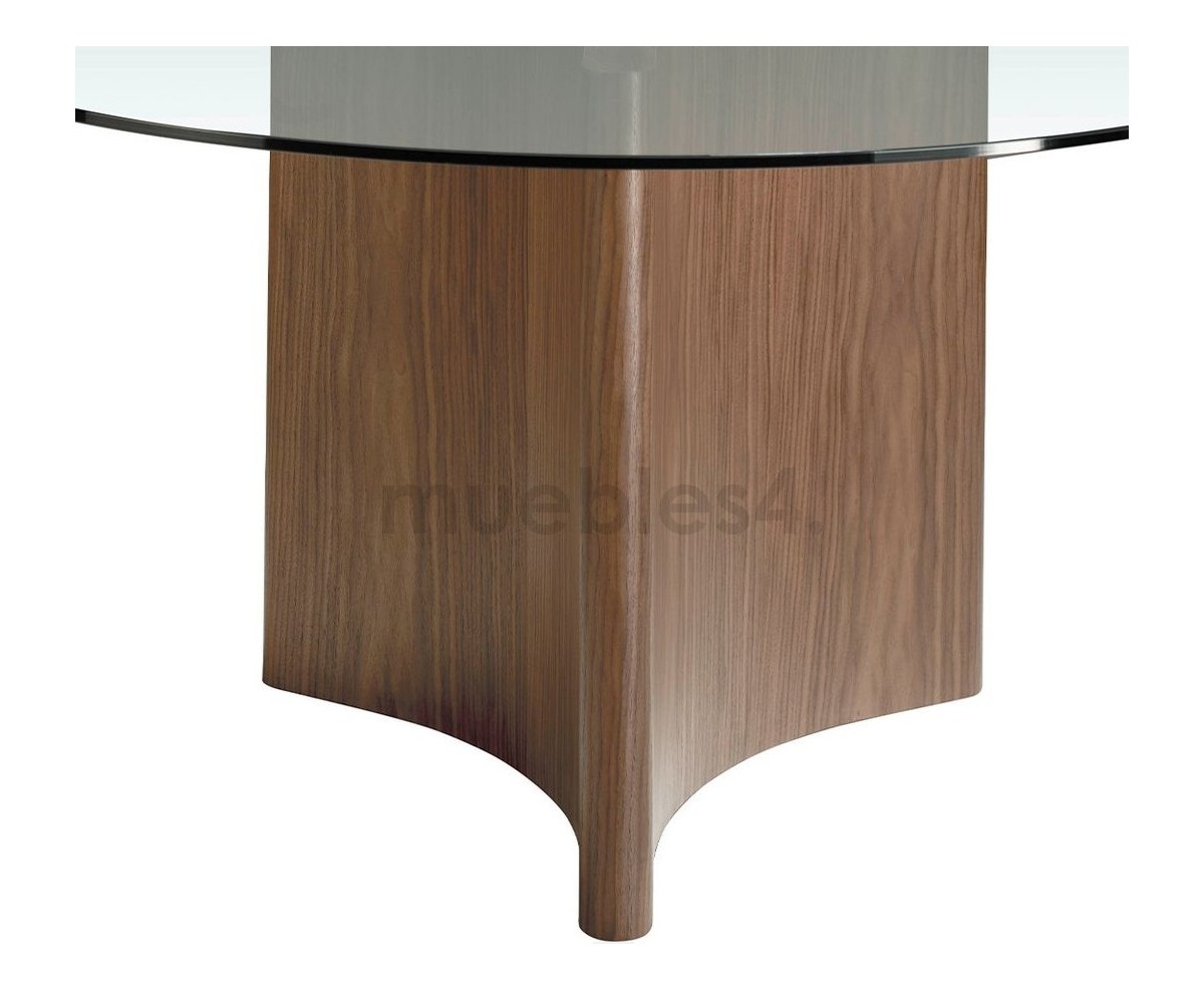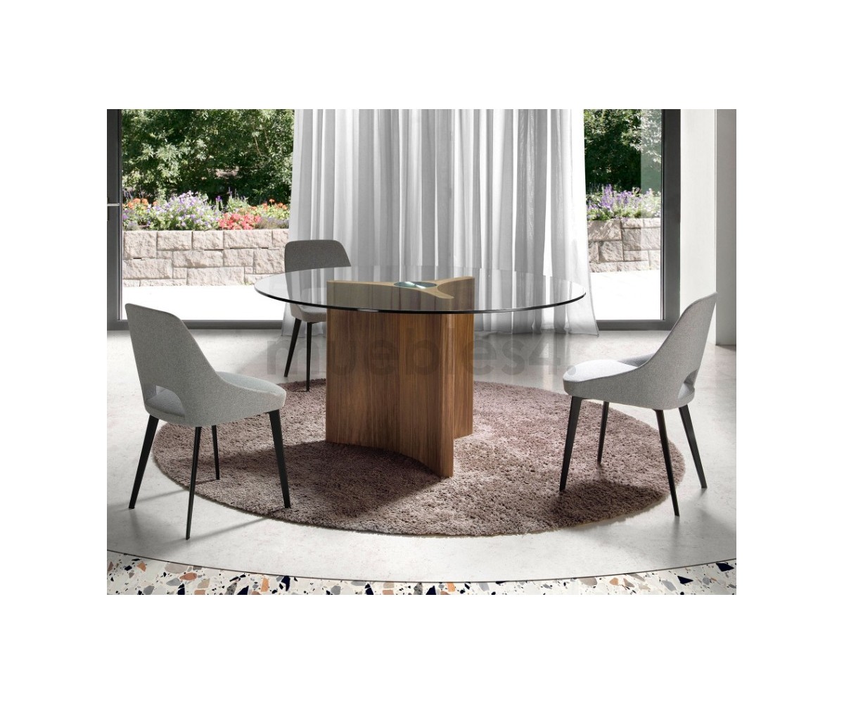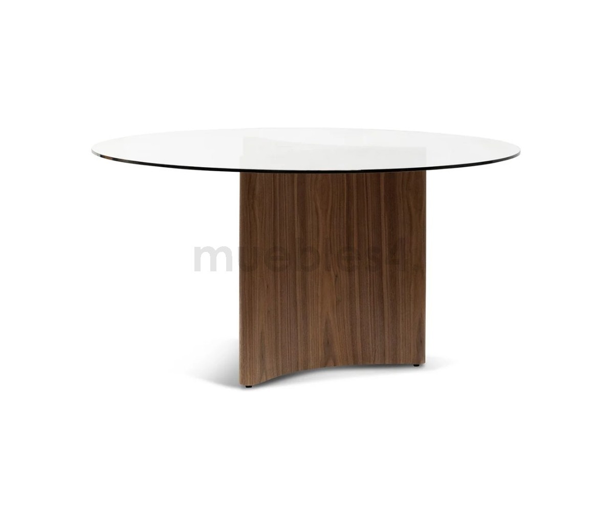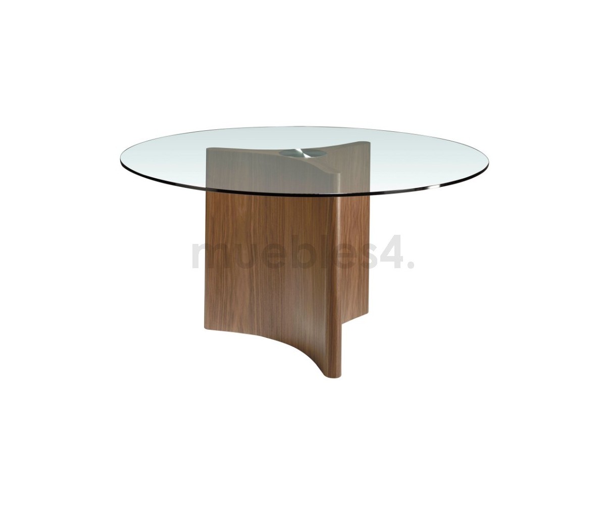 Mesa de comedor circular, inspirada en un diseño de Diseñado Oscar Buratti y Gabriele Buratti. Ofrece un ambiente acogedor y agradable con su diseño único. Rematada con una superficie de vidrio templado transparente, muestra una sensibilidad moderna que permite que su base brille. La base cuenta con una forma distintiva que capta la atención y agrega un toque artístico al diseño general. Con su combinación perfecta de vidrio y madera, la mesa de comedor crea una mezcla armoniosa de materiales, lo que la convierte en una pieza central cautivadora que fomenta reuniones agradables y fomenta un ambiente acogedor en cualquier espacio de comedor.