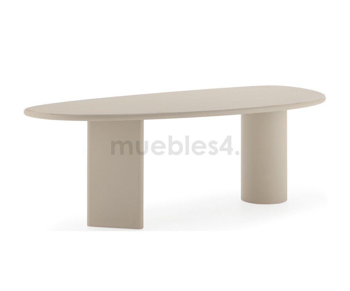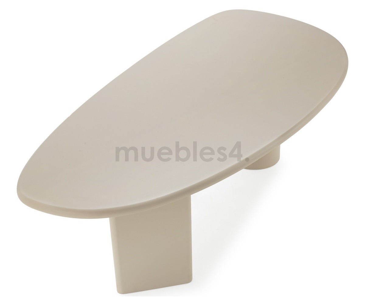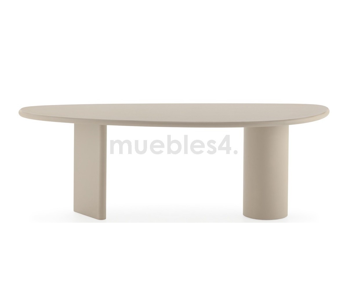 Mesa de comedor inspirada en un diseño de Isabelle Beaumont. Mesa rediseñada y fabricada por Vicent Van Duysen, diseño contemporáneo de formas orgánicas y redondeadas con materiales ecológicos. Representa la unión perfecta entre simplicidad, funcionalidad y belleza. Prioridad de calidez minimalista con líneas puras, creando una atmósfera que transmite calma, sin renunciar a la funcionalidad, "El diseño debe ser sereno, funcional y táctil" (Vicent Van Duysen).
