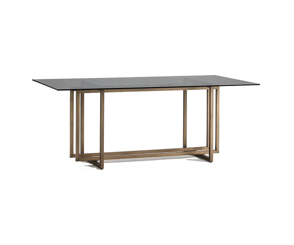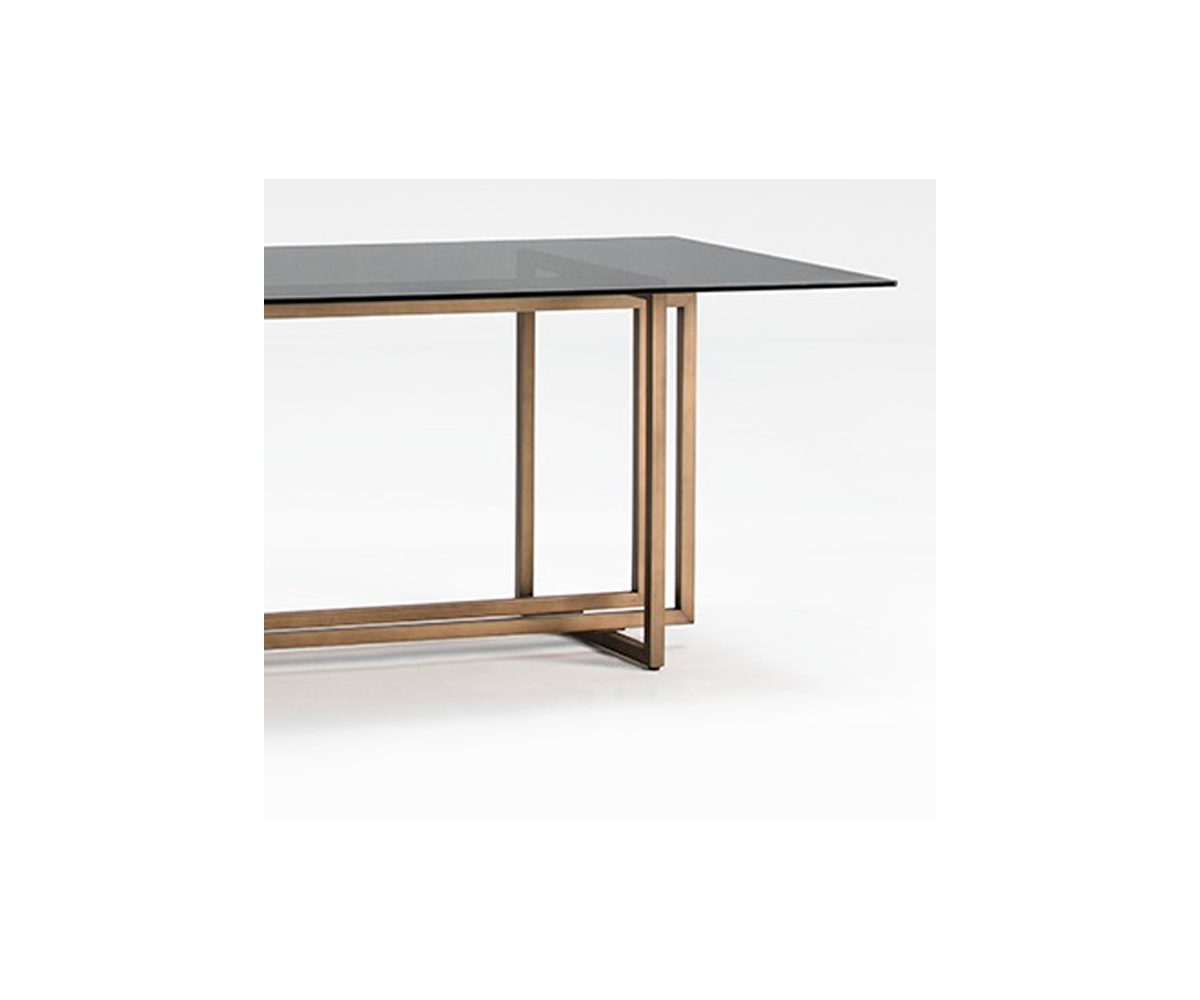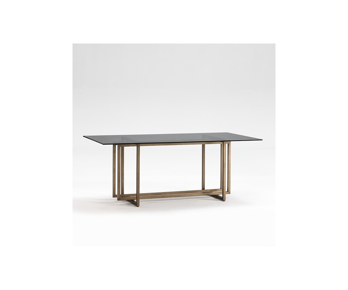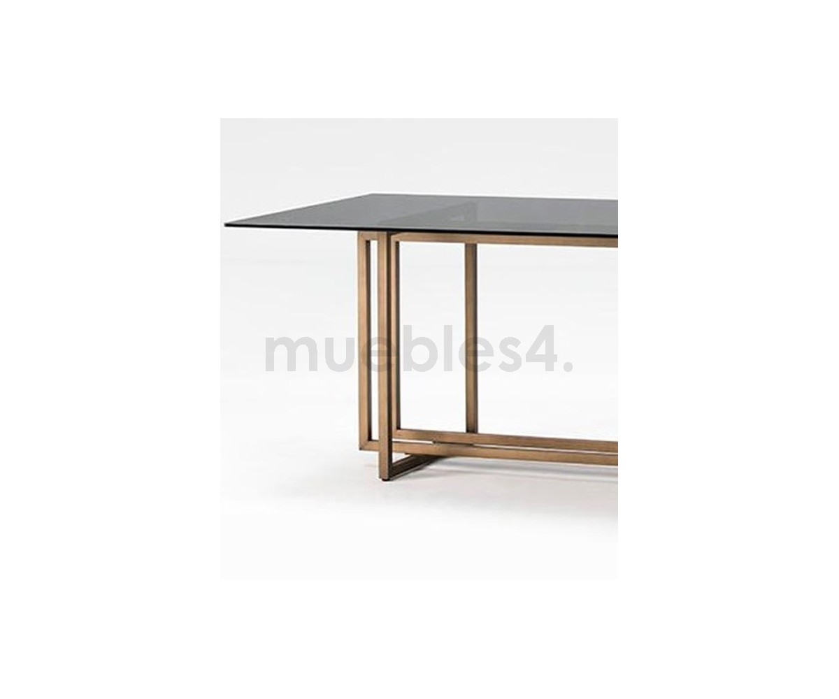 Mesa de comedor rectangular inspirada en un diseño de Ferruccio Laviani Armazón fabricado en acero rectangular terminación bronce, tapa de cristal templado ahumado de 12mm, de grosor. Réplica exacta con materiales originales de máxima calidad.