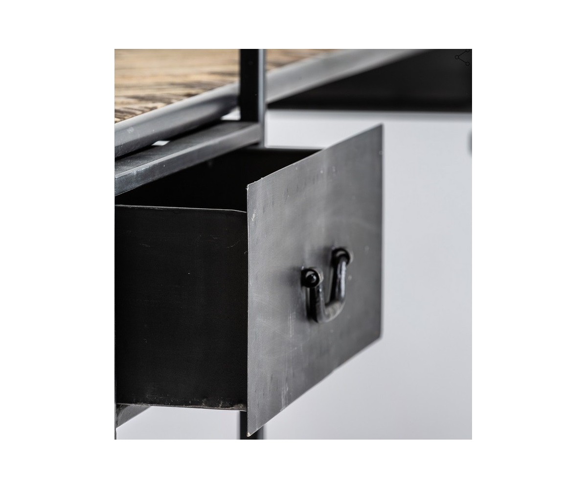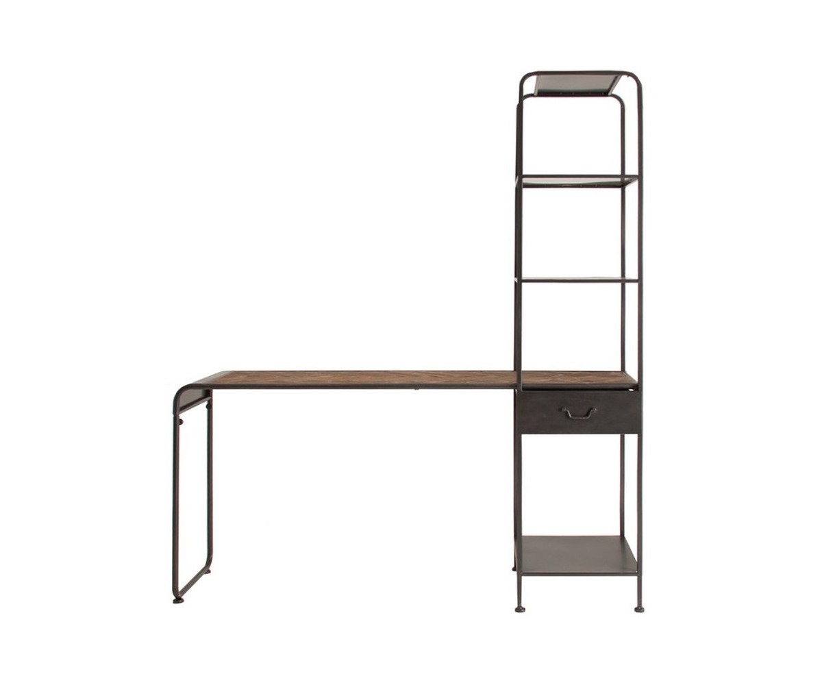 Escritorio inspirado en un diseño de Marcel Breuer. Fabricado en hierro, combinado con madera de abeto, la libreriia puede ir tando a la parte derecha como izquierda de la mesa. Producto desmontable. Réplica exacta con materiales originales de máxima calidad.