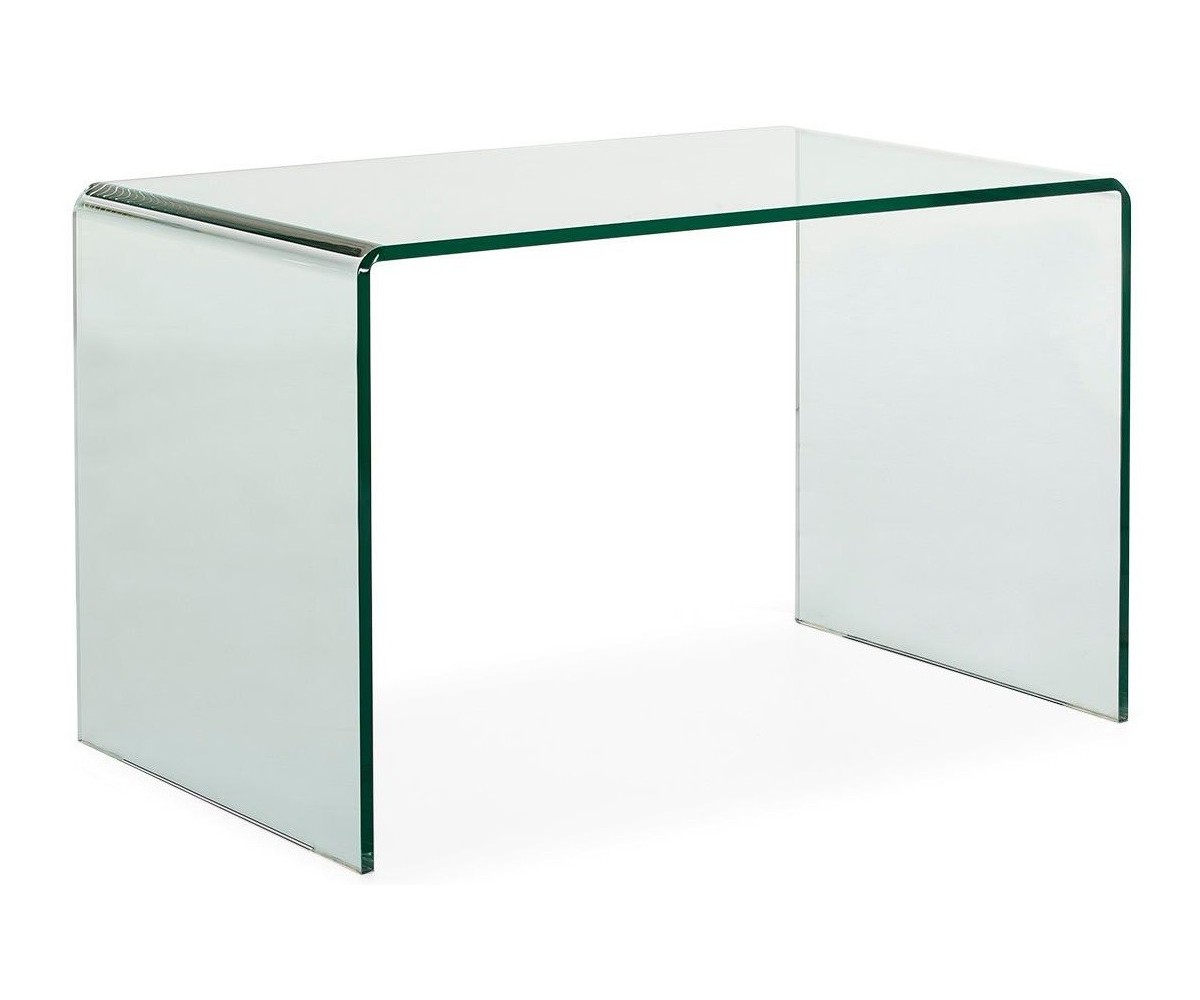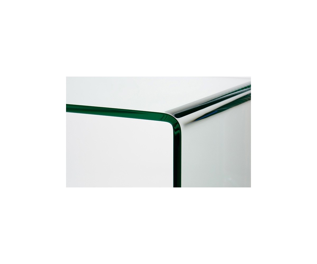 Mesa oficina rectangular inspirada en un diseño de Peter Draenert. Fabricada en una sola pieza en cristal curvado y biselada. Grosor del cristal 19mm. También disponible en mesa de centro, escritorio y axuliar. Réplica exacta con materiales originales de máxima calidad.
