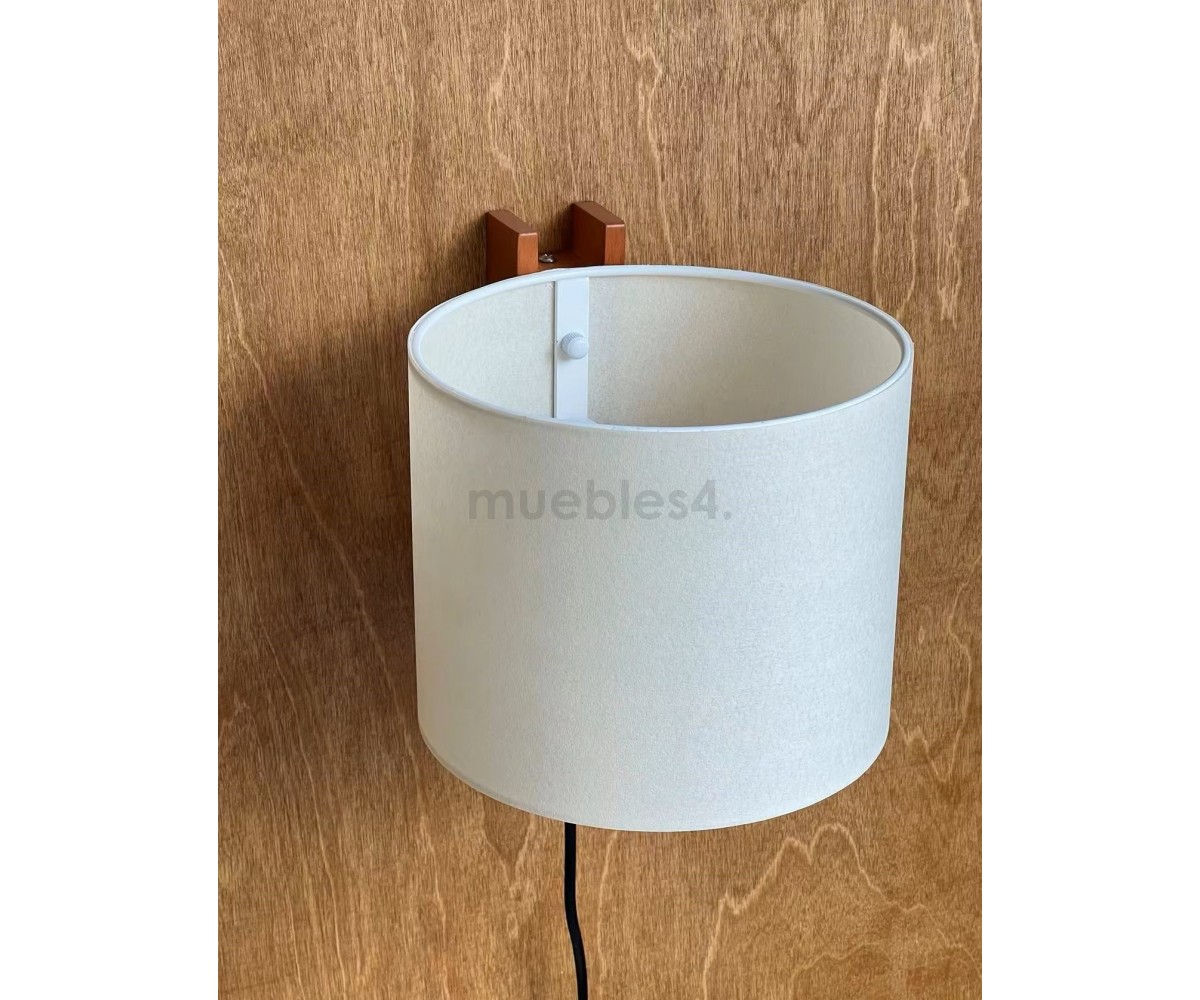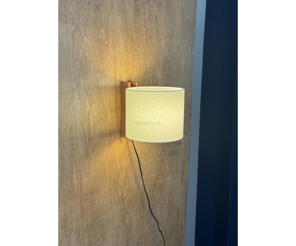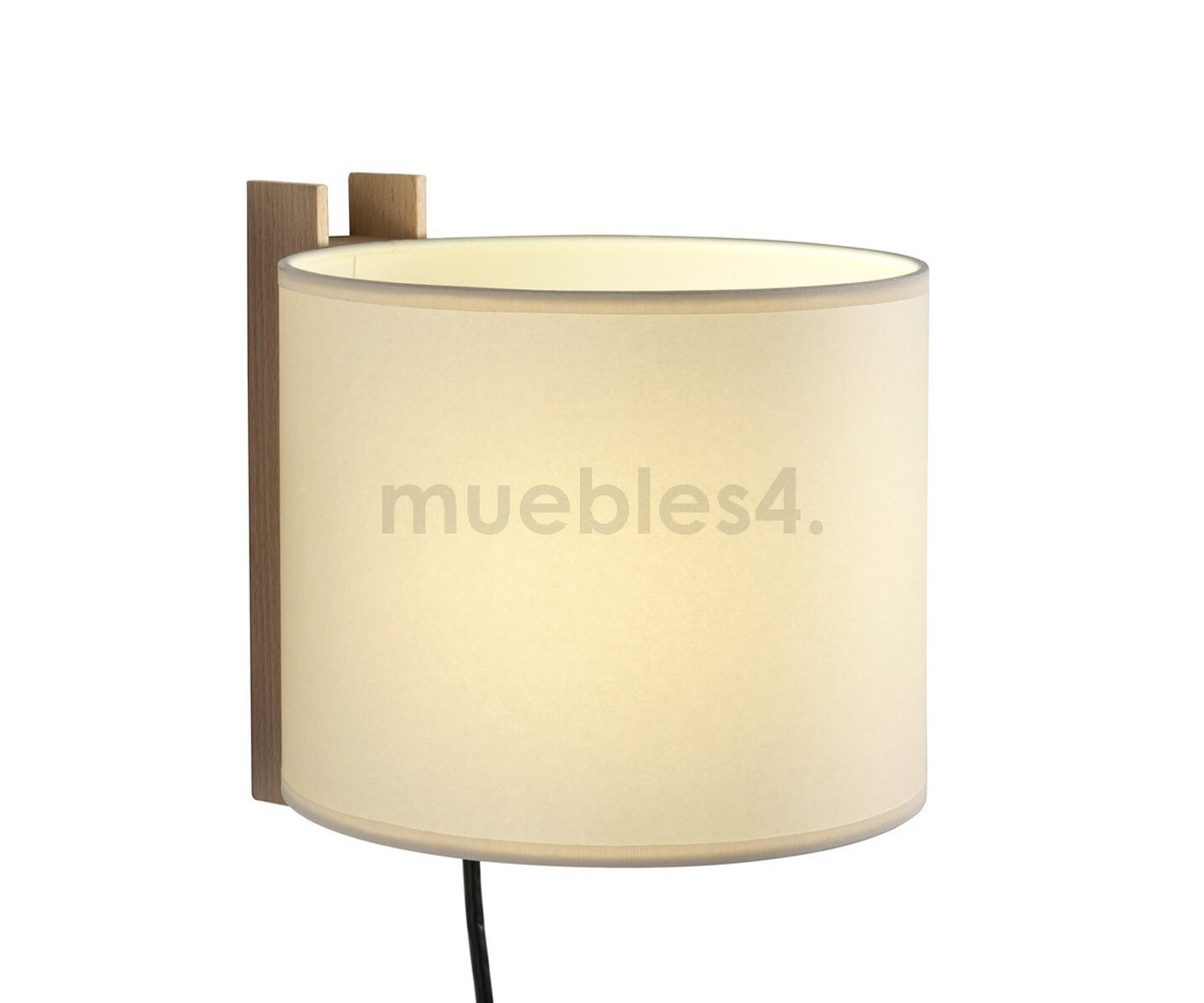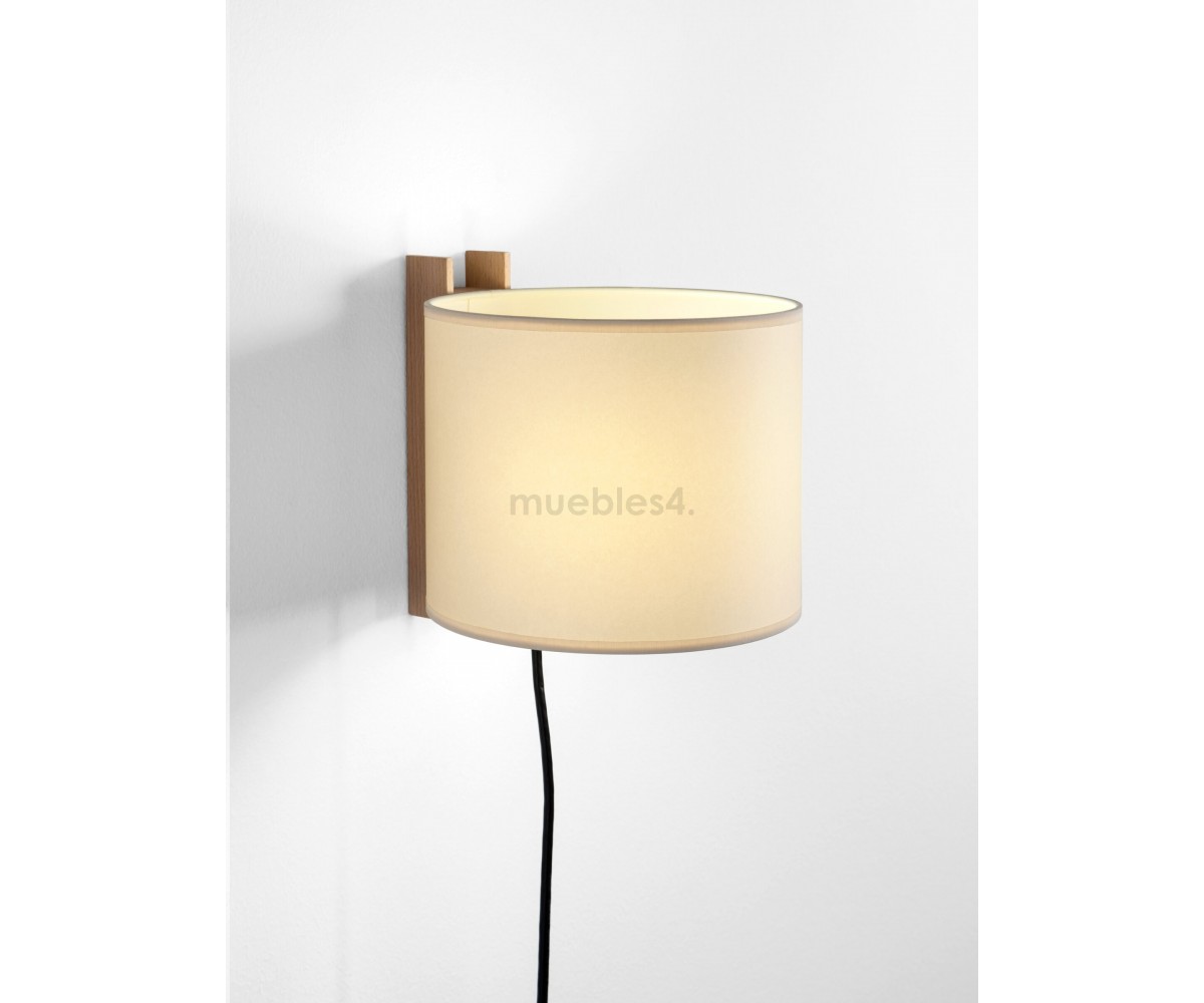 Lámpara de pared inspirada en un diseño de Miguel Milá. Quizás sea la obra más aclamada de uno de los principales pioneros del diseño industrial en España. TMM es la versión más casual de la familia TM. Es una exquisita demostración de serenidad formal y eficacia funcional. Tanto largo como corto, consisten en una sencilla canaleta de madera donde se circunscribe parcialmente la pantalla. El aplique corto puede solicitarse con el cable exterior, que actúa como tirador del interruptor, o bien con conexión directa a la pared.