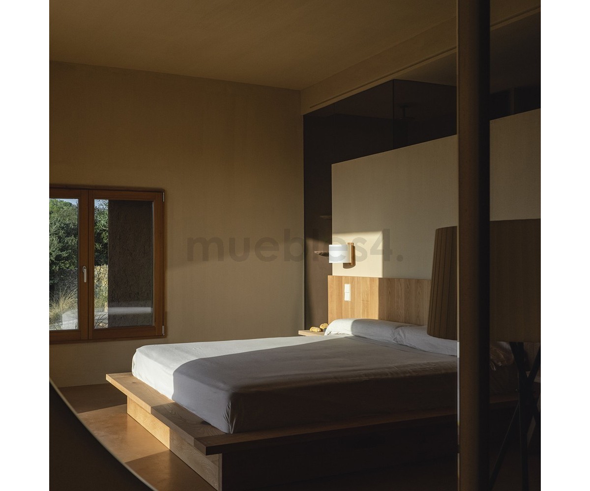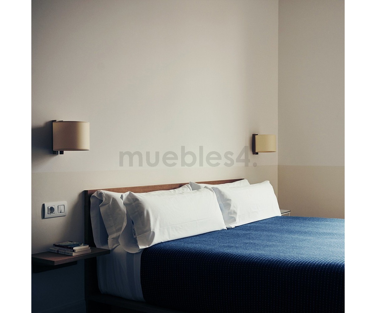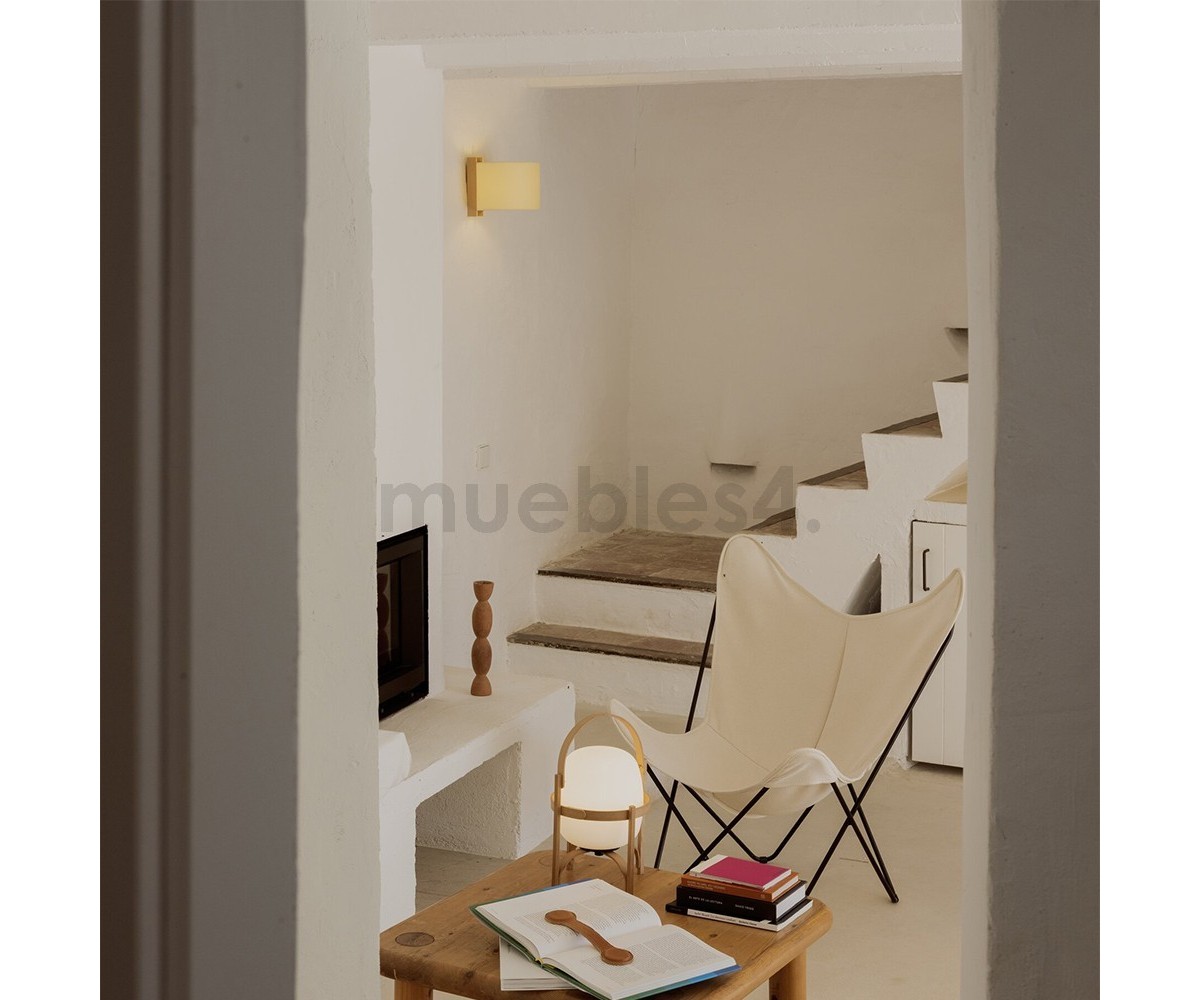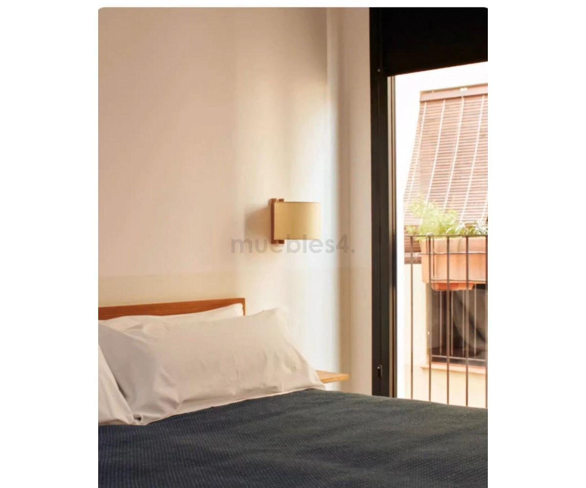 Lámpara de pared inspirada en un diseño de Miguel Milá. Quizás sea la obra más aclamada de uno de los principales pioneros del diseño industrial en España. TMM es la versión más casual de la familia TM. Es una exquisita demostración de serenidad formal y eficacia funcional. Tanto largo como corto, consisten en una sencilla canaleta de madera donde se circunscribe parcialmente la pantalla. El aplique corto puede solicitarse con el cable exterior, que actúa como tirador del interruptor, o bien con conexión directa a la pared.
