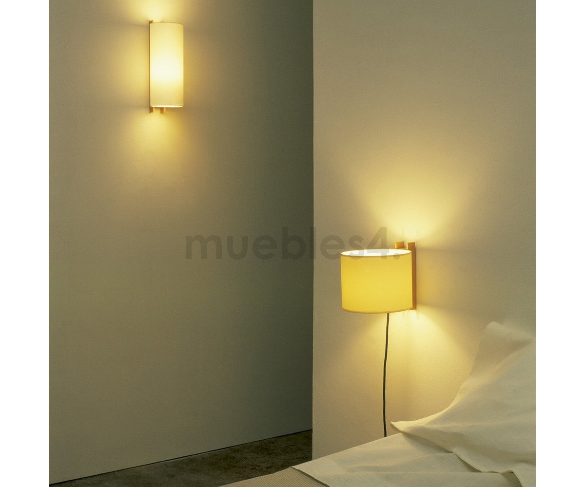 Lámpara de pared inspirada en un diseño de Miguel Milá. Quizás sea la obra más aclamada de uno de los principales pioneros del diseño industrial en España. TMM es la versión más casual de la familia TM. Es una exquisita demostración de serenidad formal y eficacia funcional. Tanto largo como corto, consisten en una sencilla canaleta de madera donde se circunscribe parcialmente la pantalla. El aplique corto puede solicitarse con el cable exterior, que actúa como tirador del interruptor, o bien con conexión directa a la pared.