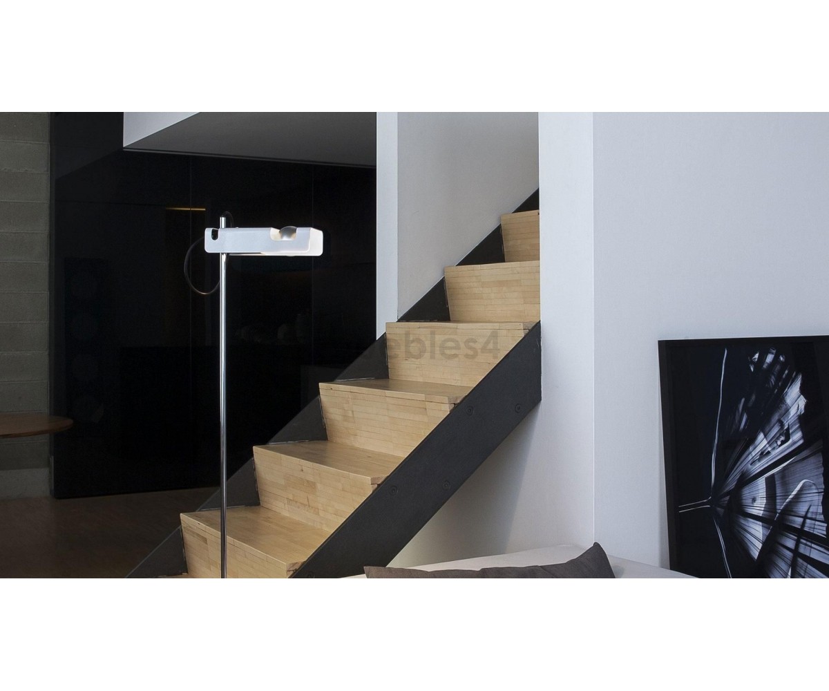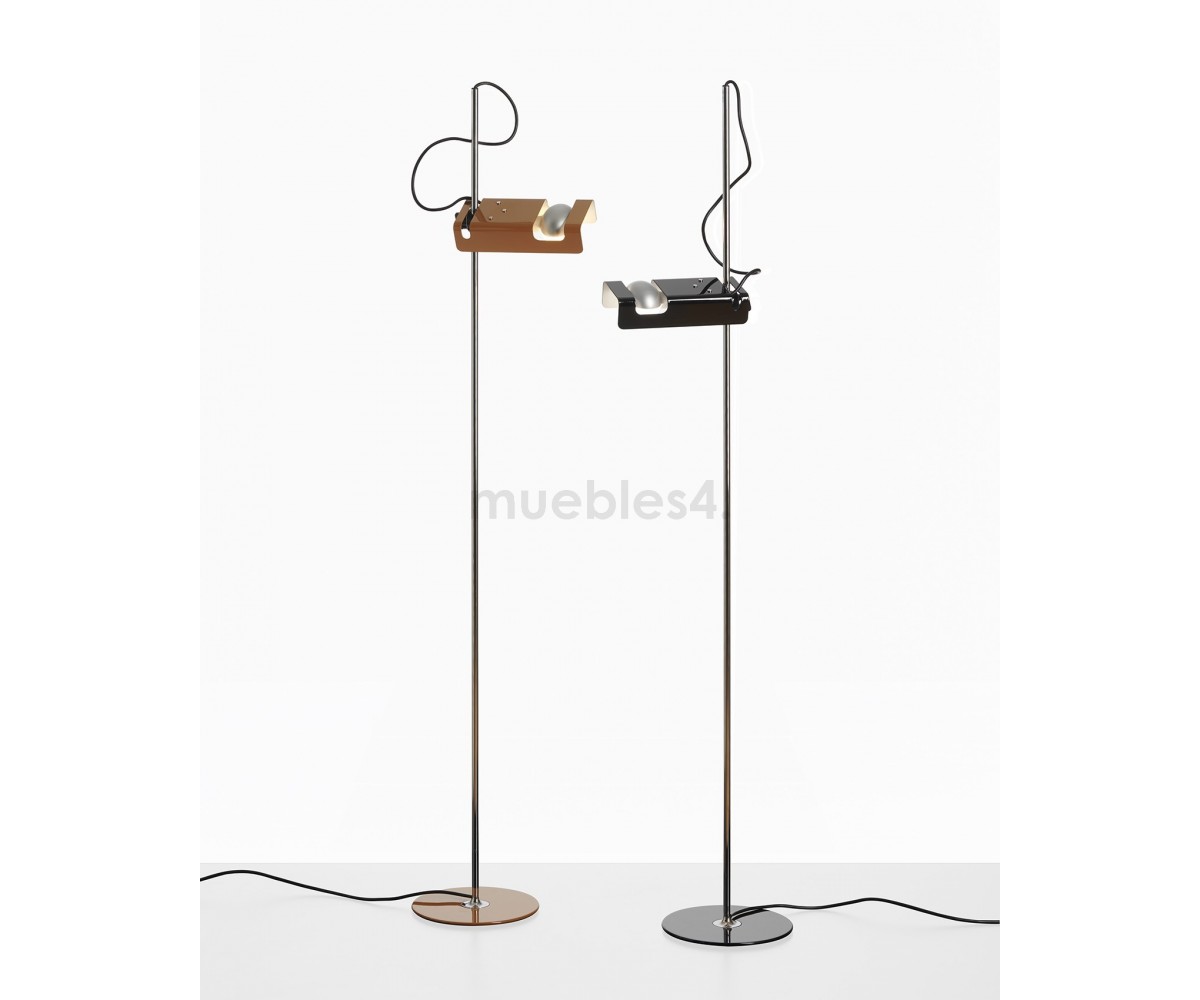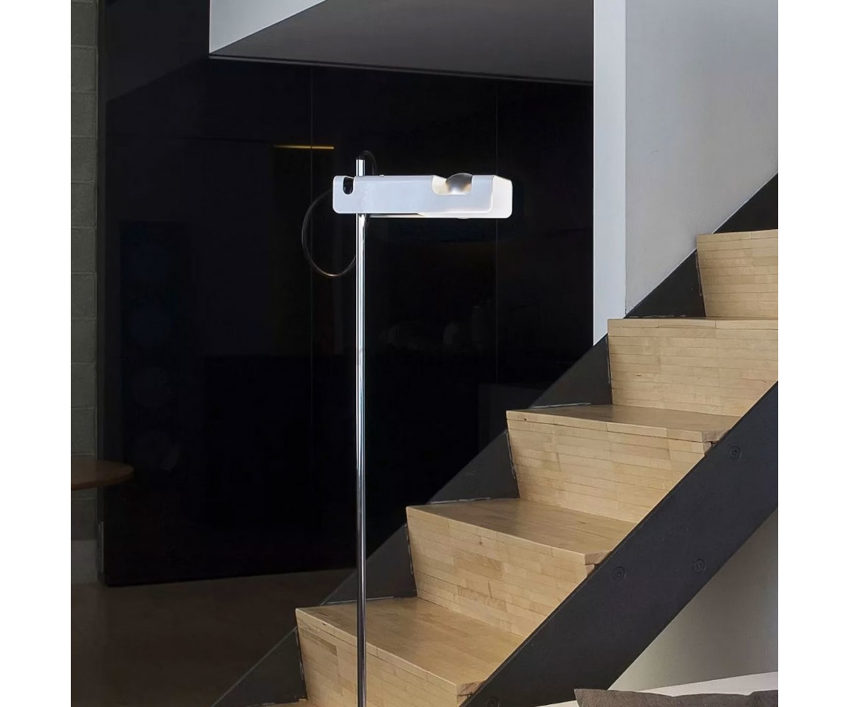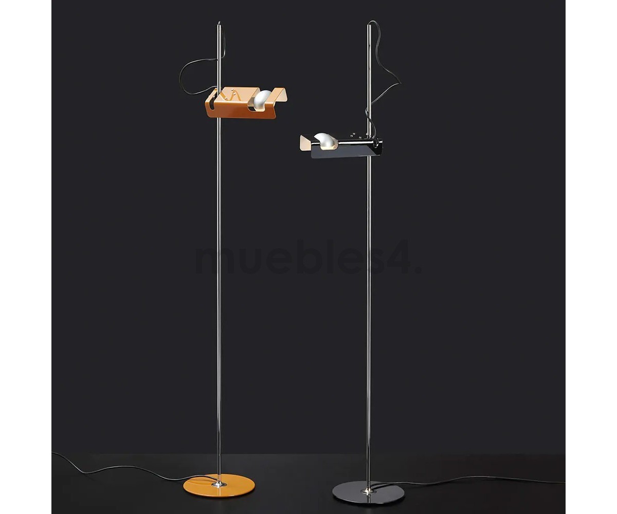 Lámpara de suelo inspirada en un diseño de Joe Colombo para Oluce. Lámpara con un diseño audaz y magnífico con una excelente artesanía. Es uno de los diseños más premiados de Colombo. Ganadora del premio Spider Compasso d'Oro en 1967, esta creación de 1965 sigue deleitando a los consumidores hoy en día. Proporciona una iluminación dirigida con su foco de luz horizontal.