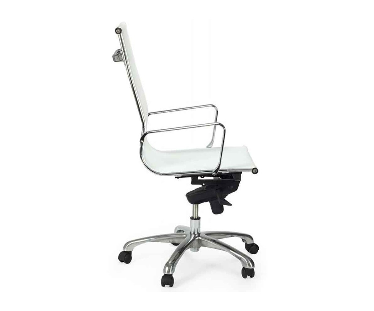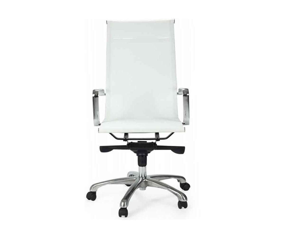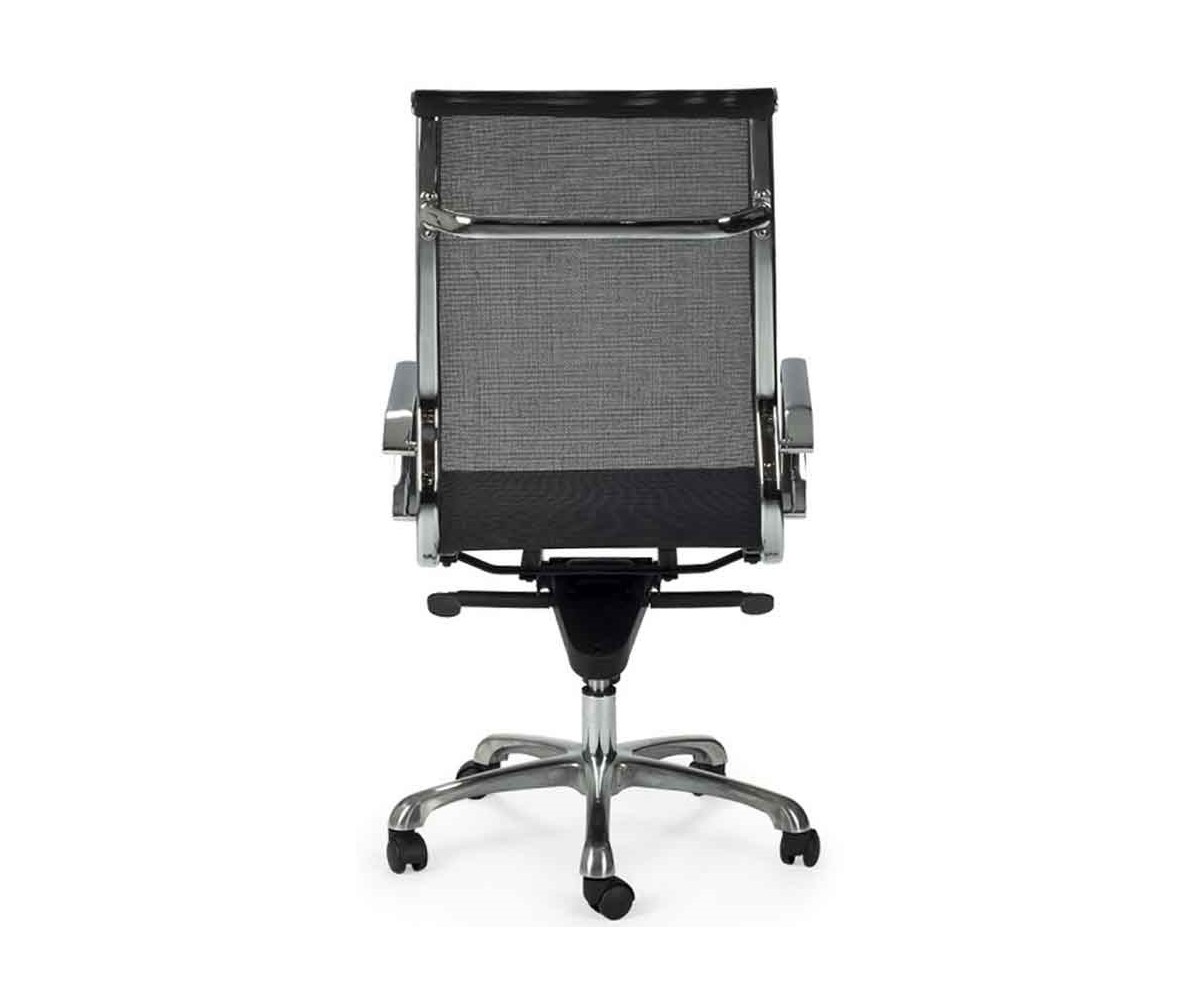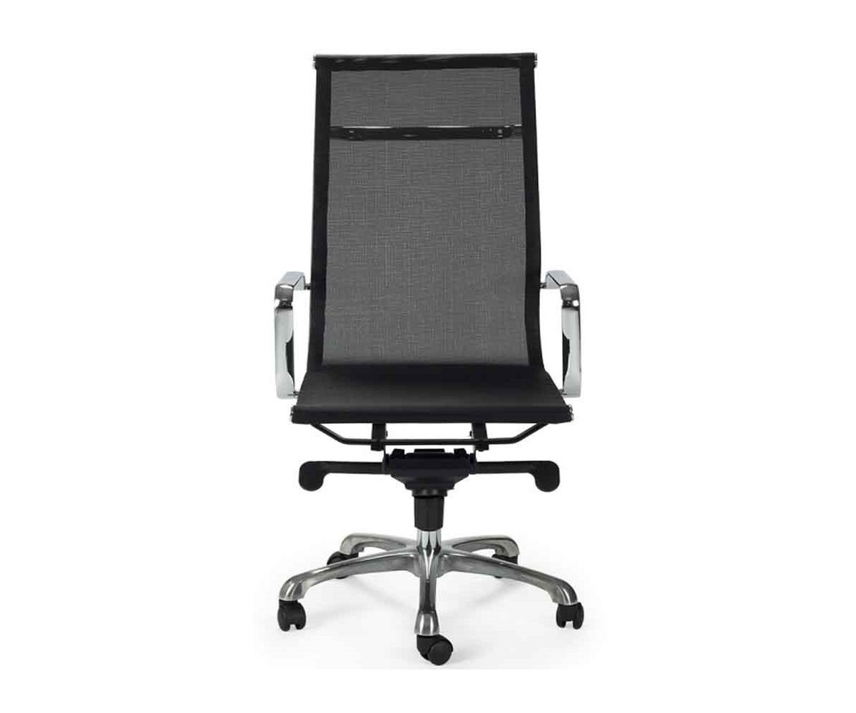 Silla de oficina giratoria inspirada en un diseño de Charles & Ray Eames. Armazón fabricado en acero terminación cromado, altura y inclinación del respaldo regulable mediante bomba de aire, carcasa con respaldo alto, asiento y respaldo en malla color negro o blanco de gran dureza y durabilidad. Réplica exacta con materiales originales de máxima calidad.