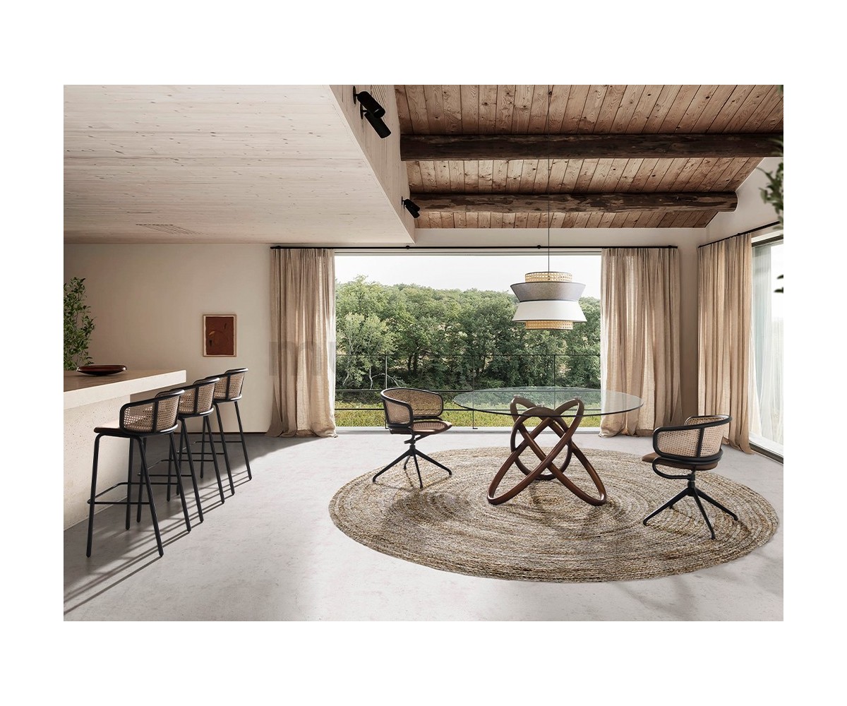 Silla de trabajo inspirada en un diseño de Yoav Avinoam y Gil Sheffi. La silla Franz juega con lo experimental y lo tradicional, combinando elementos y materiales que nos hacen referencia a mobiliario como la icónica Thonet. Primera colaboración entre Tekhne y Producks, fue presentada durante la Feria de Diseño en Milán, en el añó 2015.