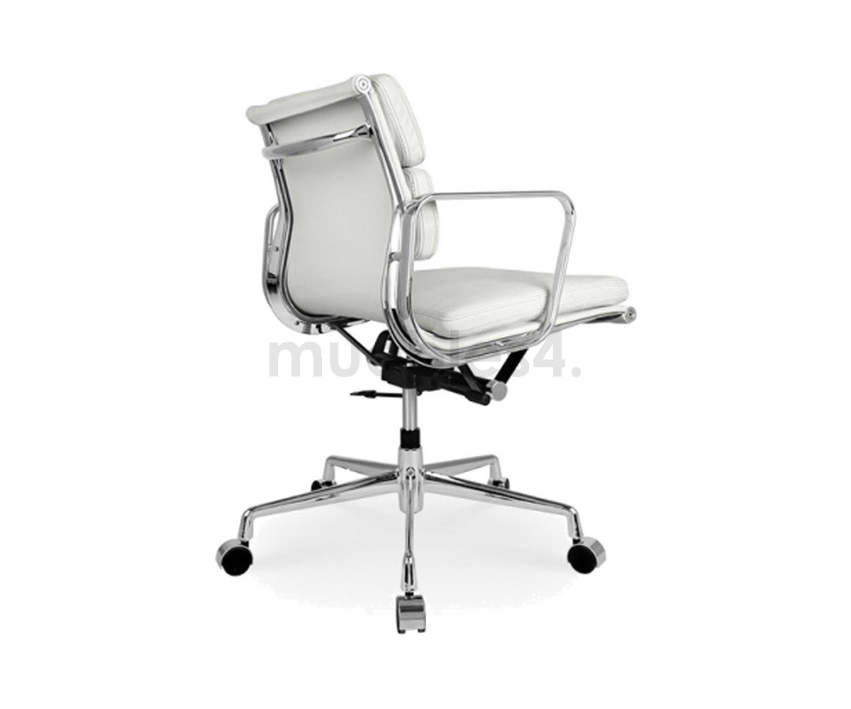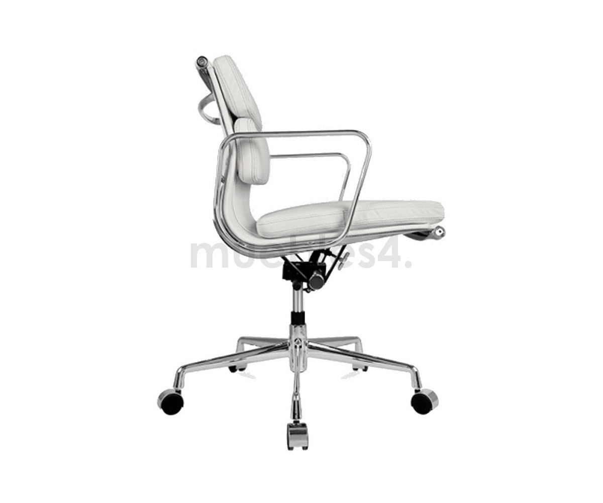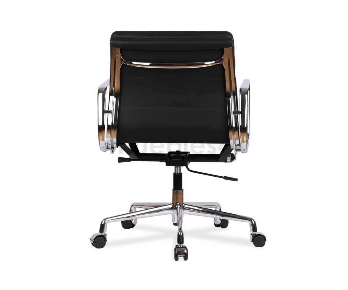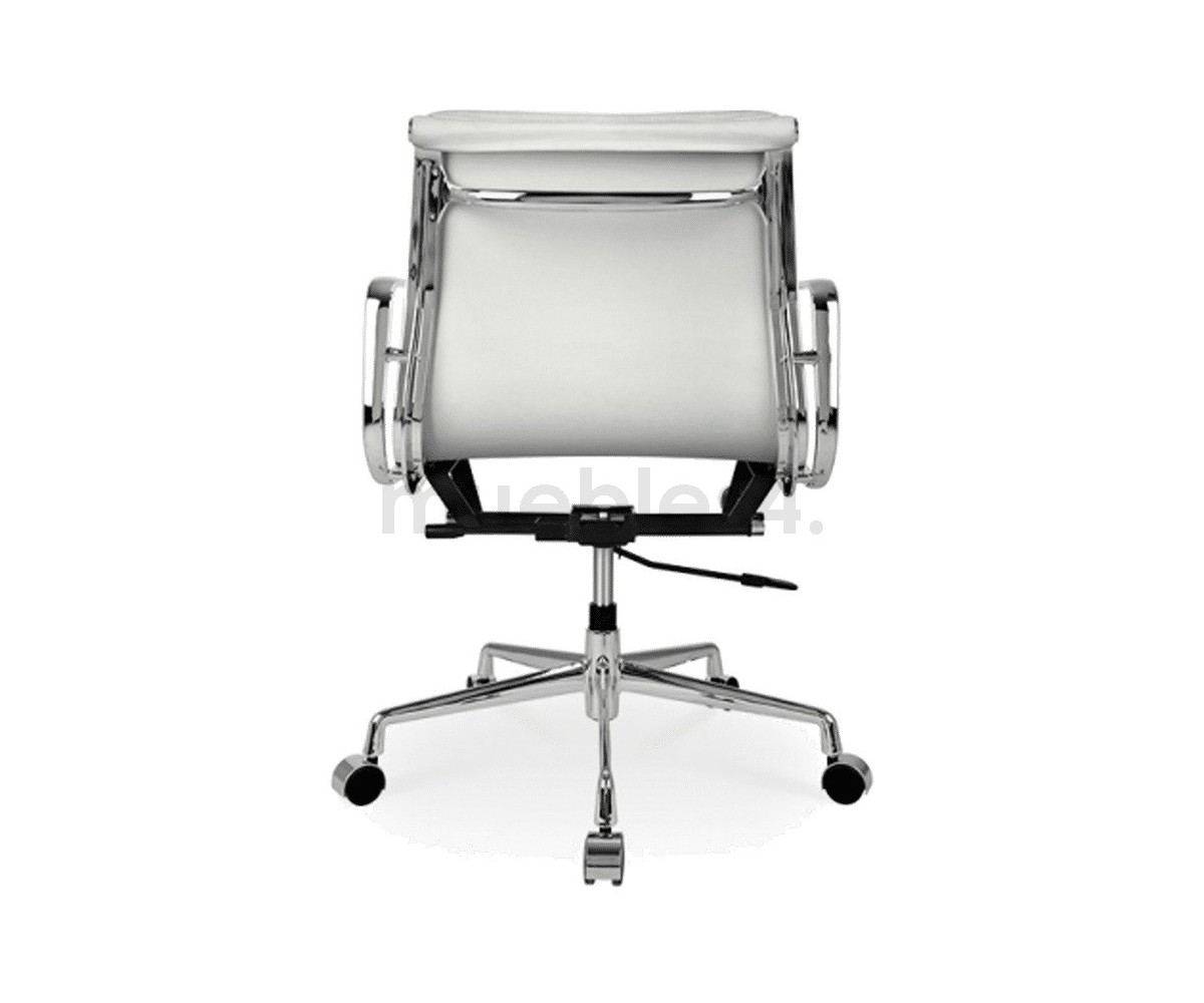 Silla de oficina inspirada en un diseño de Charles & Ray Eames. Por su forma y construcción se asemeja a la Aluminium Chair. Extraordinario confort, al combinar el mecanismo de inclinación, que puede ajustarse al peso del usuario, y al suave acolchado. Su diseño elegante, simple y cómodo hace que sea un producto perfecto para oficinas, despachos, estudios.