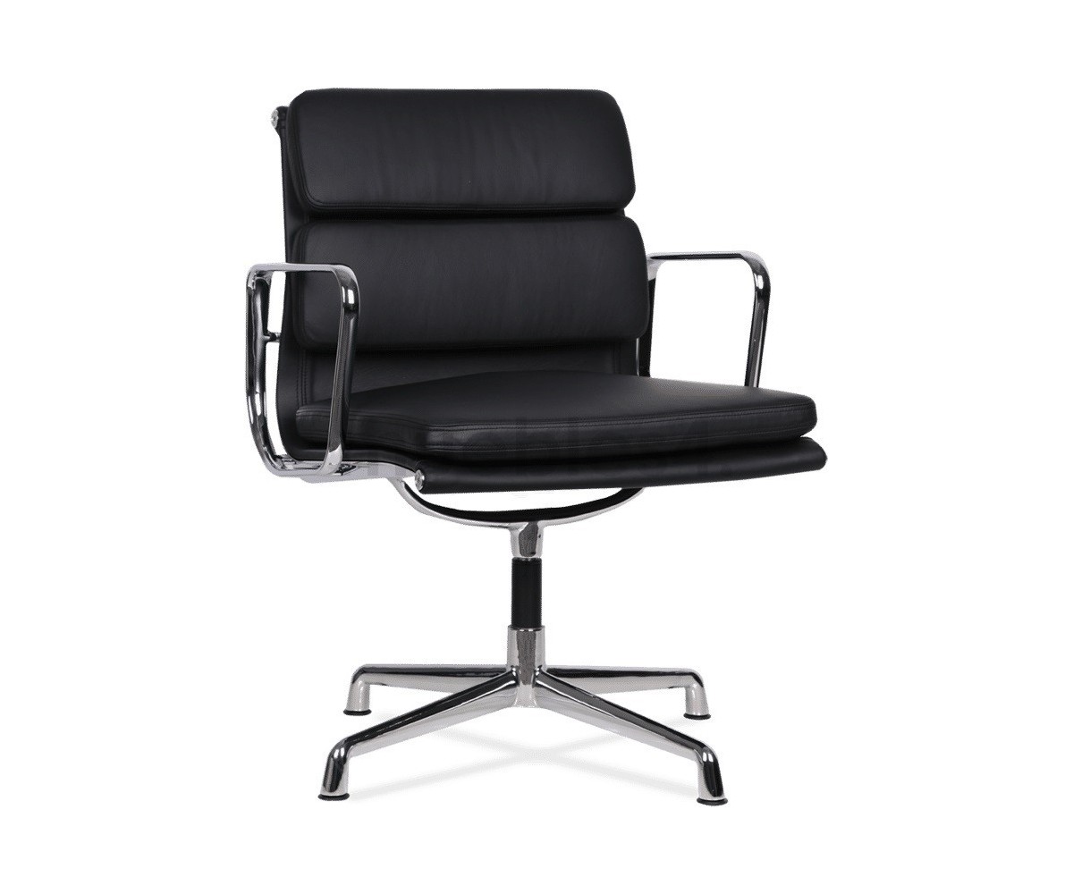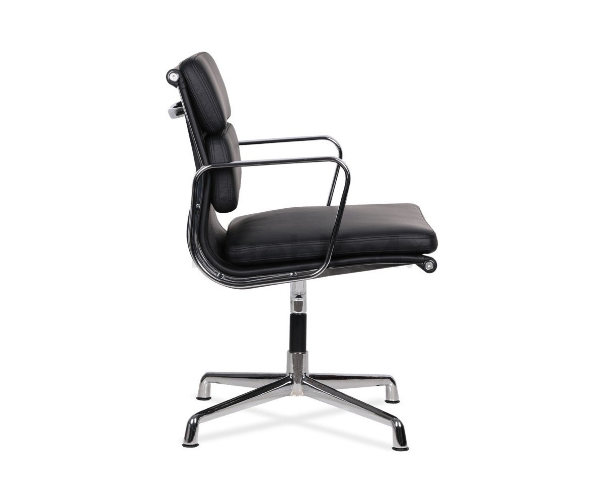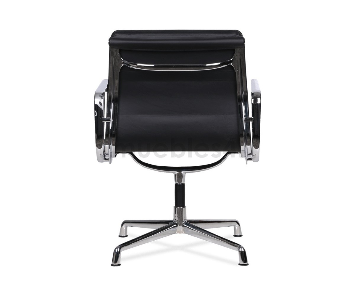 Silla de oficina inspirada en un diseño de Charles & Ray Eames. Por su forma y construcción se asemeja a la Aluminium Chair. Extraordinario confort, al combinar el mecanismo de inclinación, que puede ajustarse al peso del usuario, y al suave acolchado. Su diseño elegante, simple y cómodo hace que sea un producto perfecto para oficinas, despachos, estudios.