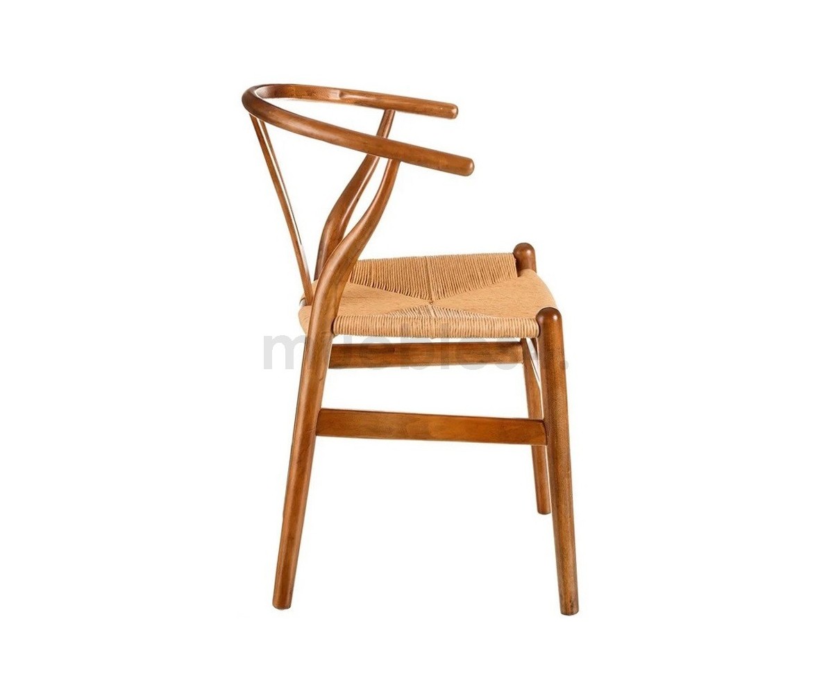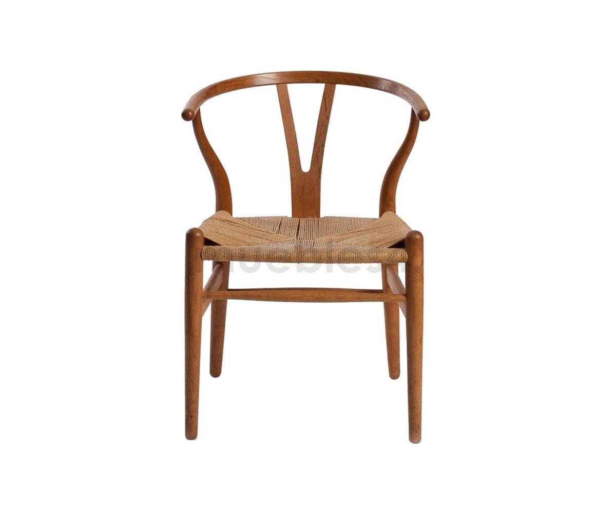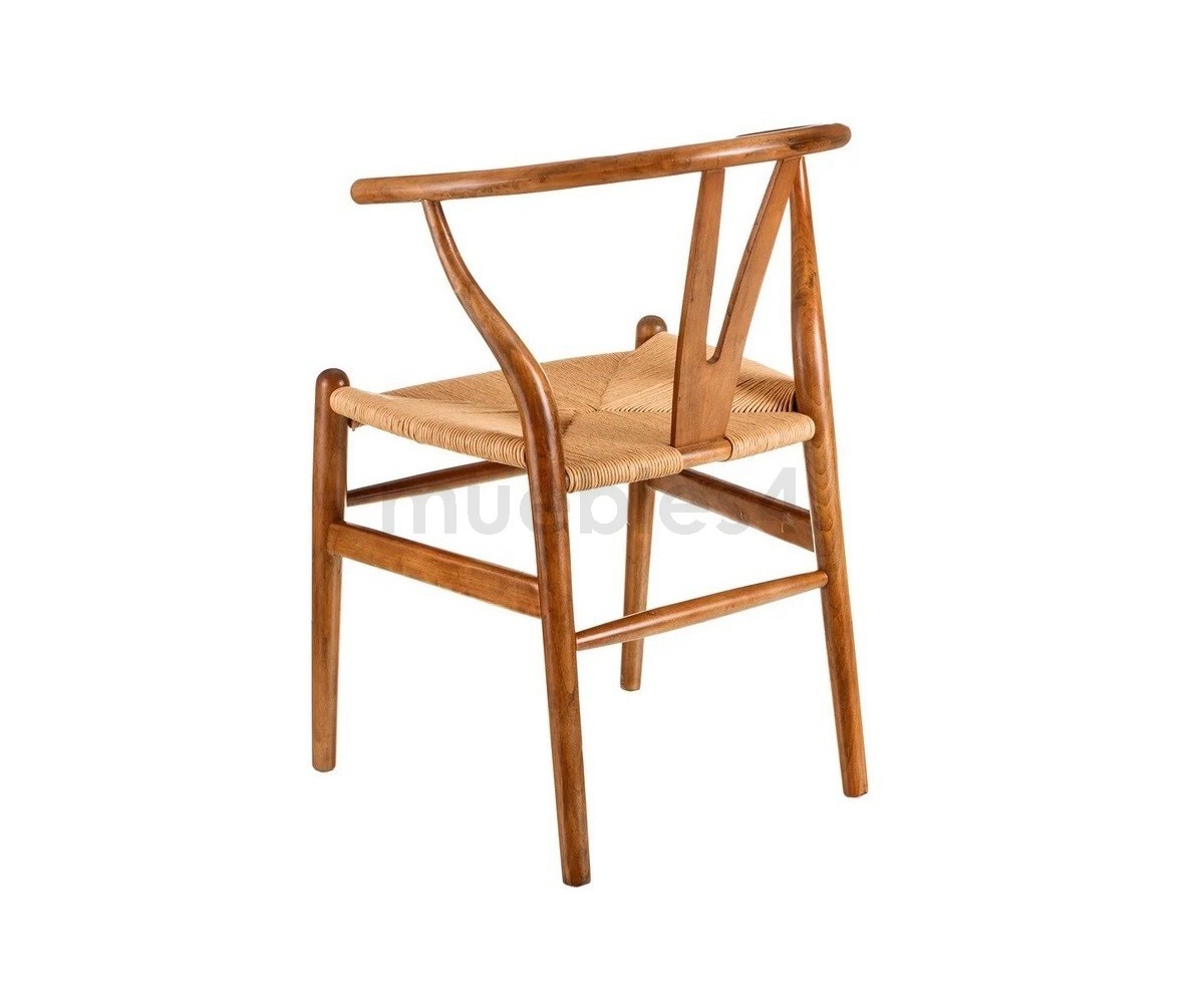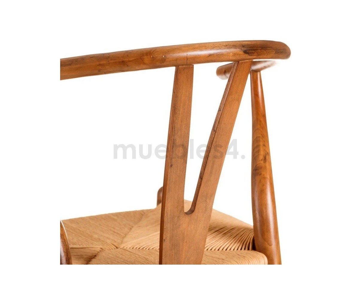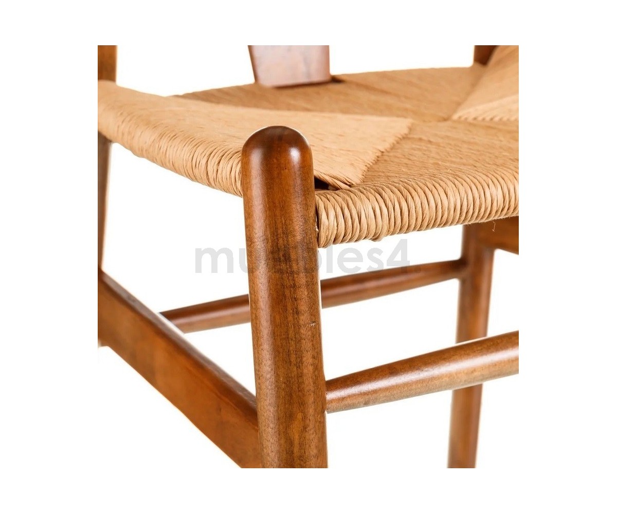 Silla inspirada en un diseño de Hans J. Wegner. Estructura fabricada en madera de abedul, asiento trenzada en enea color natural. Réplica exacta con materiales originales de máxima calidad.
